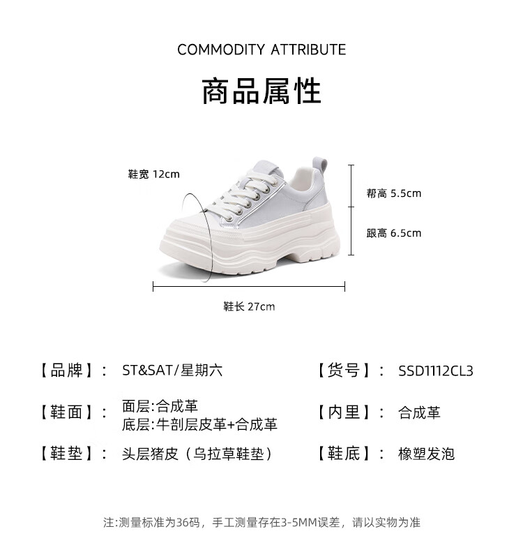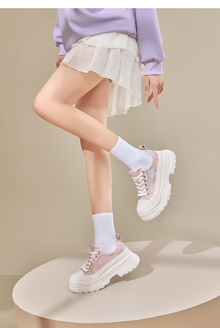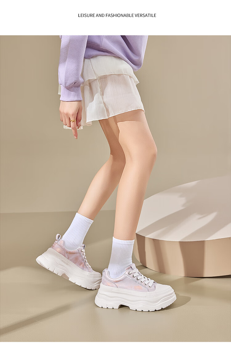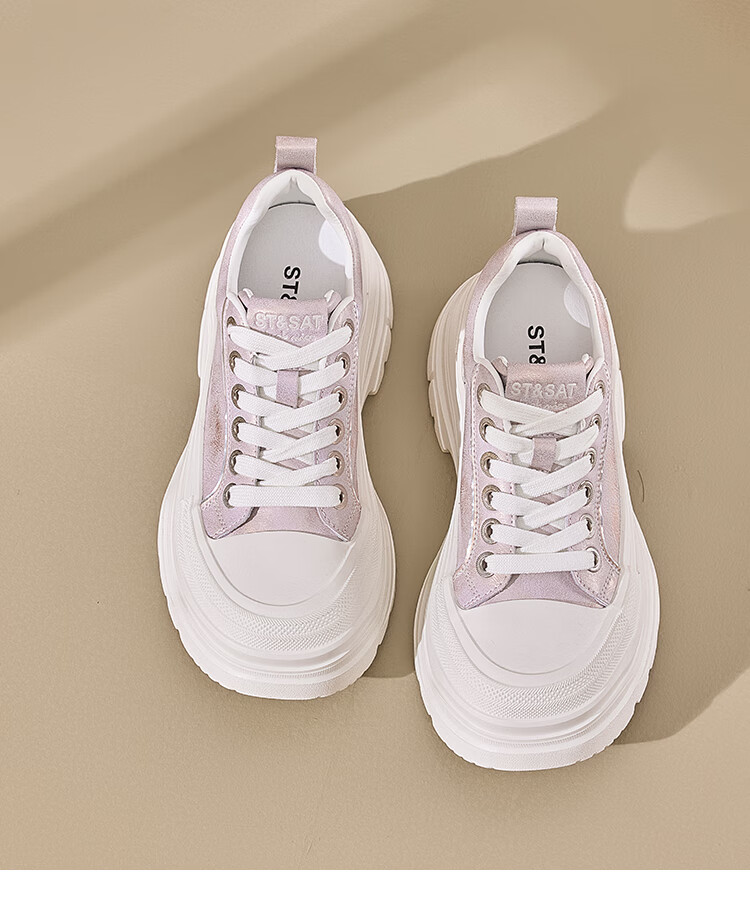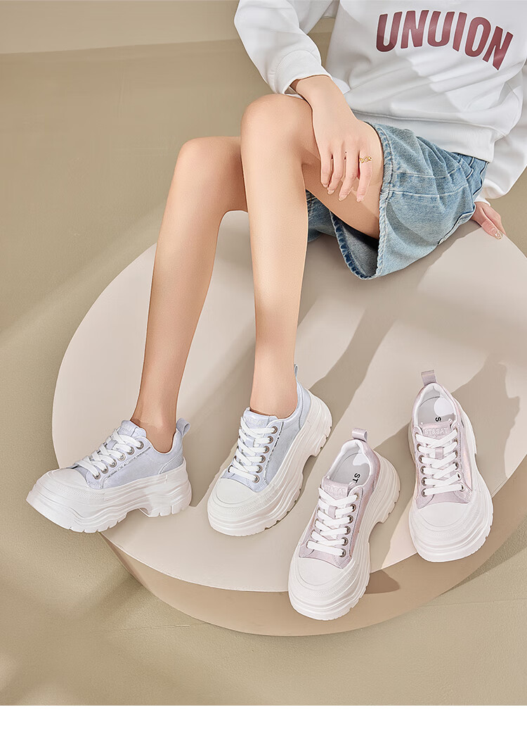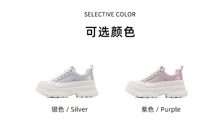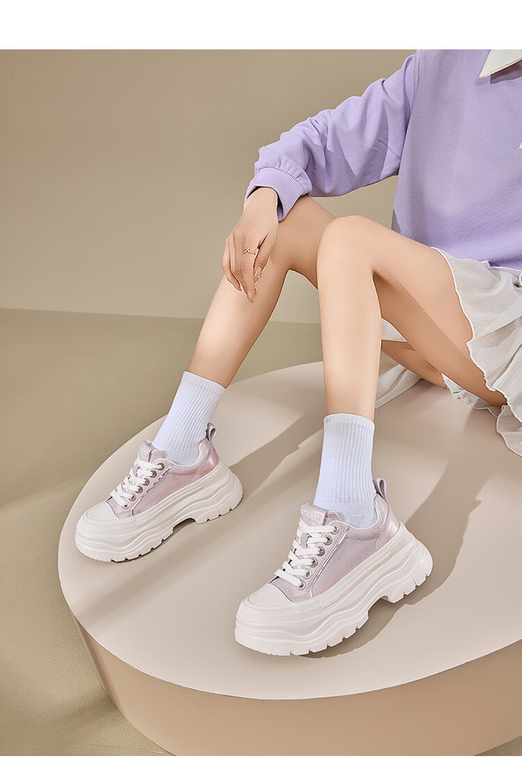 星期六增高轻便面包鞋女2025新款休闲舒适松糕女鞋厚底6.5cm 紫色 35