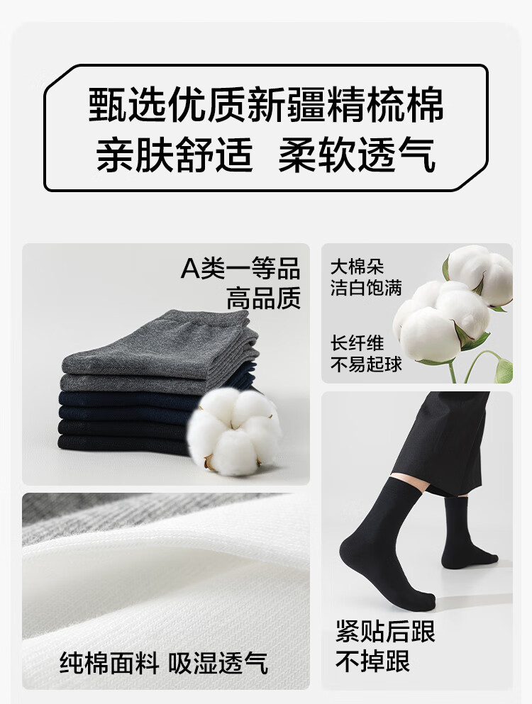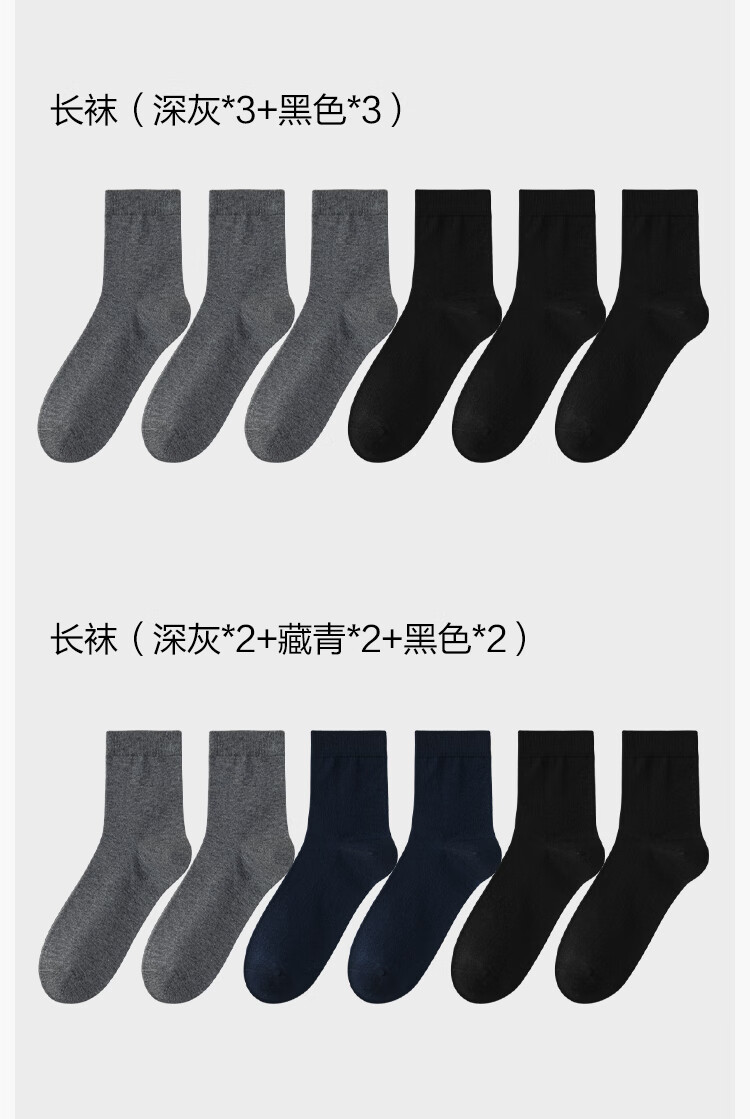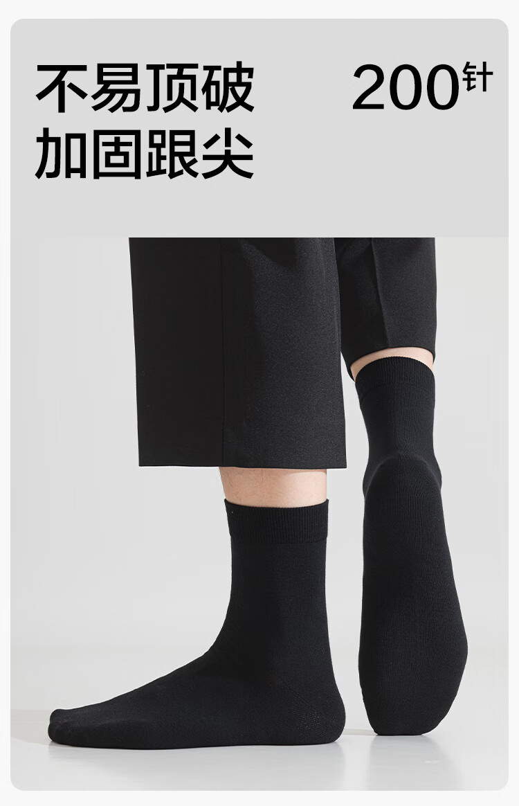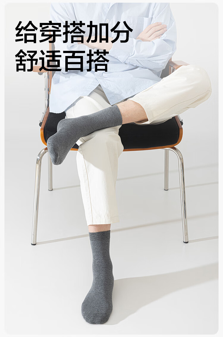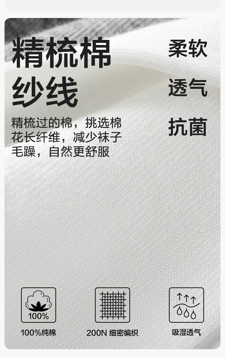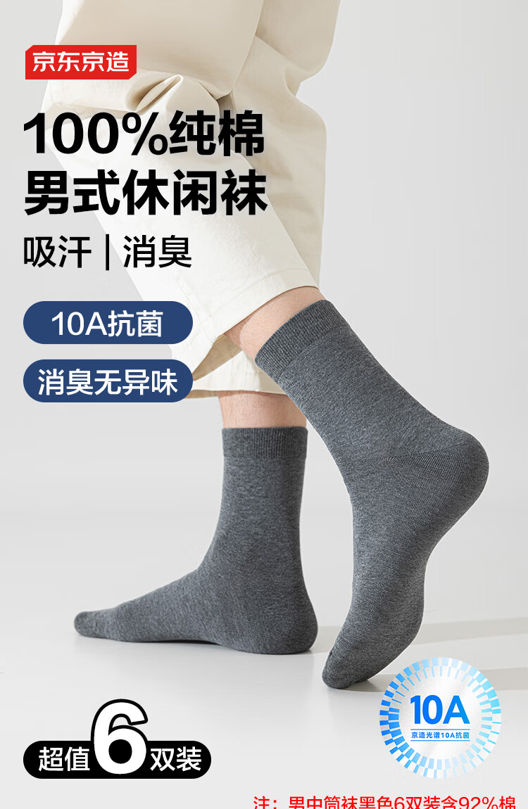 京东京造【100%纯棉10A抗菌】秋冬袜子男防臭透气休闲商务中筒袜 黑灰