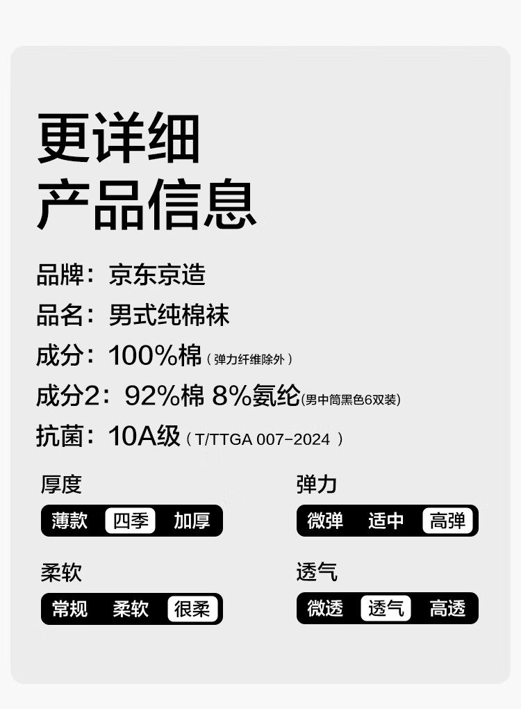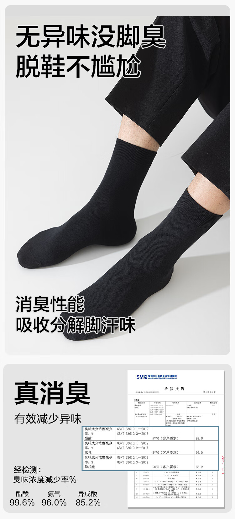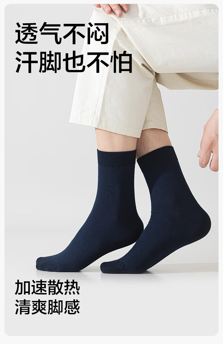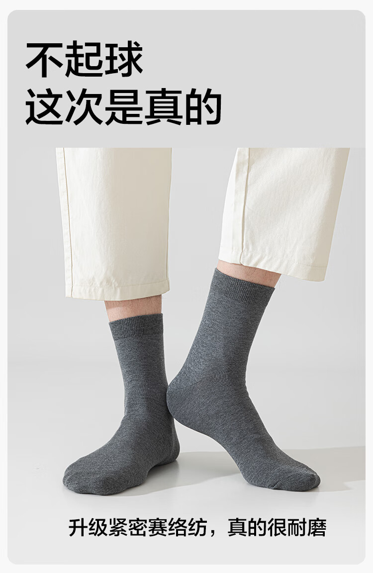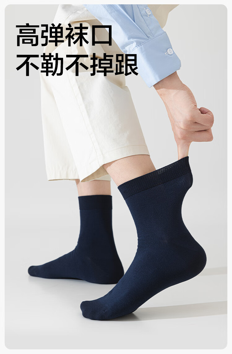 京东京造【100%纯棉10A抗菌】秋冬袜子男防臭透气休闲商务中筒袜 黑灰