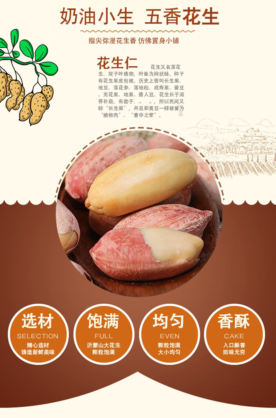 落蓝5斤五香花生米下酒菜炒货零食生的蒜香花生脱油咸干多味坚果 1斤五香花生米五香