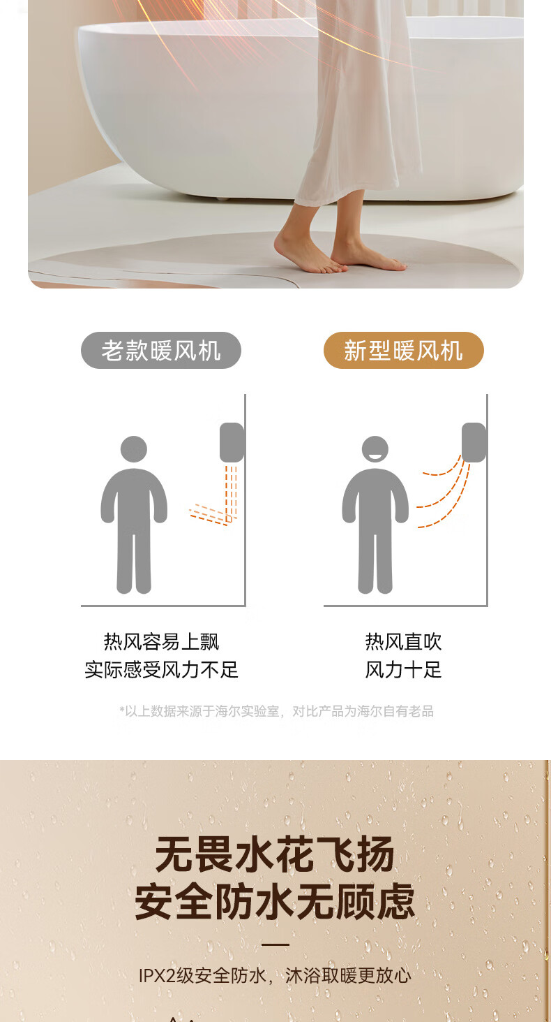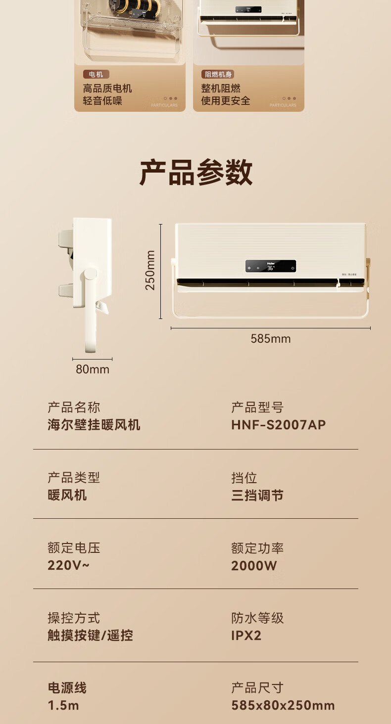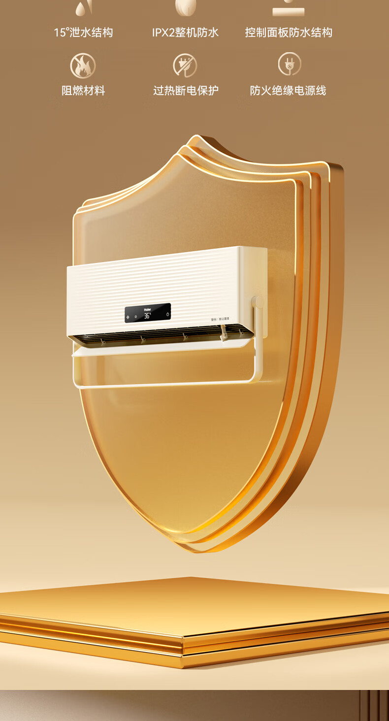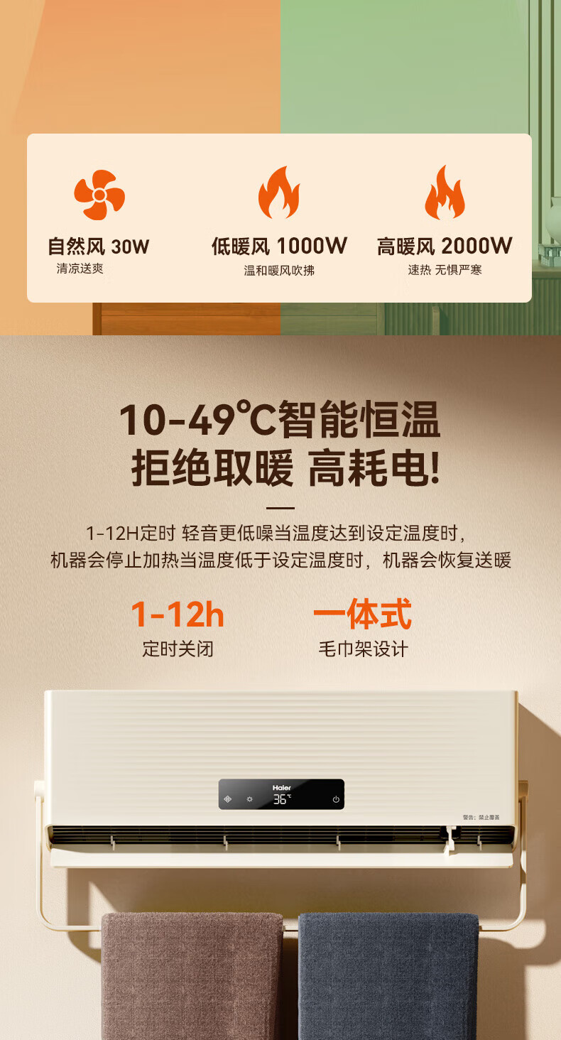 海尔(Haier)壁挂暖风机免打孔悬挂台壁两用取暖器浴室洗澡防水浴霸电暖器轻音电暖气智能语音卧室卫生间热风机 浴室防水/台壁两用/遥控款HNF-2007