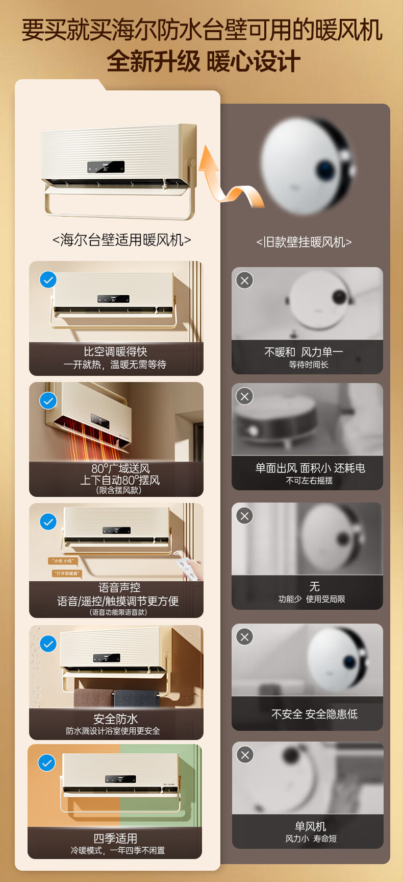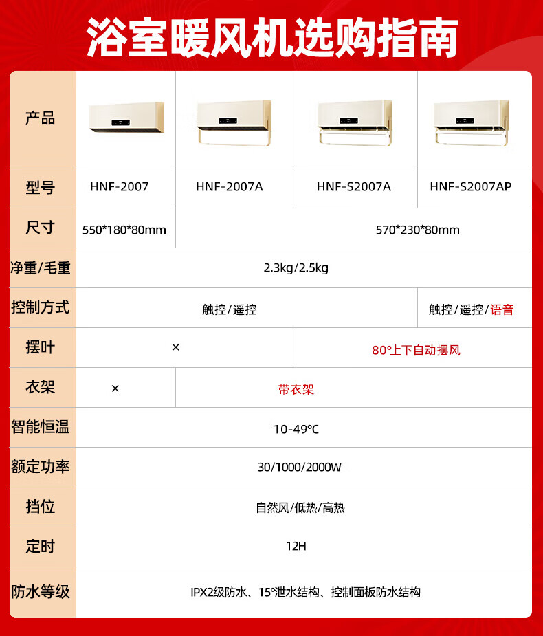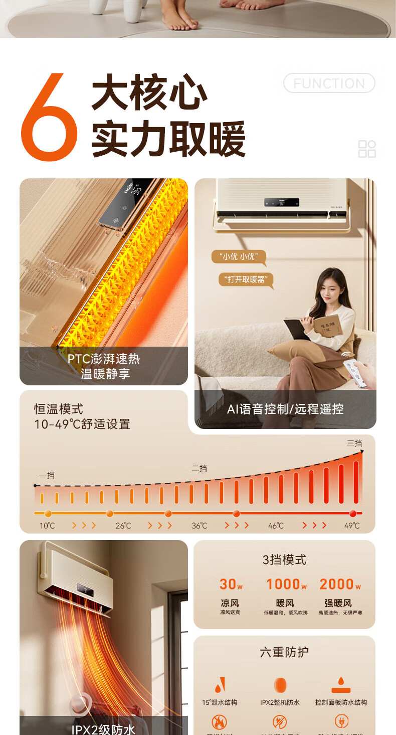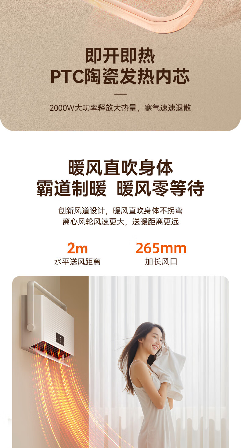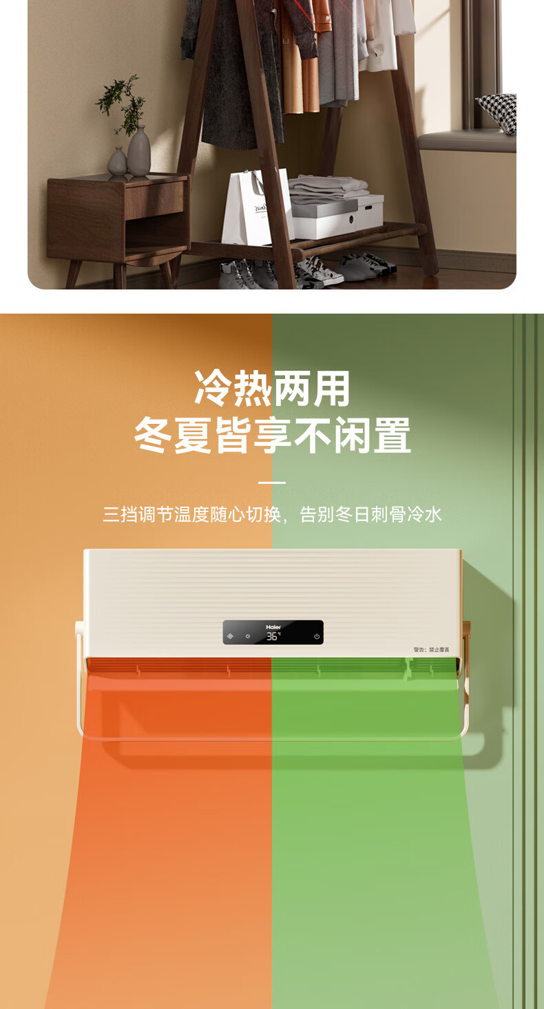 海尔(Haier)壁挂暖风机免打孔悬挂台壁两用取暖器浴室洗澡防水浴霸电暖器轻音电暖气智能语音卧室卫生间热风机 浴室防水/台壁两用/遥控款HNF-2007