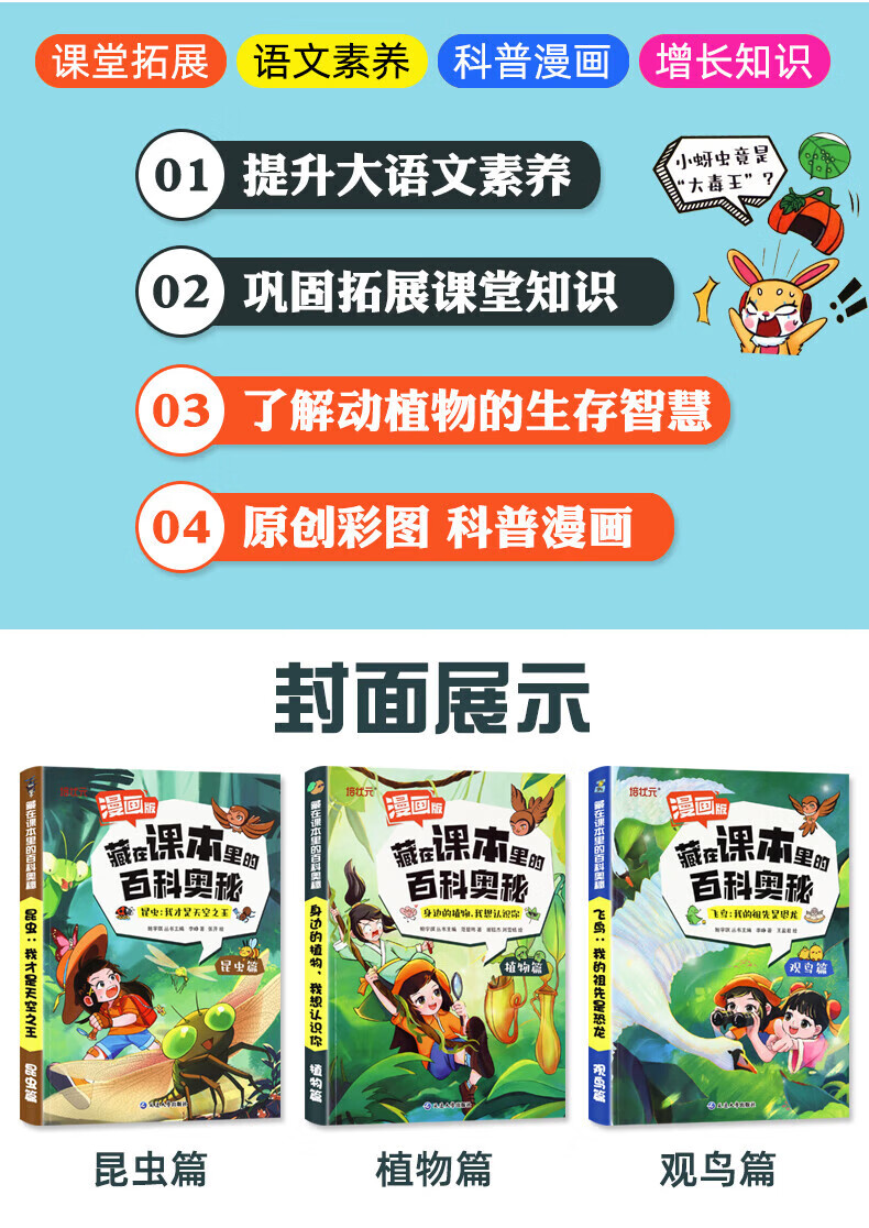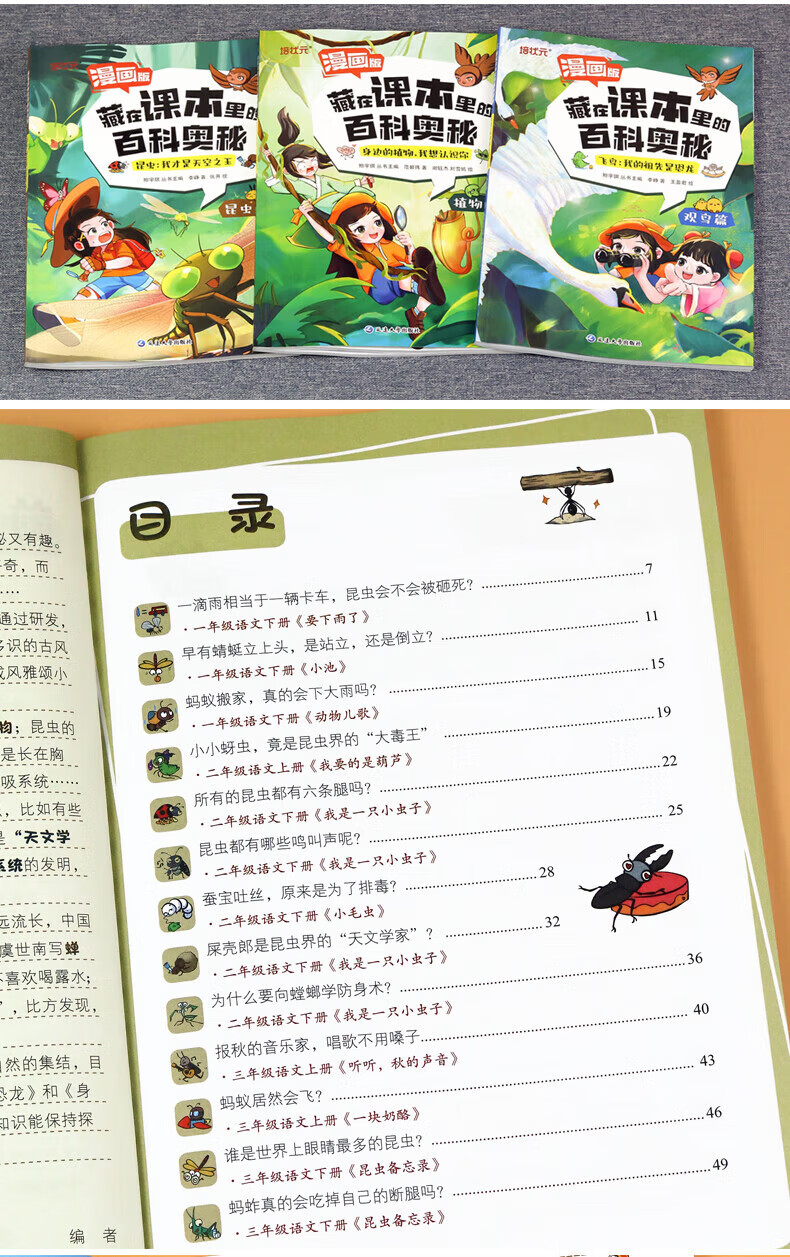 藏在课本里的百科奥秘 百科常识知识大全儿童动物植物昆虫科普绘本幼儿漫画书启蒙认知早教书小学生阅读课外书籍3-9岁小学生语文基础素养培养 【昆虫篇】漫画版藏在课本里的百科