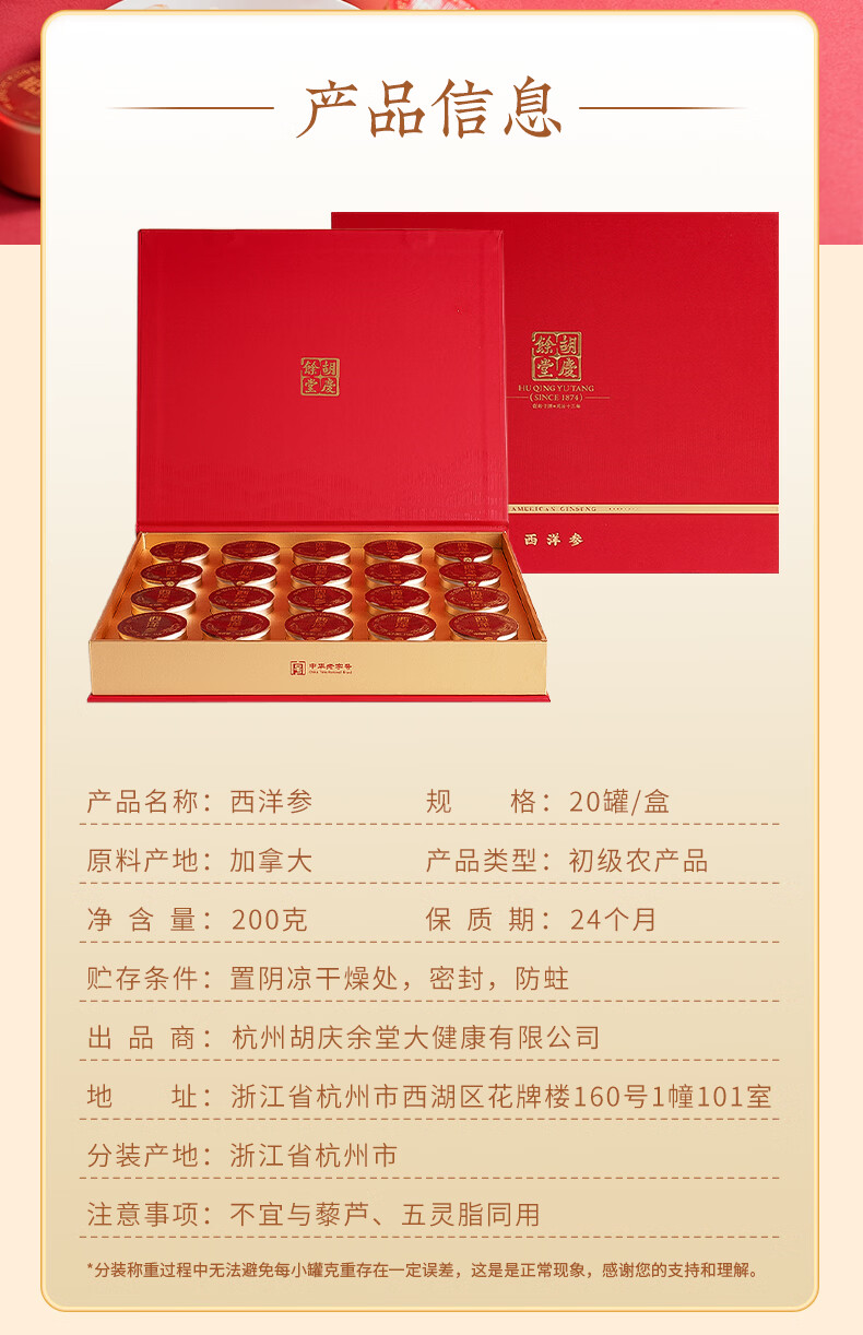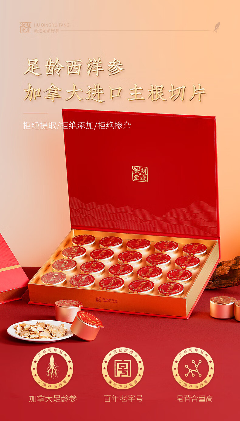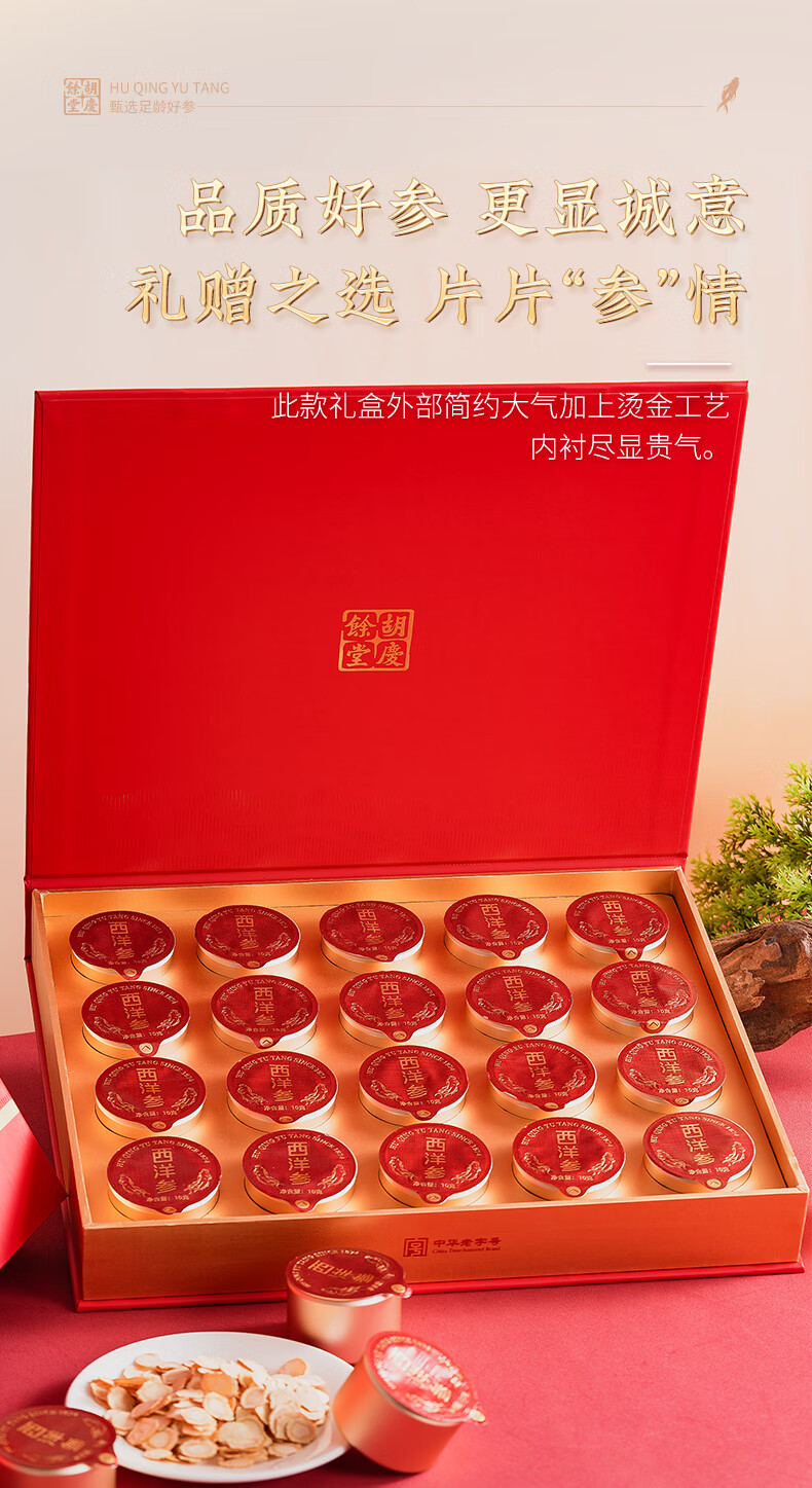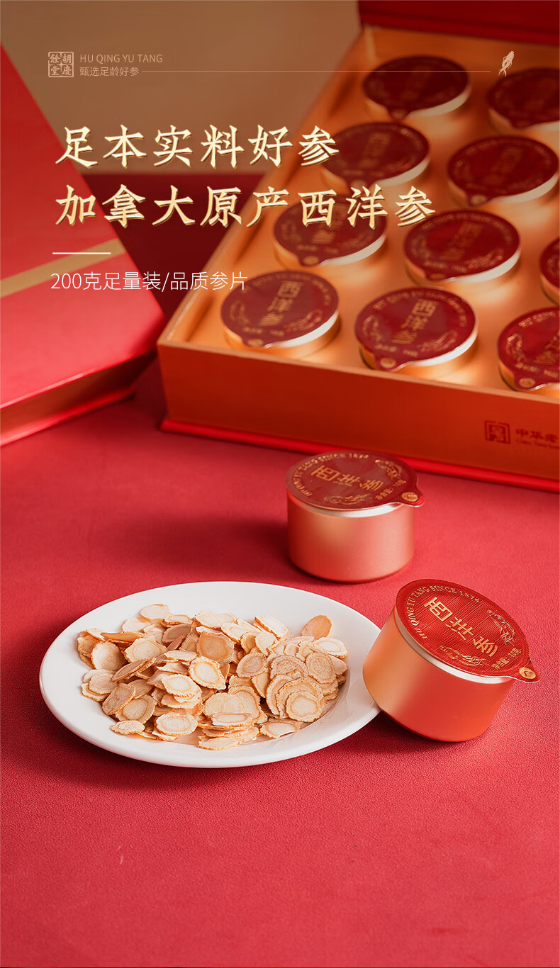 胡庆余堂加拿大进口西洋参片200g国风礼盒20小罐养生茶新年礼物年货营养品 加拿大西洋参 200g*1盒