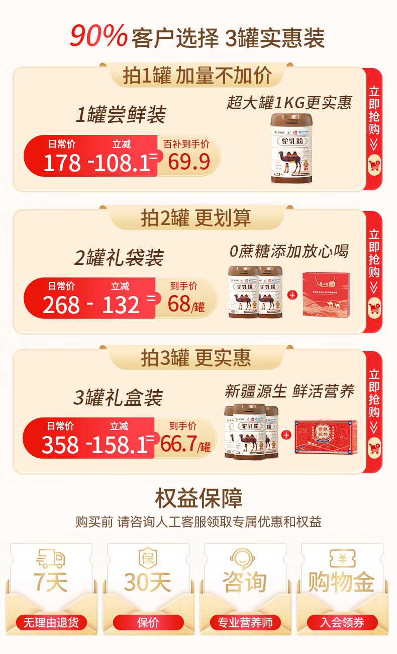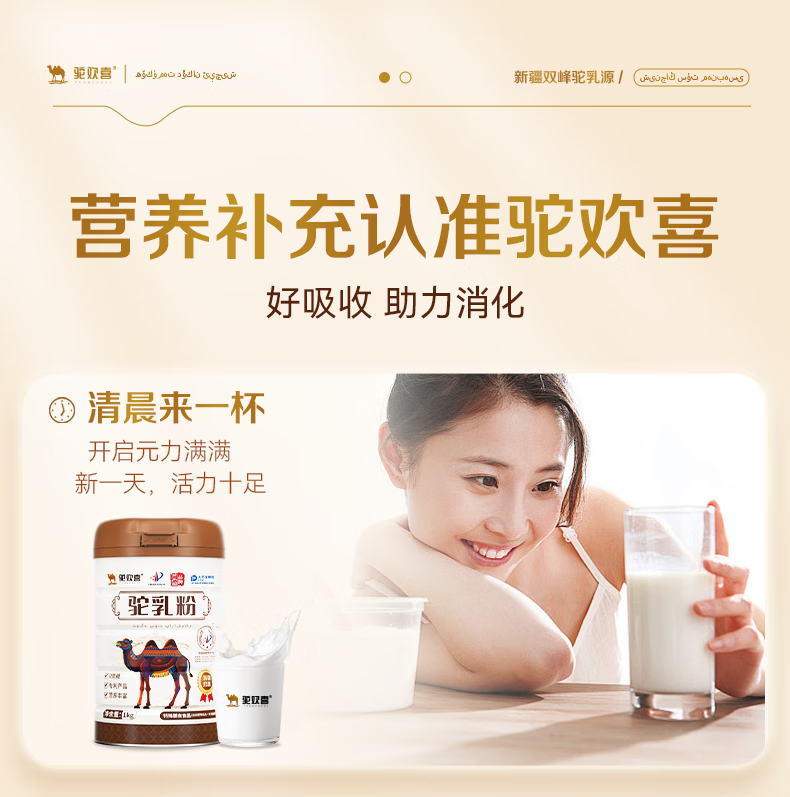 驼欢喜驼乳骆驼奶营养粉新疆正宗奶源中老年成人超大罐无蔗糖1000g/罐