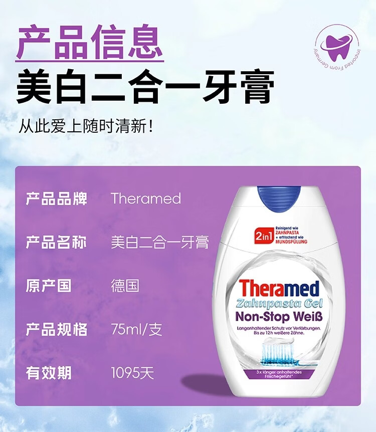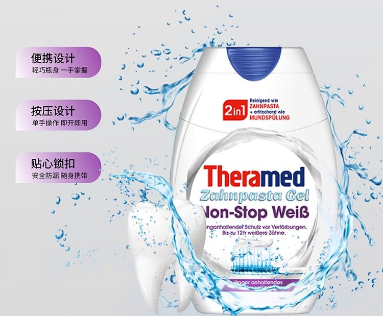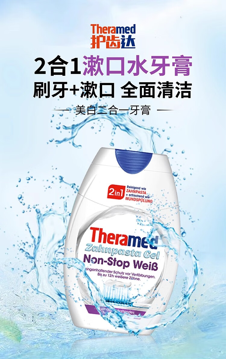 护齿达(THERAMED)汉高牙膏亮白炫白去烟渍漱口水二合一牙膏