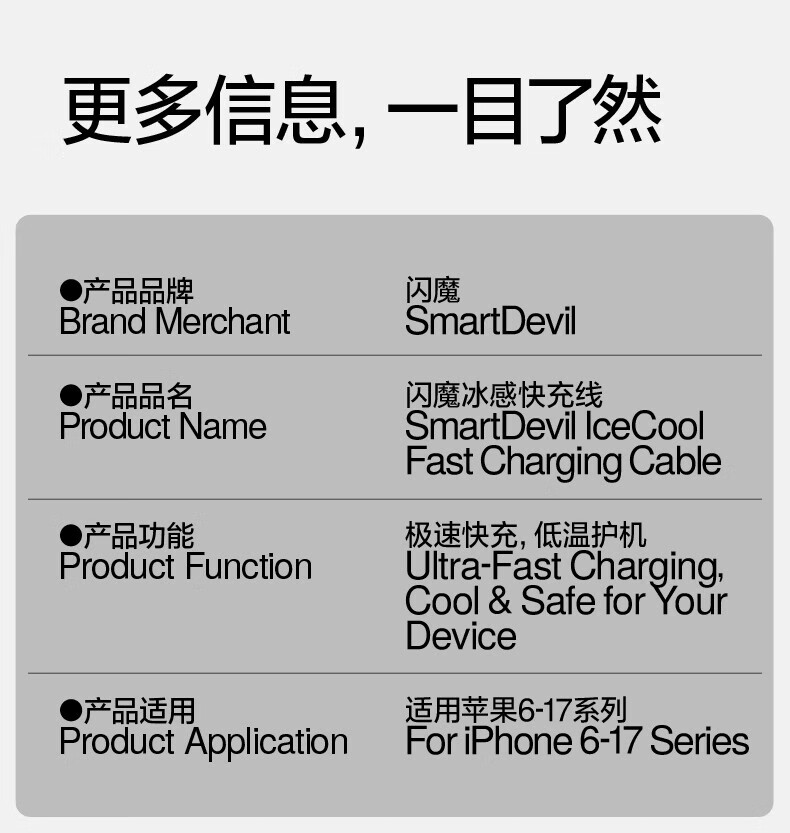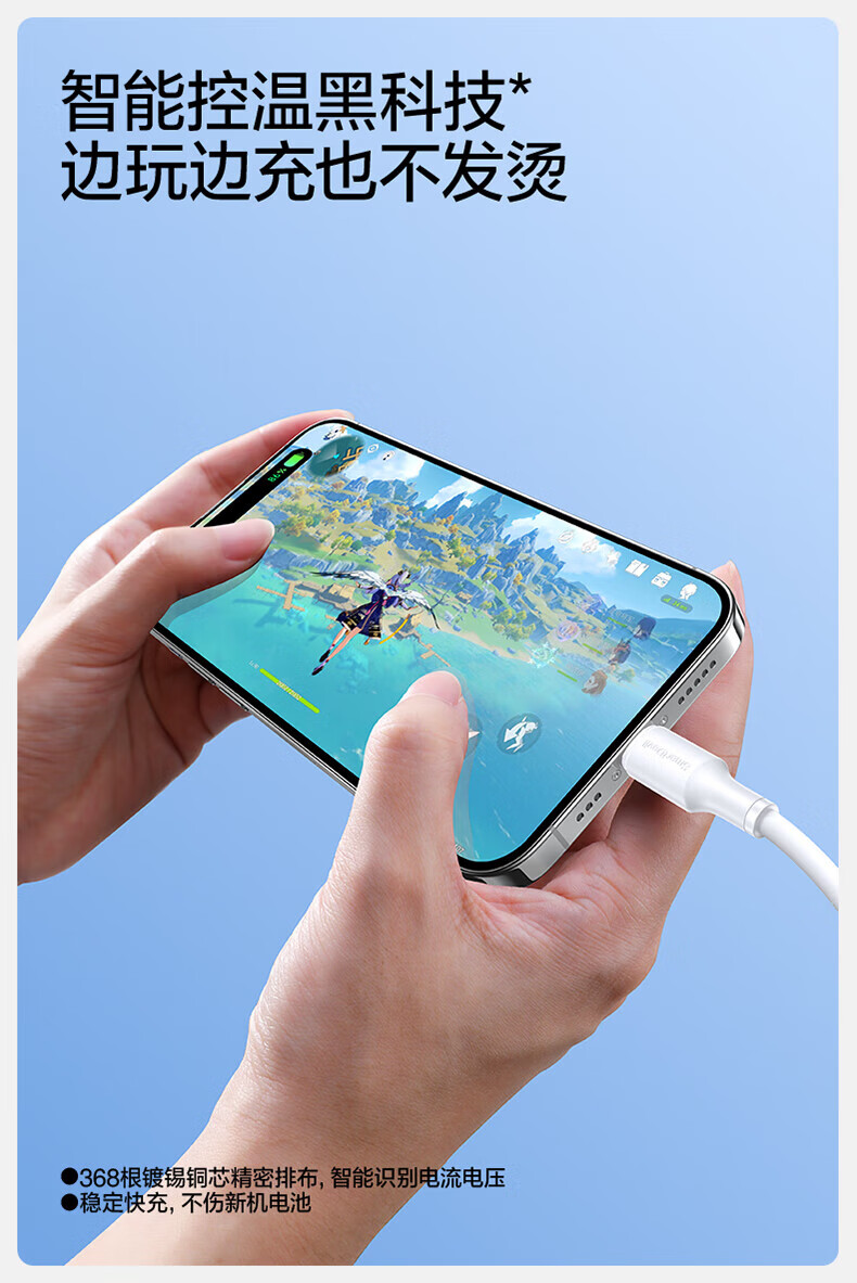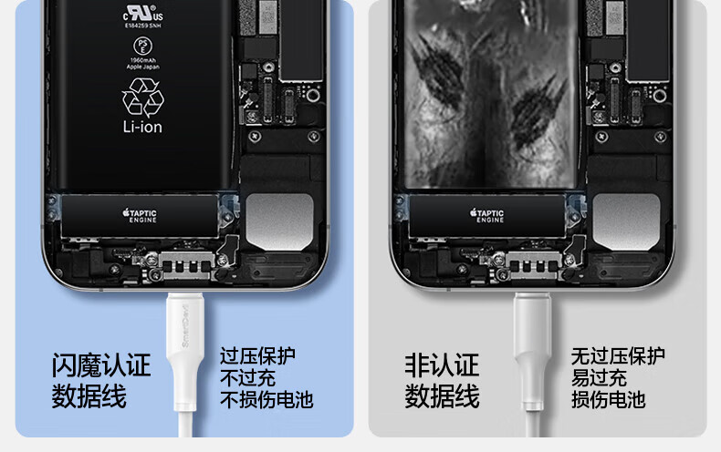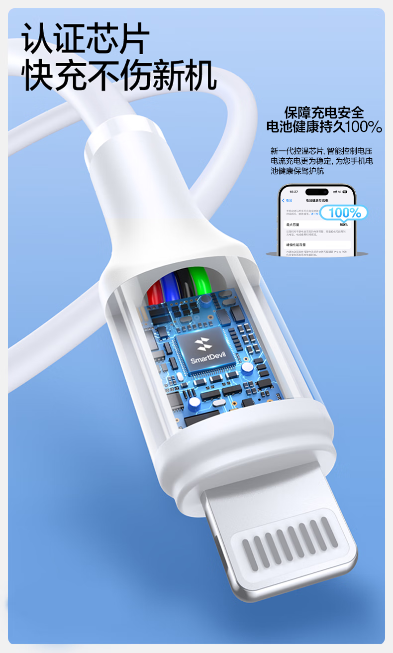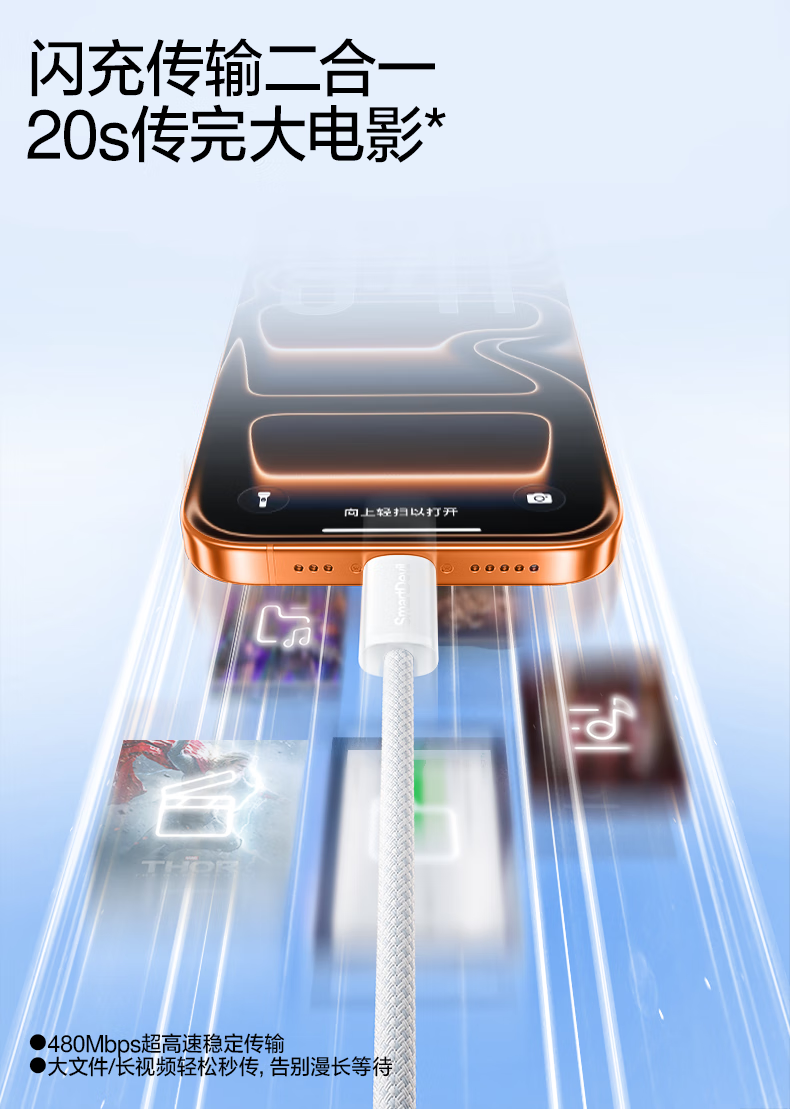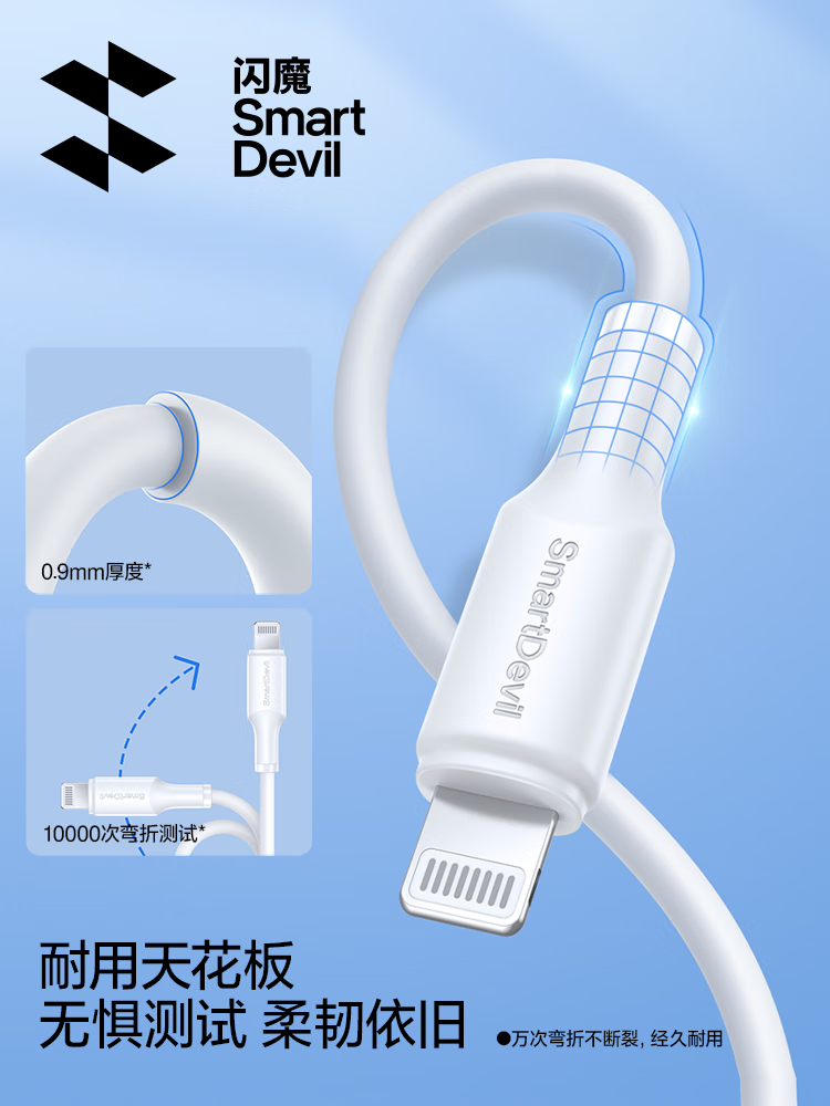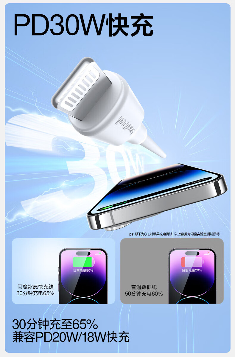 闪魔苹果数据线PD30W/20W快充线type-c to lightning接口iPhone14/13/12/系列ipad air2苹果充电线1.0m