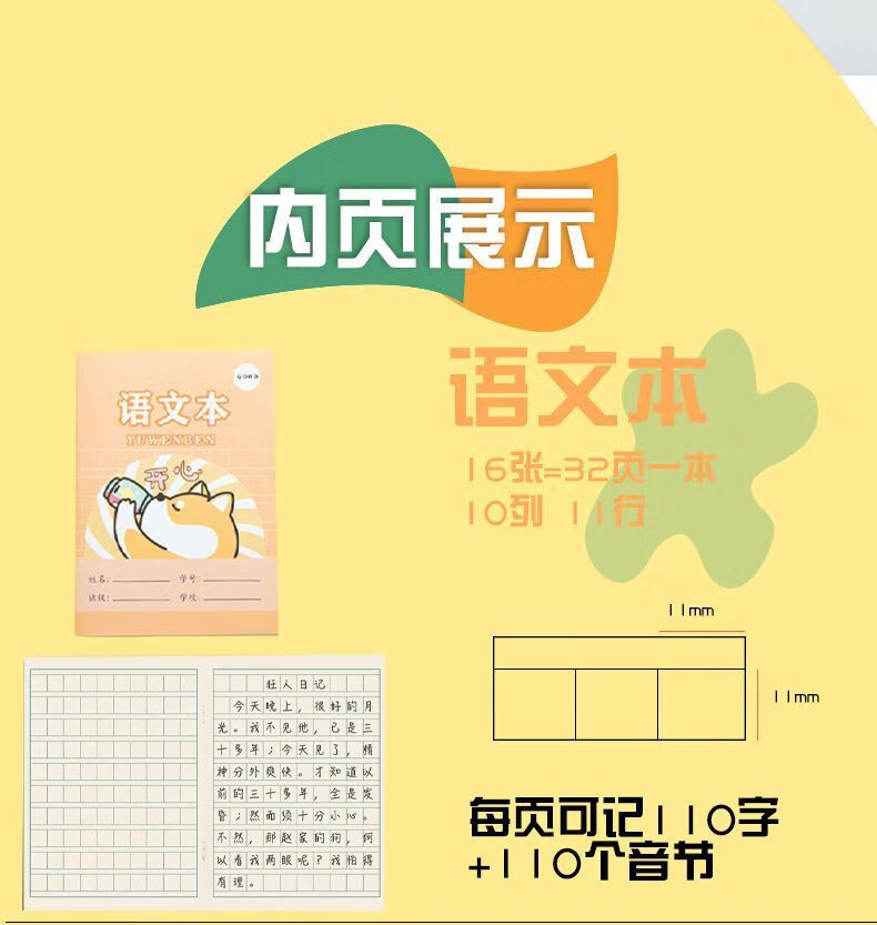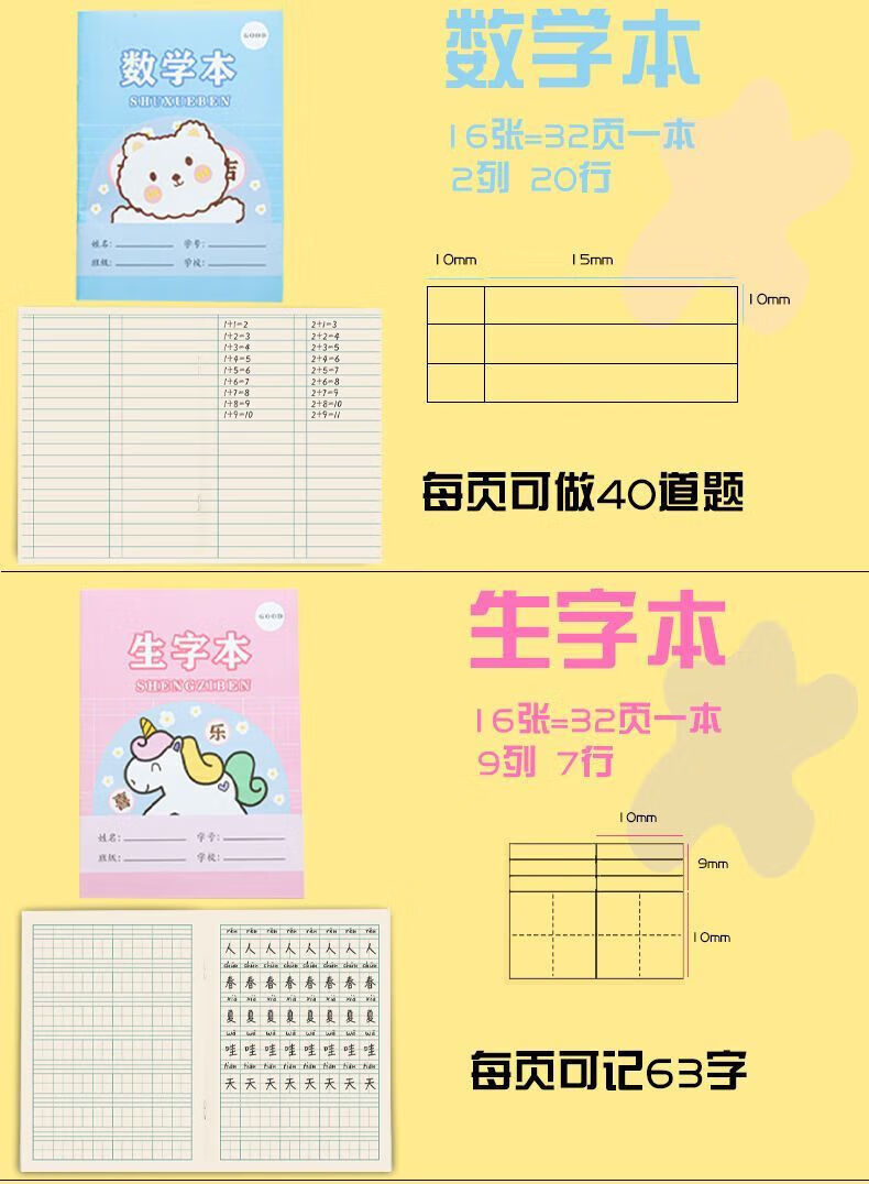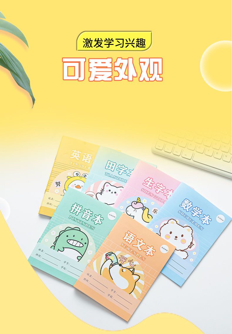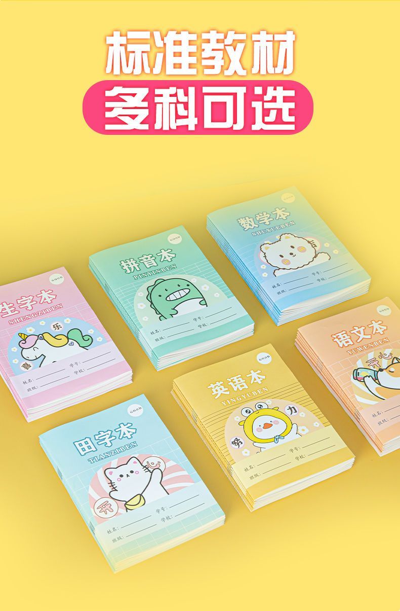 简菲小学生作业本拼音田字格本生字本数学语文英语幼儿园本子全套 30本(田字+生字+拼音)各10本