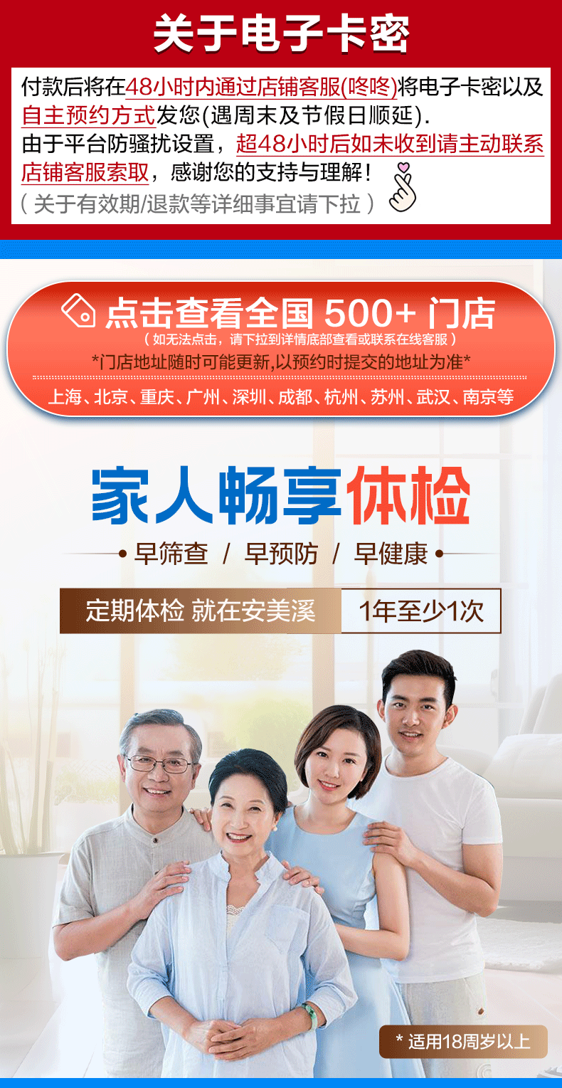 美年大健康瑞慈体检家人畅享E体检套餐中青老年全国门店通用体检卡 高阶版(2人份多减20)(美年瑞慈)(强烈推荐) 2个工作日内店铺客服(咚咚)发您卡密自主预约