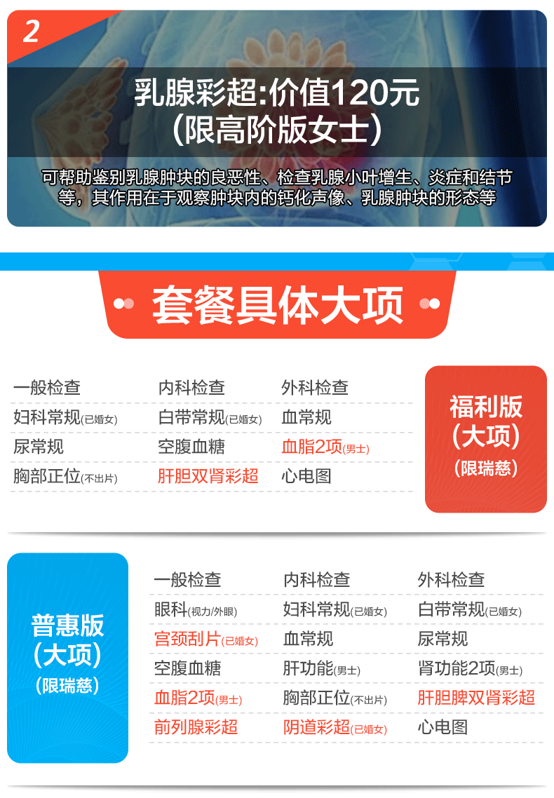 美年大健康瑞慈体检套餐中青老年父母全家通用体检套餐男女士体检卡全国体检中心上海北京成都 CT版体检套餐RY138【美年/瑞慈】
