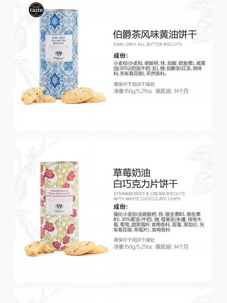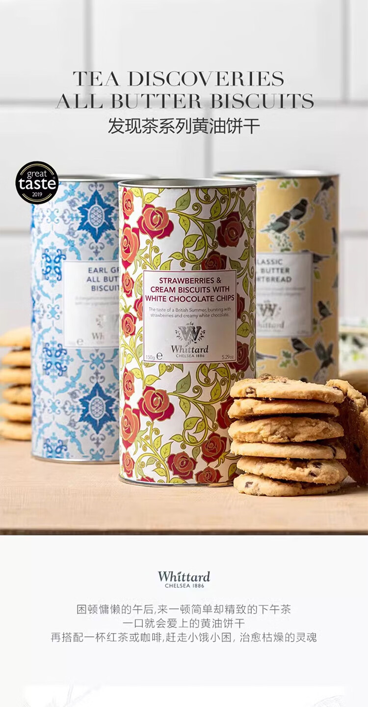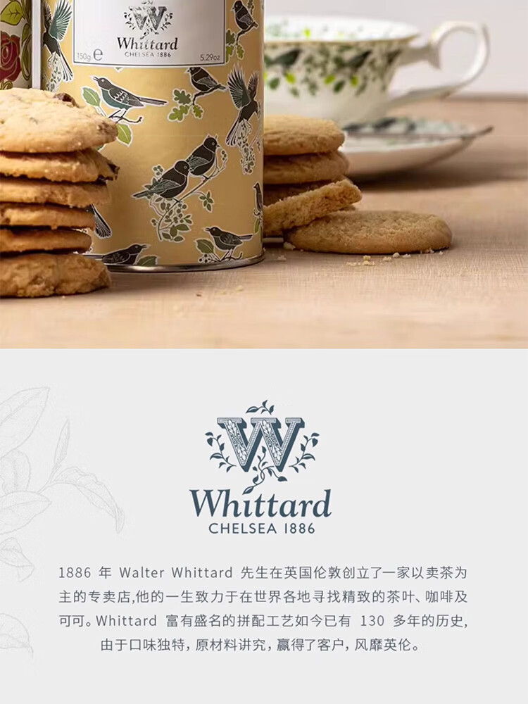 WHITTARD英国进口英式伯爵茶风味黄油饼干150g年货零食甜点