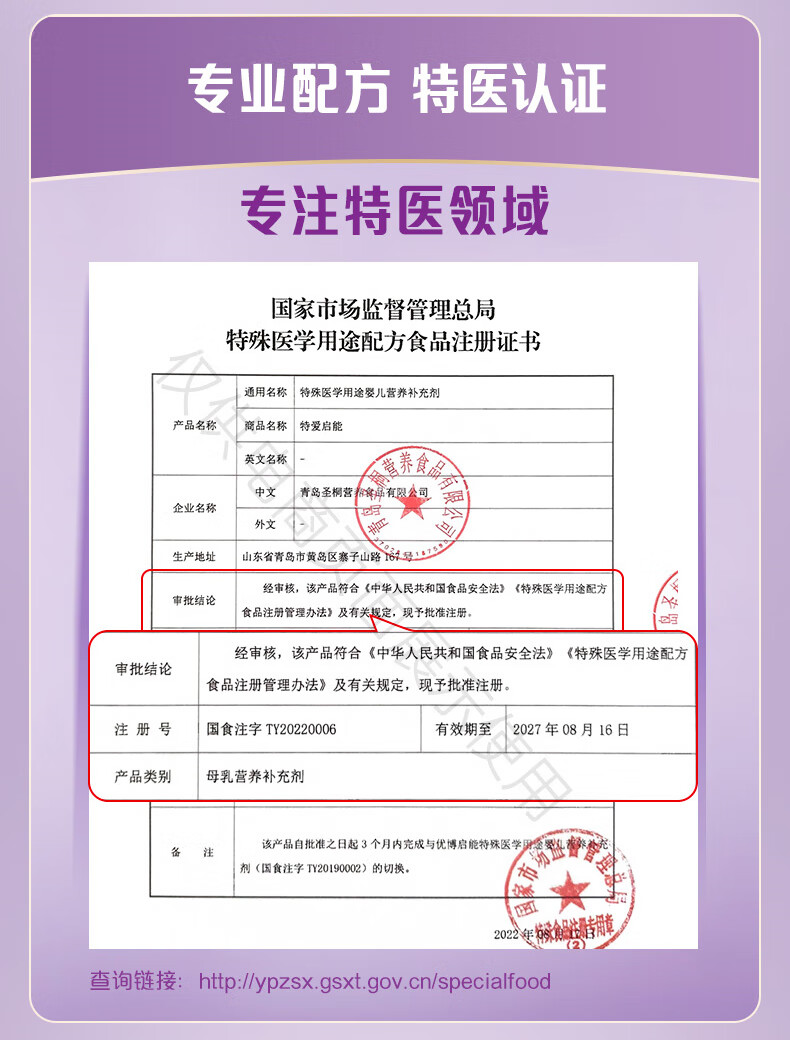 iSainte圣桐 特爱启能 母乳强化剂 特殊医学用途早产儿婴儿配方食品 80g 80g*1盒