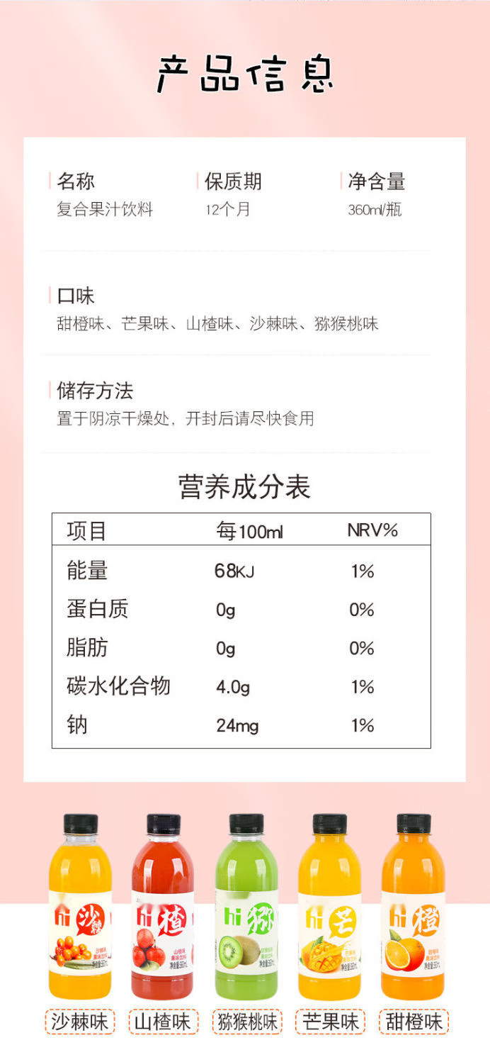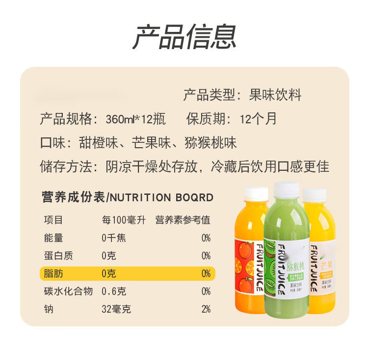 趣小谗果汁饮料整箱橙汁饮芒果汁猕猴桃大瓶汽水12瓶一箱 12瓶装【360ml】 【升级版】橙汁