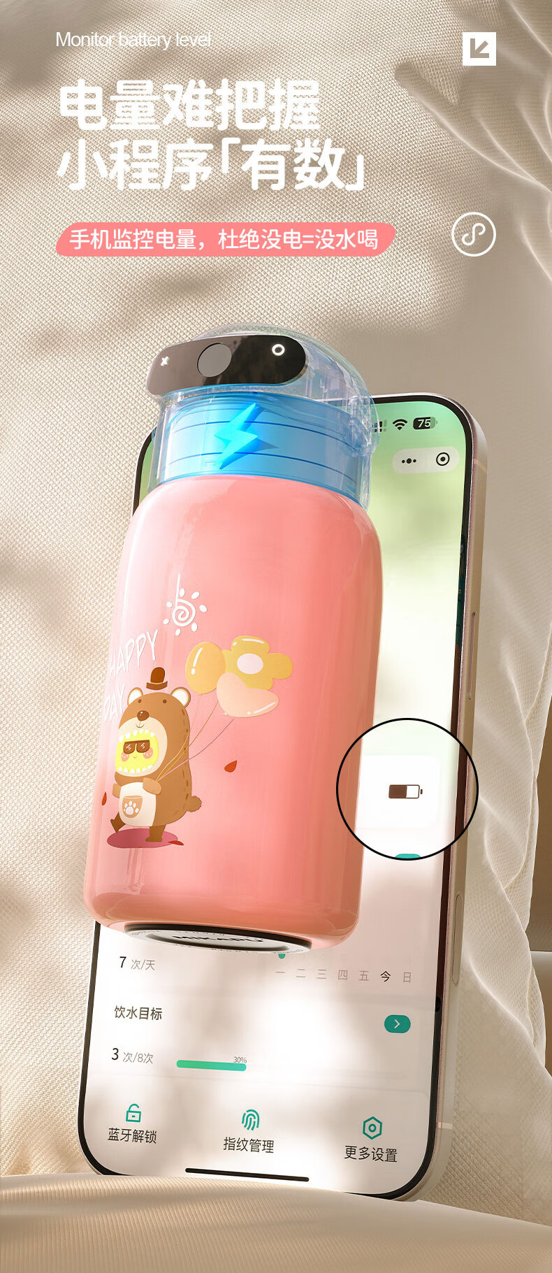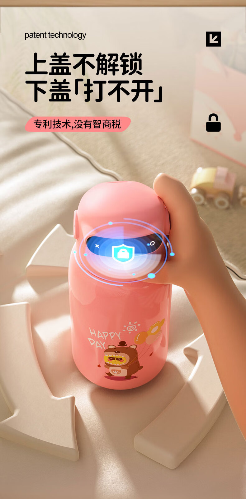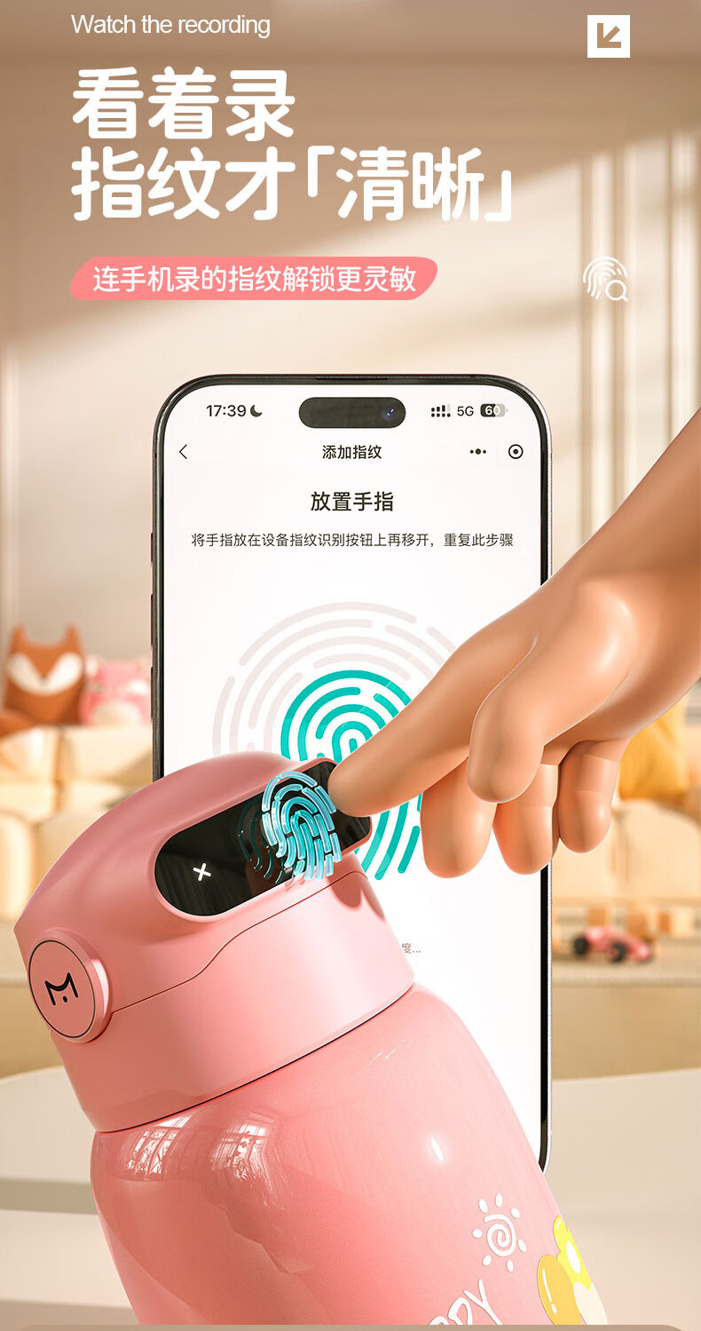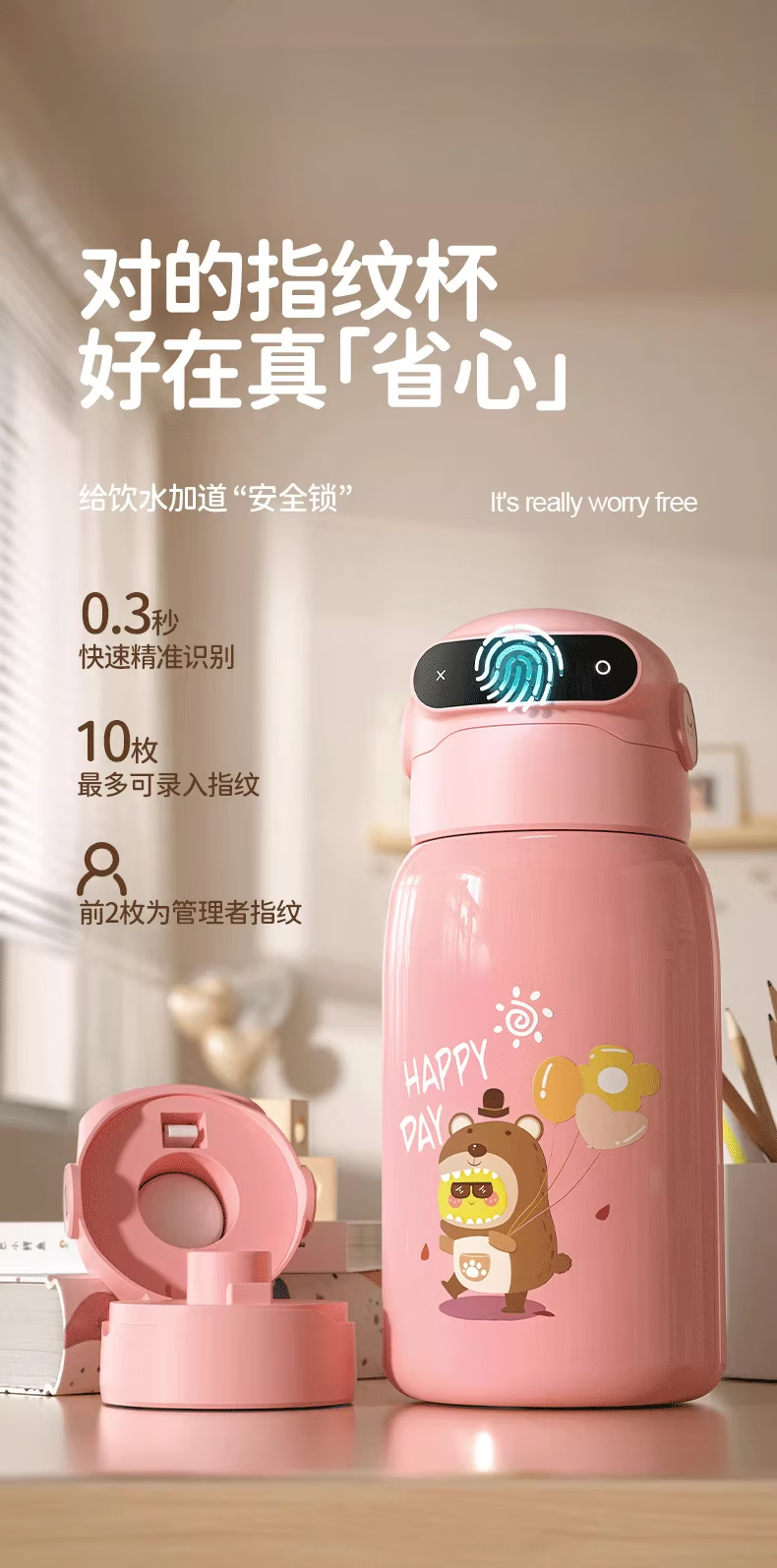 指纹解锁保温杯儿童学生上学专用女2025新款智能密码水杯 圆气粉550ml 【智能蓝牙版+316不锈钢】