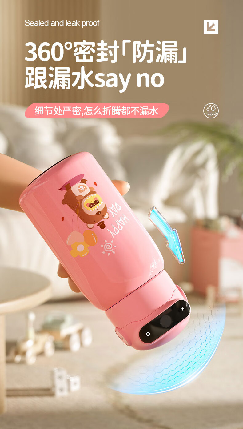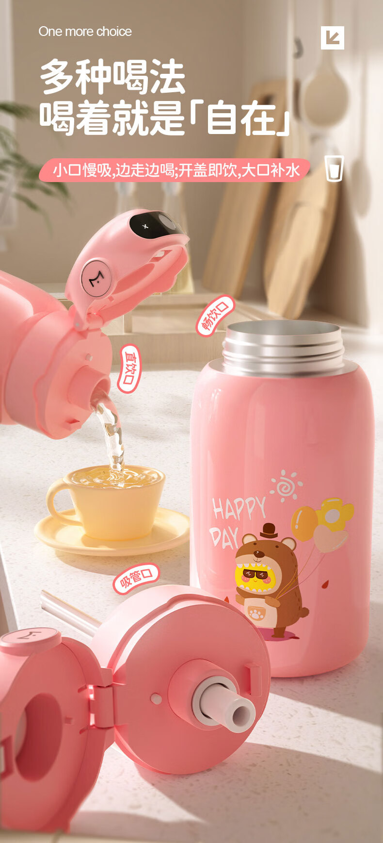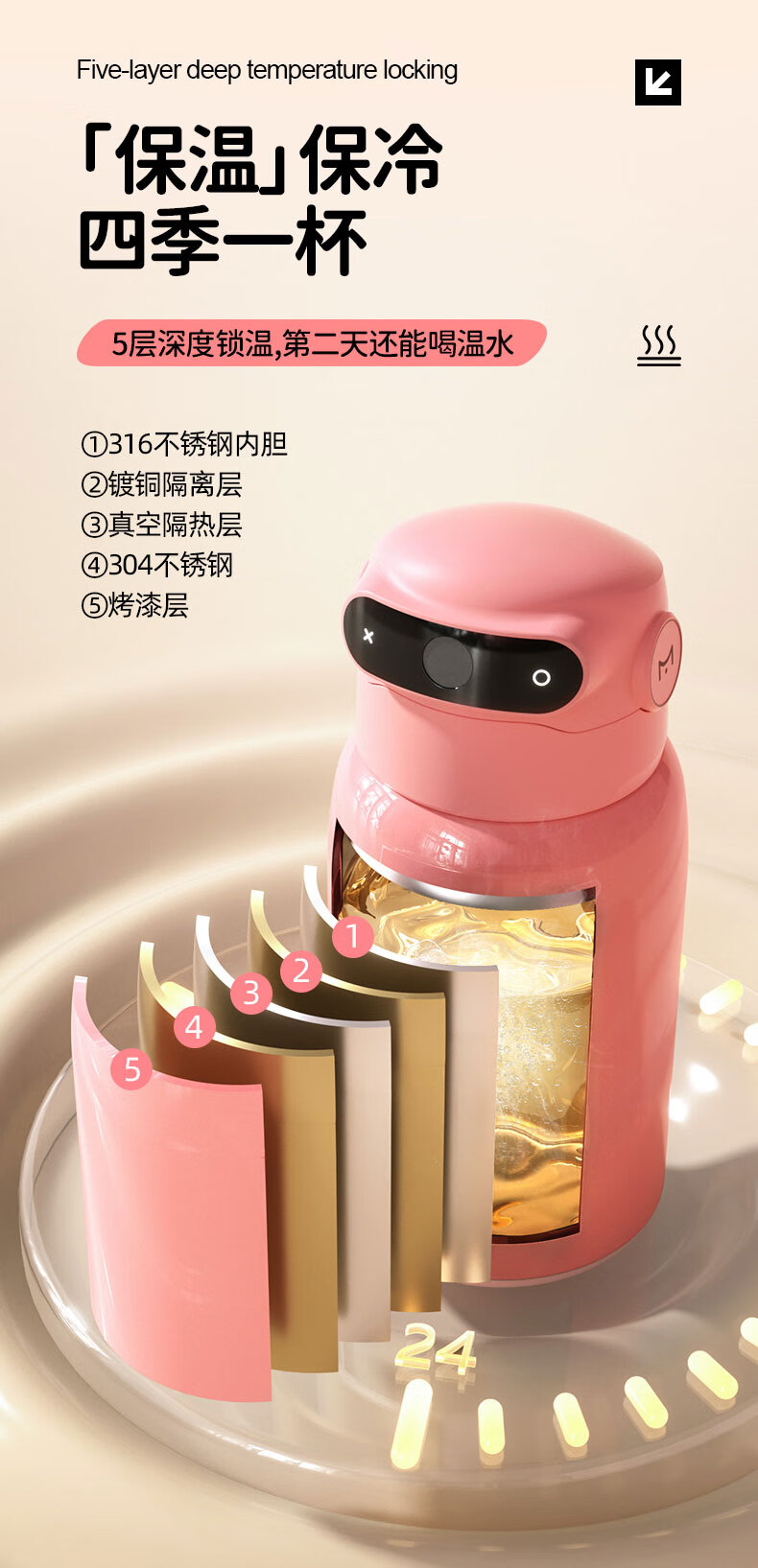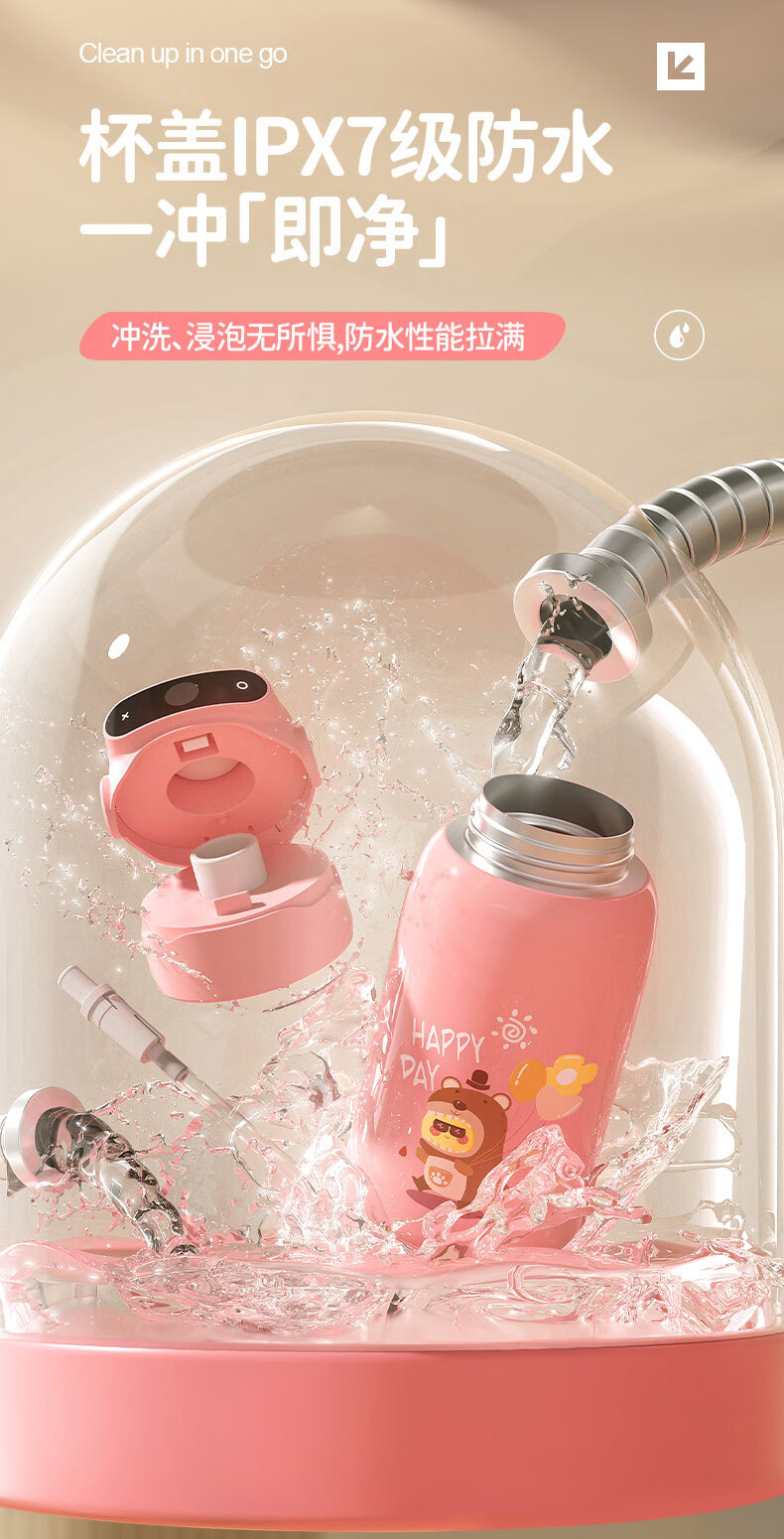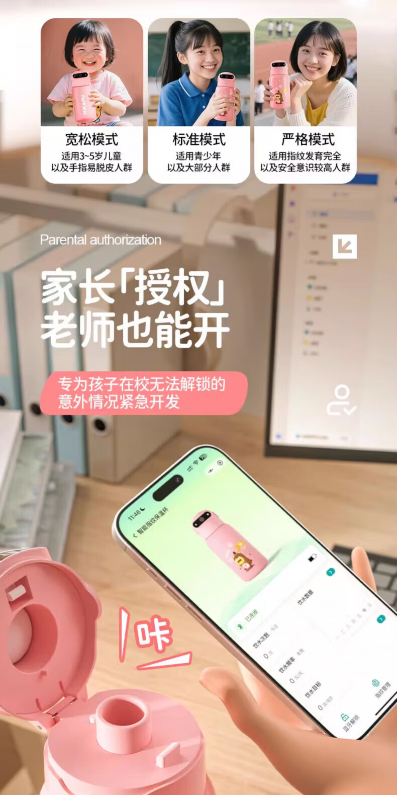 指纹解锁保温杯儿童学生上学专用女2025新款智能密码水杯 圆气粉550ml 【智能蓝牙版+316不锈钢】