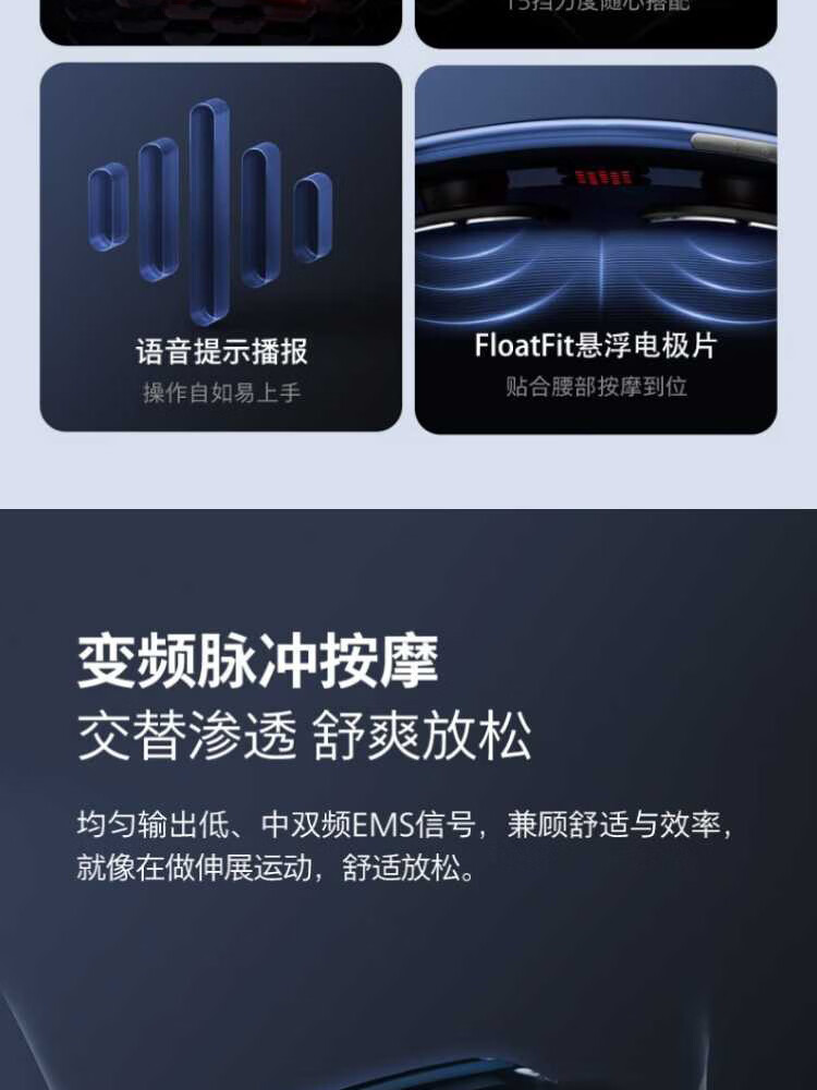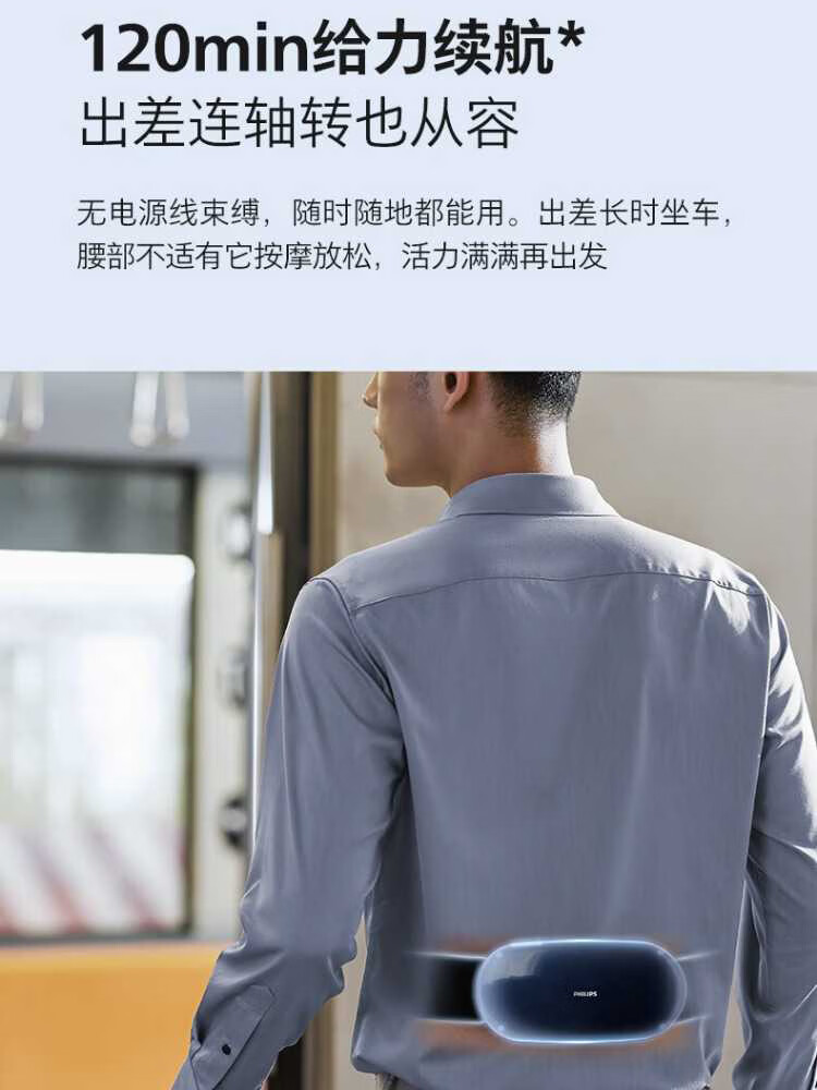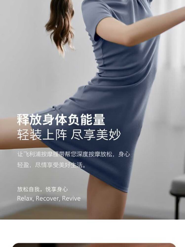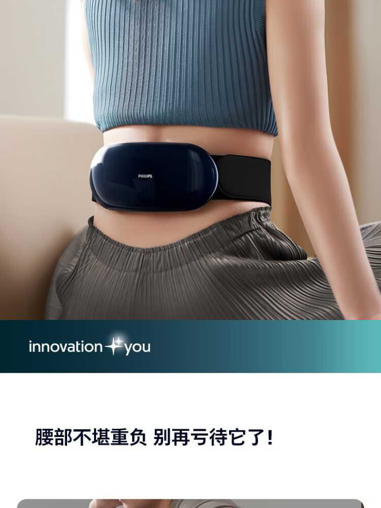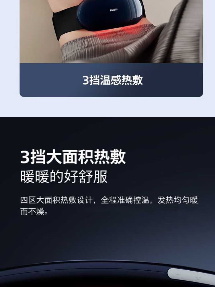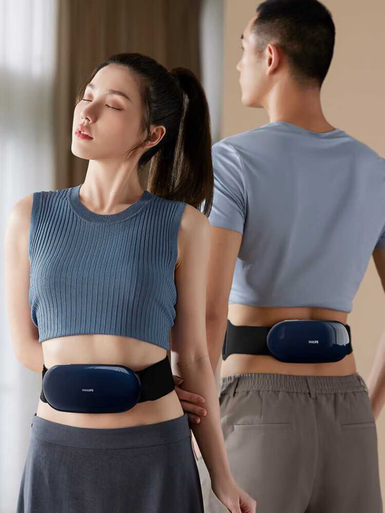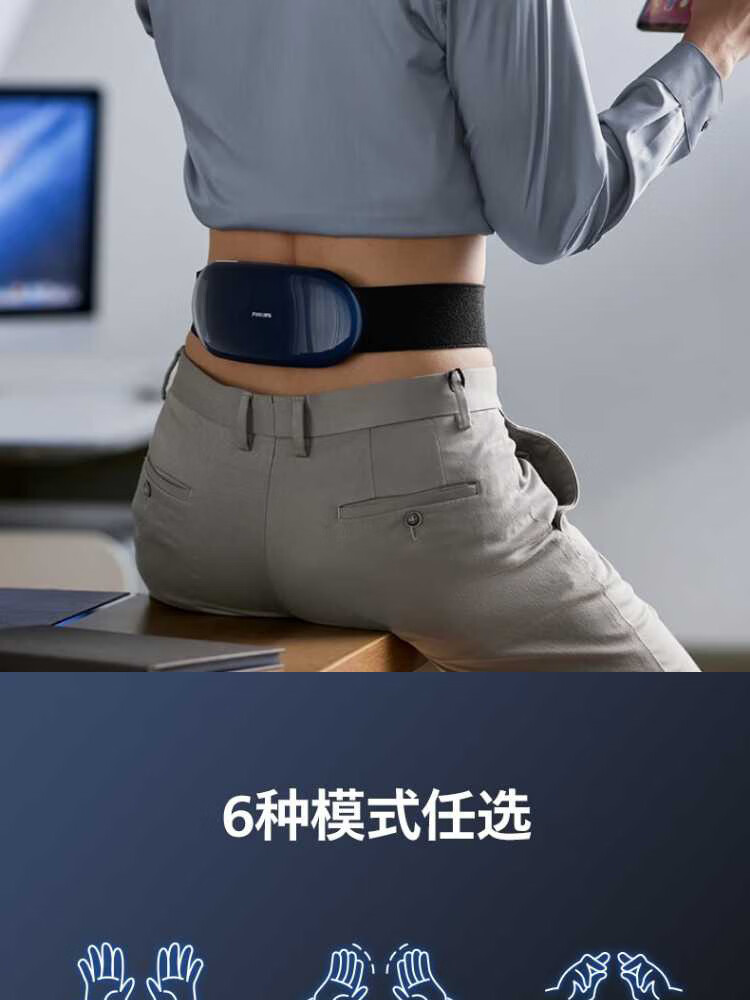 飞利浦(PHILIPS)腰腹部按摩器微振动穴位按摩腰带热敷办公室便携变频脉冲护腰带生日情人节新年礼物送女友老婆闺蜜 夜幕蓝【6档模式+15档力度+3档热敷】