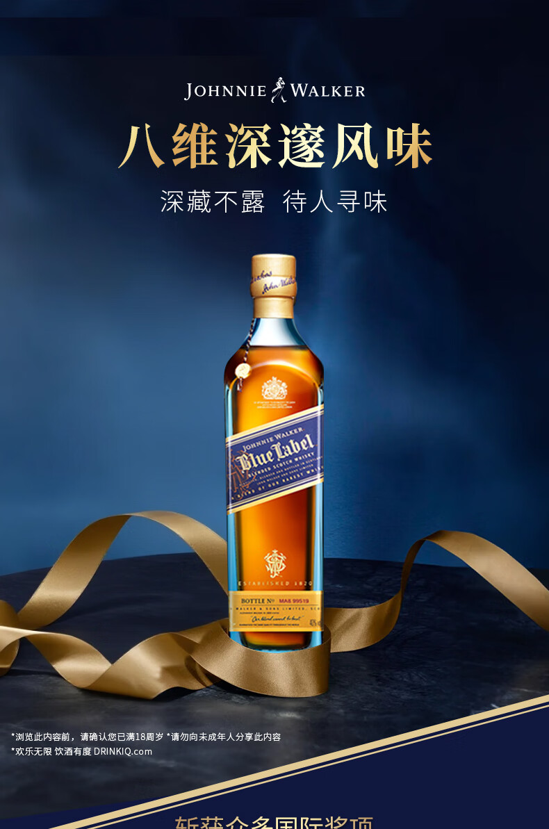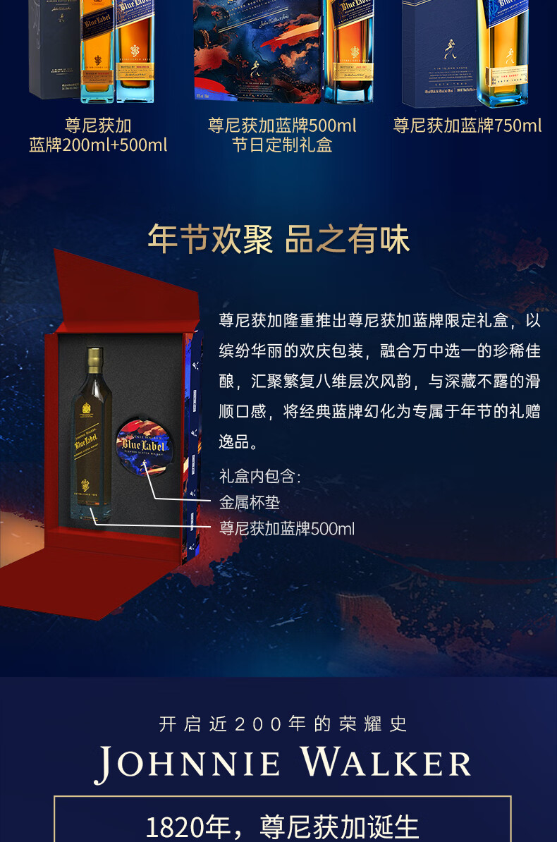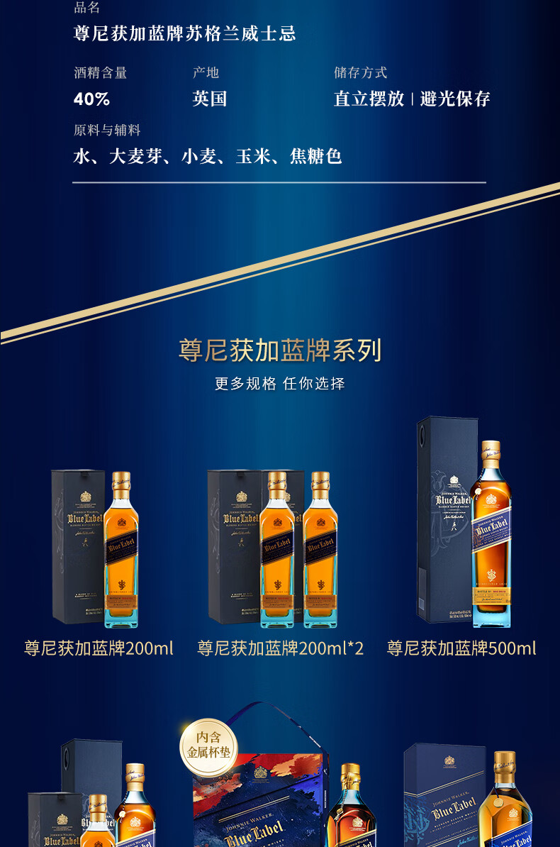 尊尼获加蓝方蓝牌 苏格兰调和型威士忌 洋酒 蓝牌200ml*2