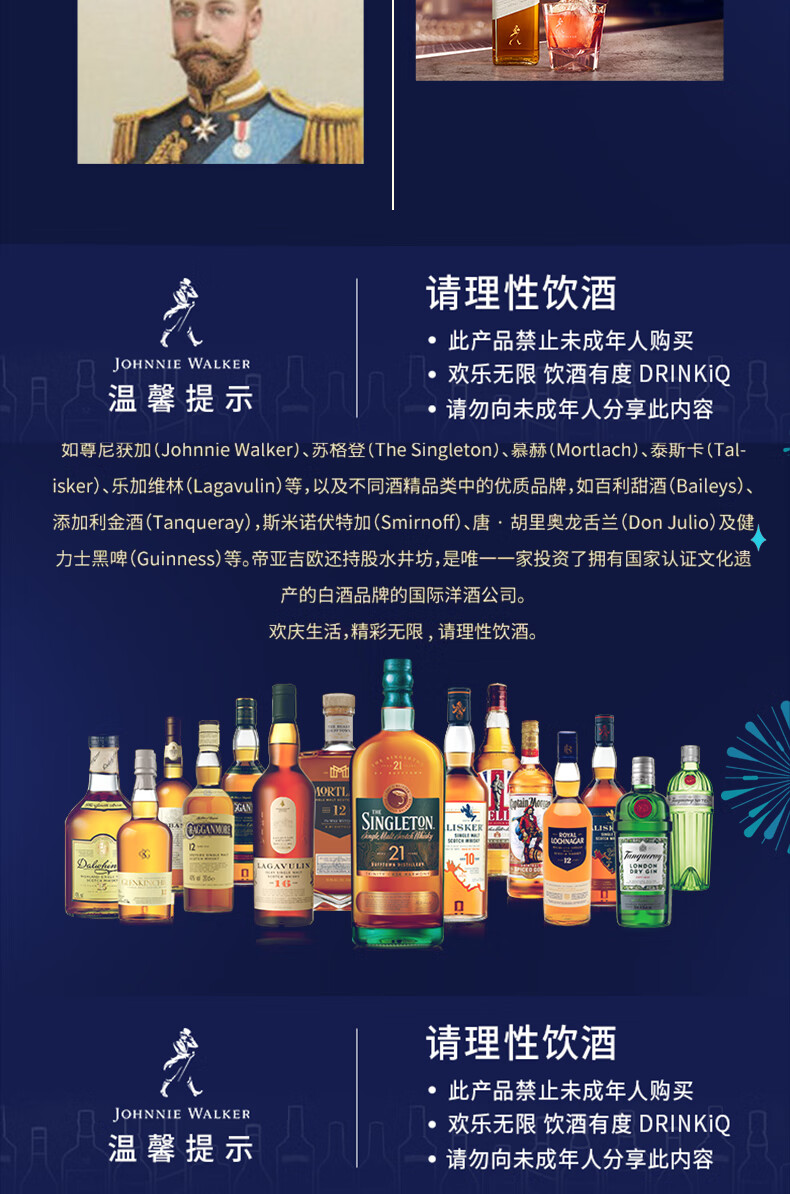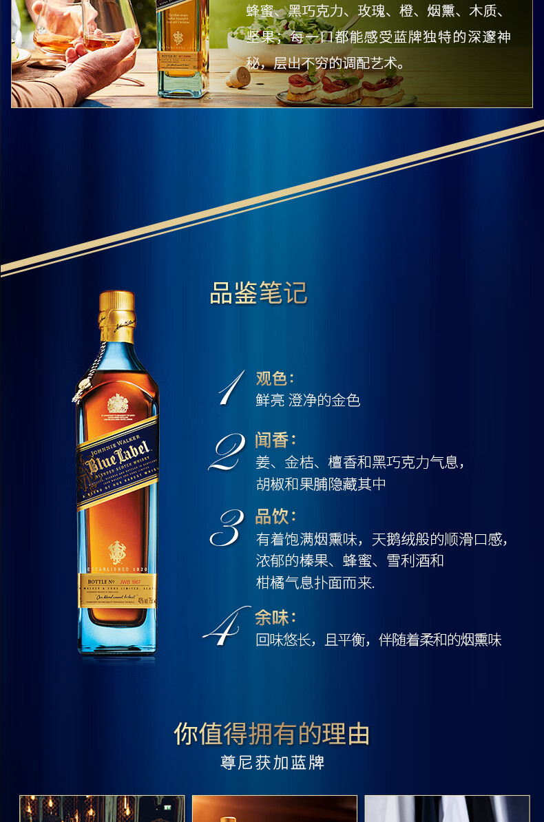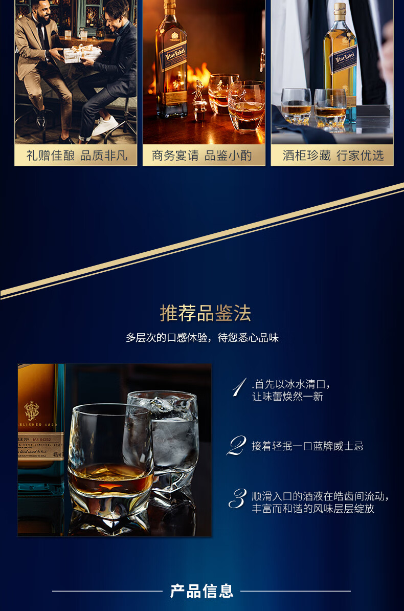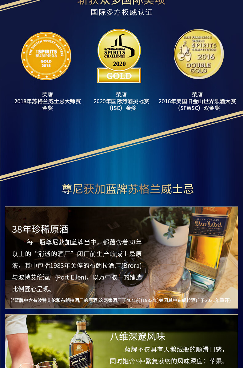 尊尼获加蓝方蓝牌 苏格兰调和型威士忌 洋酒 蓝牌200ml*2