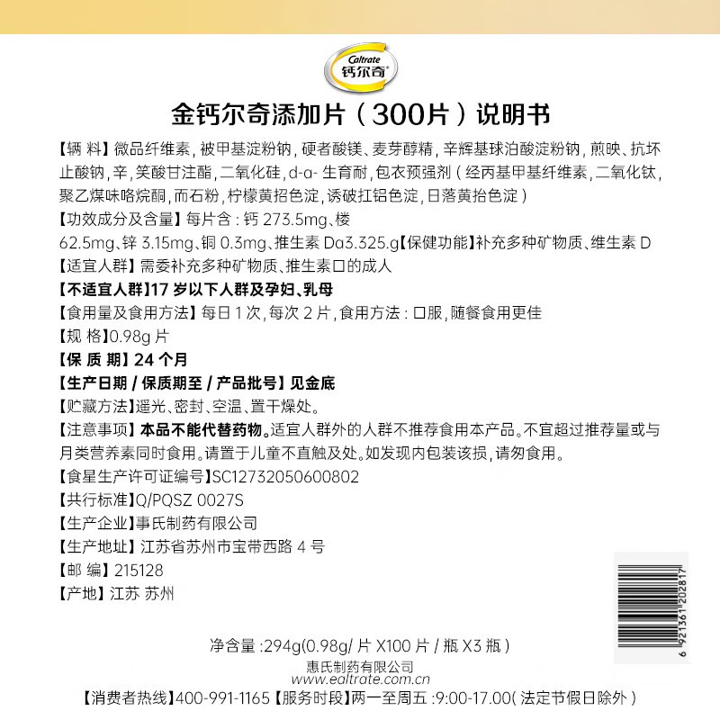 钙尔奇送礼送健康中老年钙镁锌铜维生素D片补充镁锌铜缺钙 甄选爆款 金钙尔奇添佳片 100片*2瓶