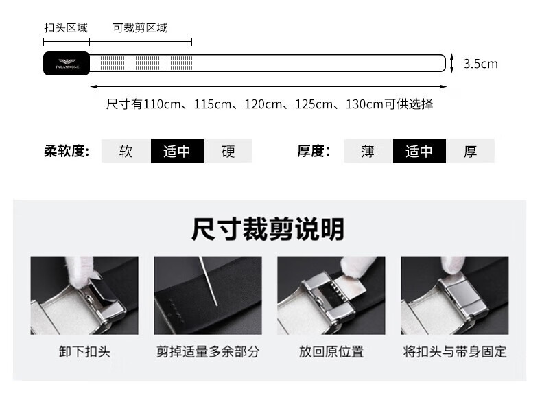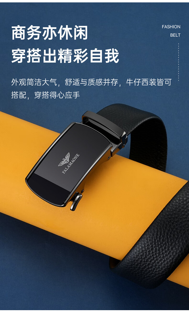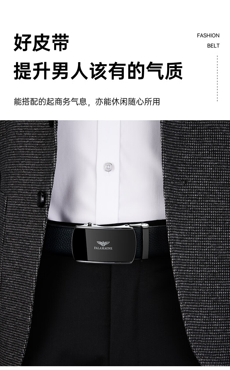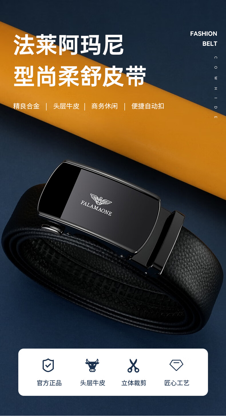 FALAMAONE法莱阿玛尼男士皮带自动扣头层牛皮腰带裤腰带生日礼物送男友老公 枪色【红色爱心礼盒】PD4565Q 110cm -130cm长度请联系客服备注