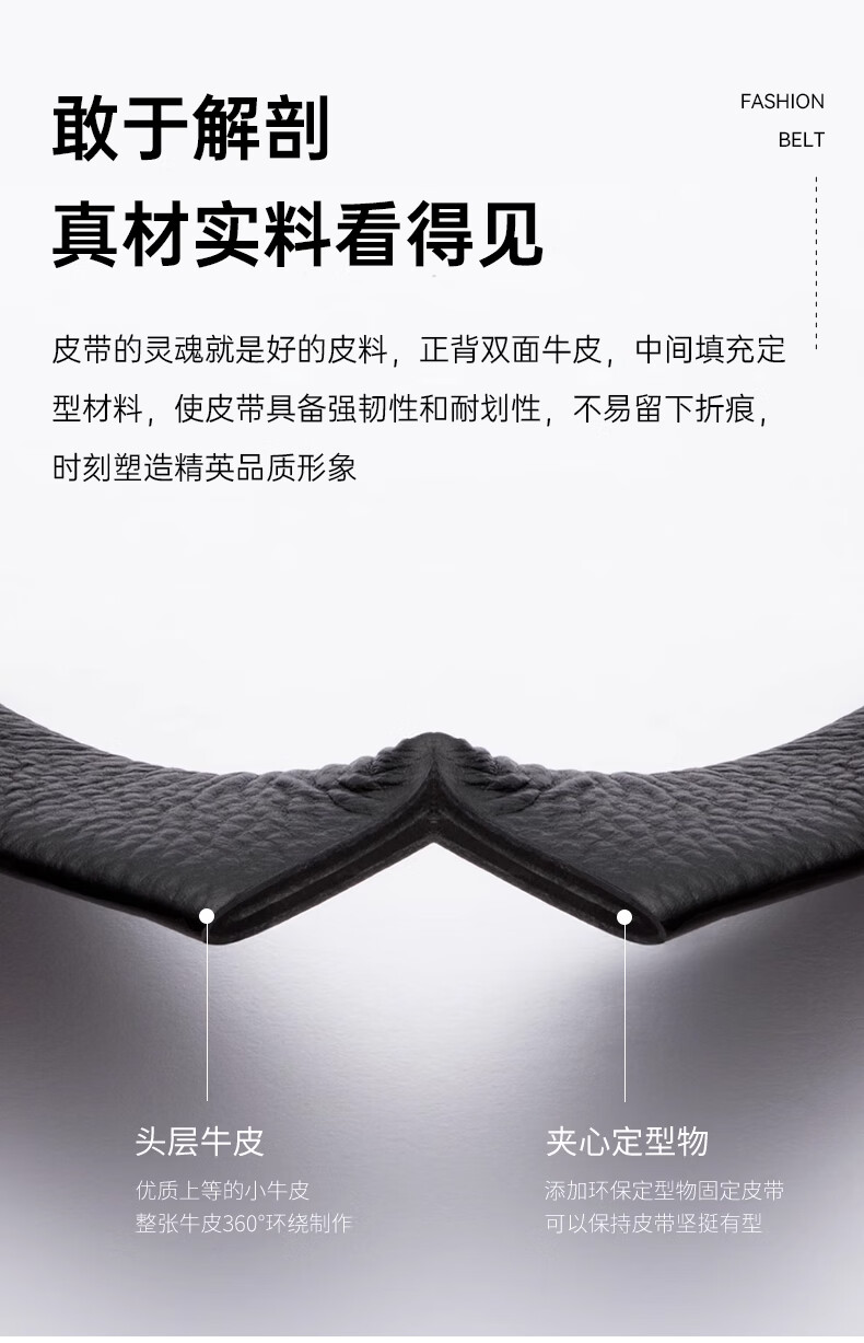 Caluom Kaiol品牌皮带男真皮自动扣男士腰带头层牛皮裤带情人节礼物送男友 【专柜礼盒】8035A玫瑰金色/内穿式 110cm -130cm默认随机(可修剪)