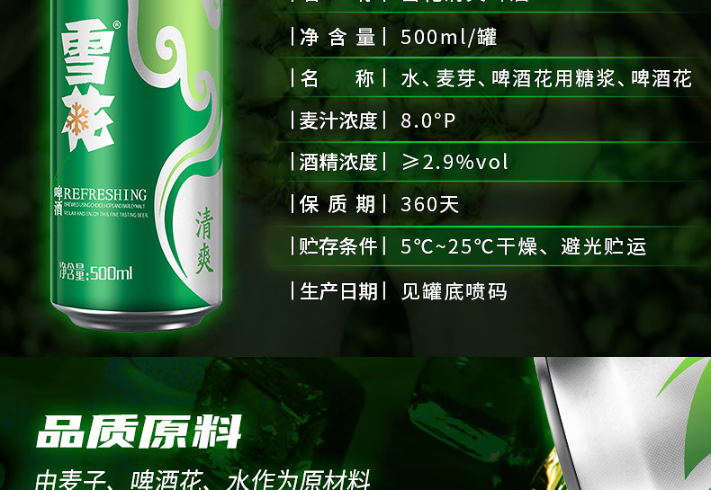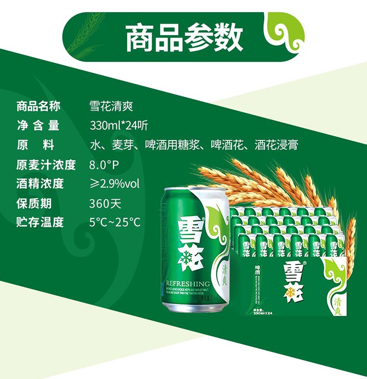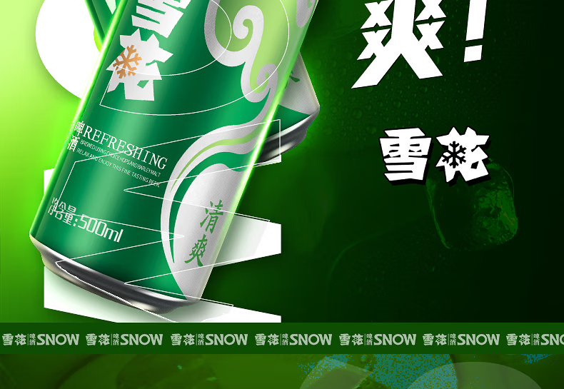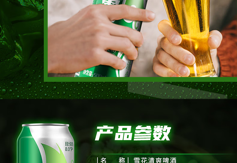 雪花清爽500ml/330ml啤酒罐装麦芽浓度8度经典大规格黄啤自饮聚会饮品 雪花清爽 500mL 12罐