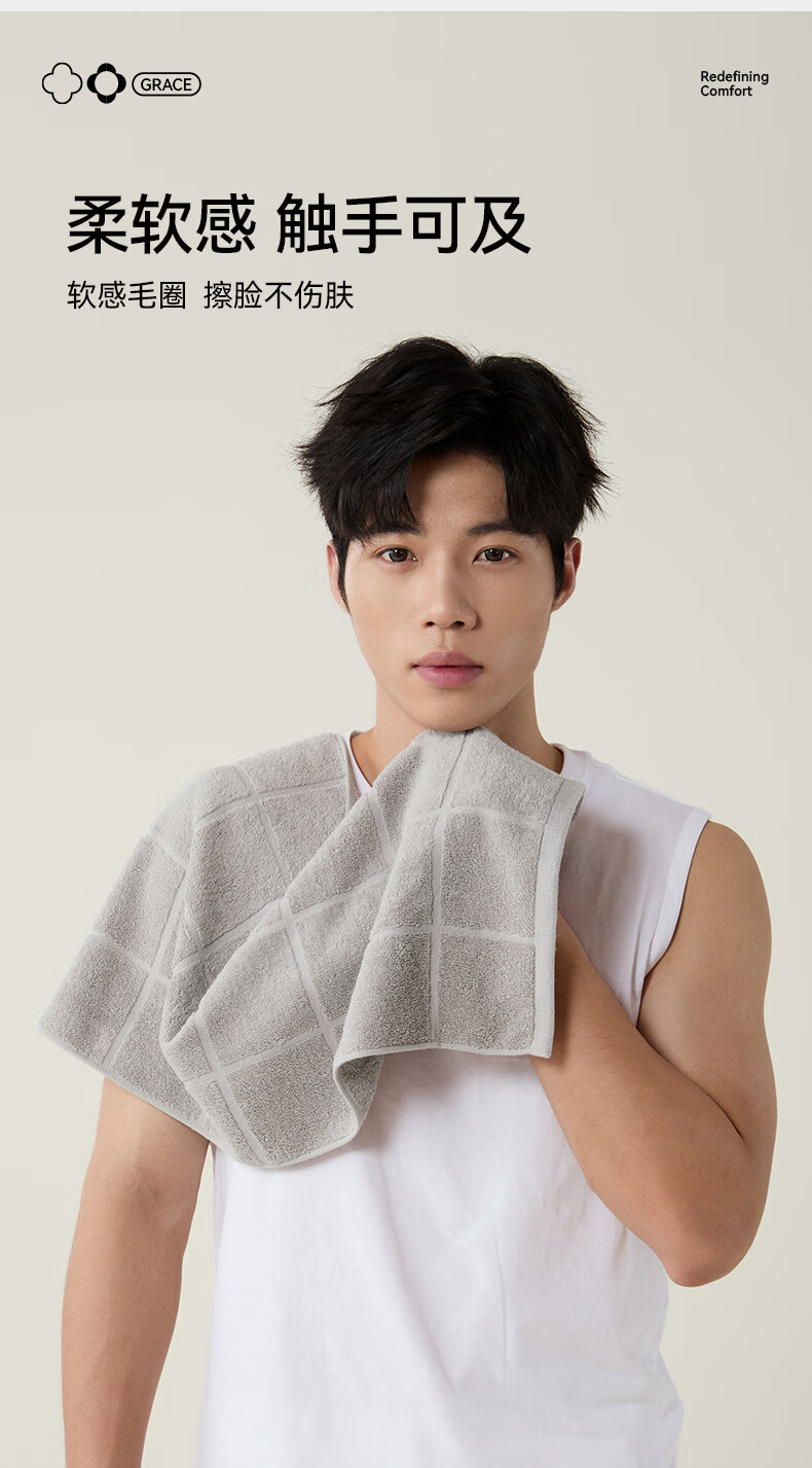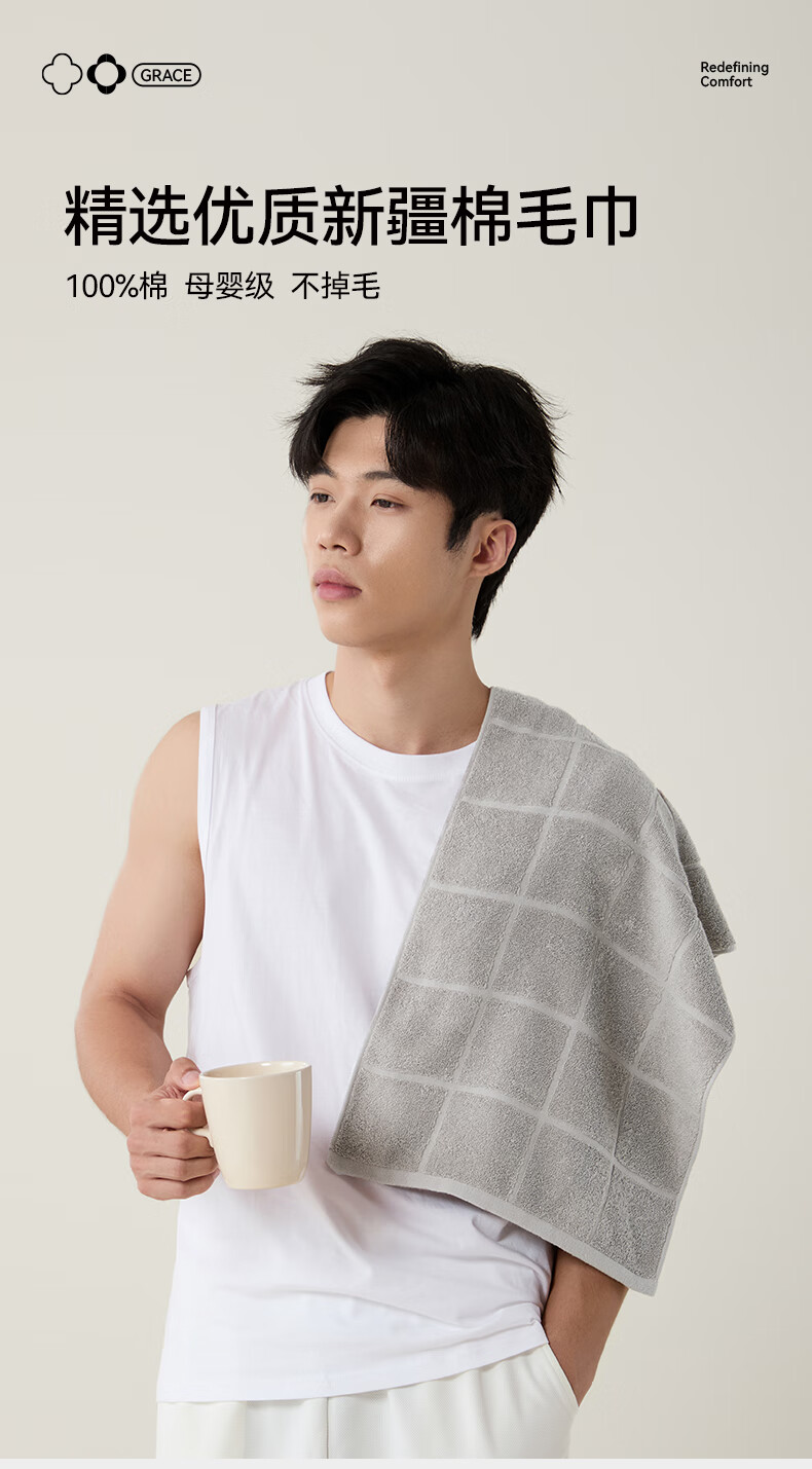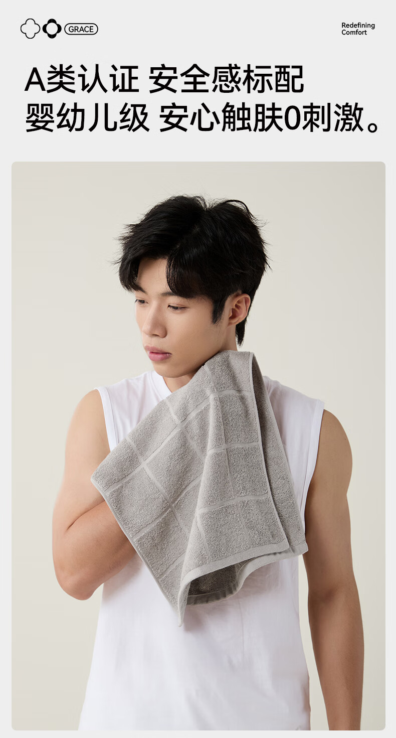 洁丽雅毛巾7A抗菌防螨100%纯棉男士家用新疆棉90克加厚柔软吸水洗澡洗脸