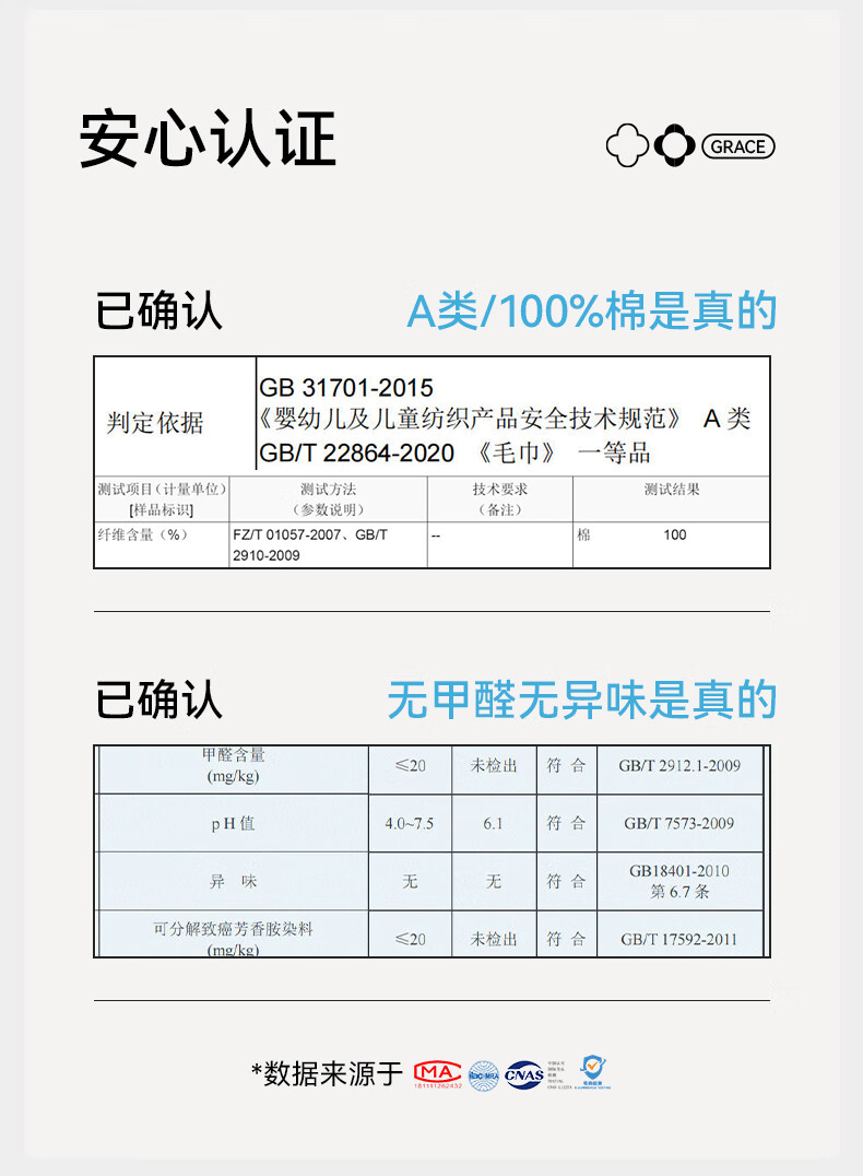 洁丽雅(Grace)毛巾纯棉A类儿童毛巾洗脸纱布巾4条装口水巾儿童宝宝洗脸方巾