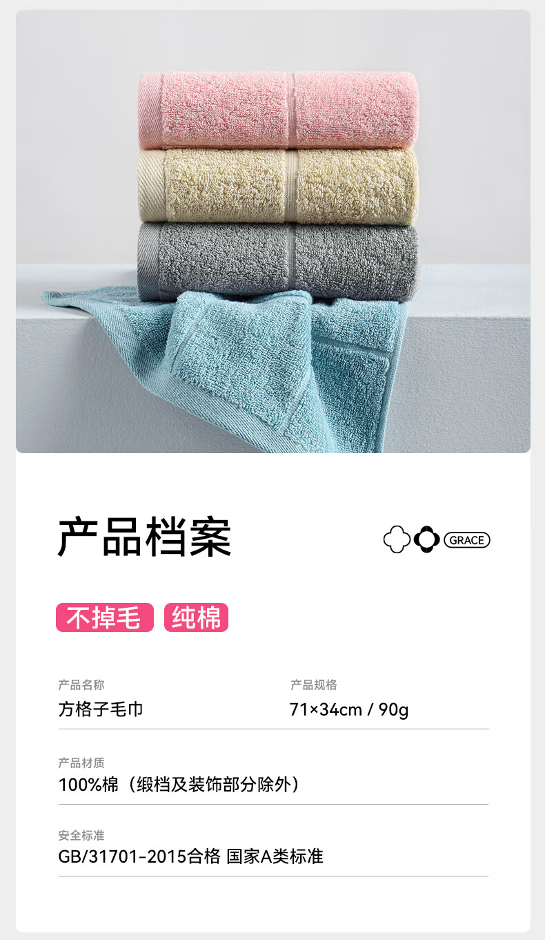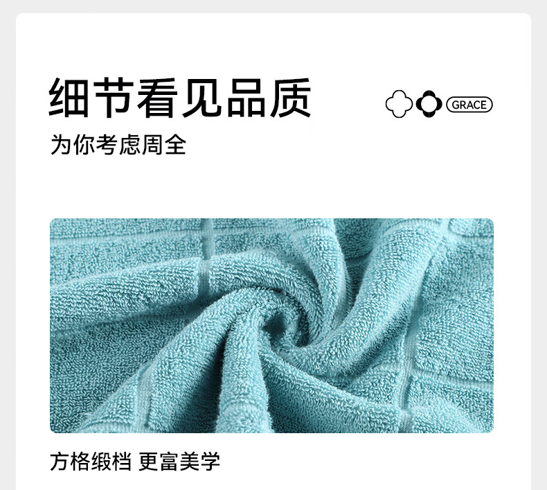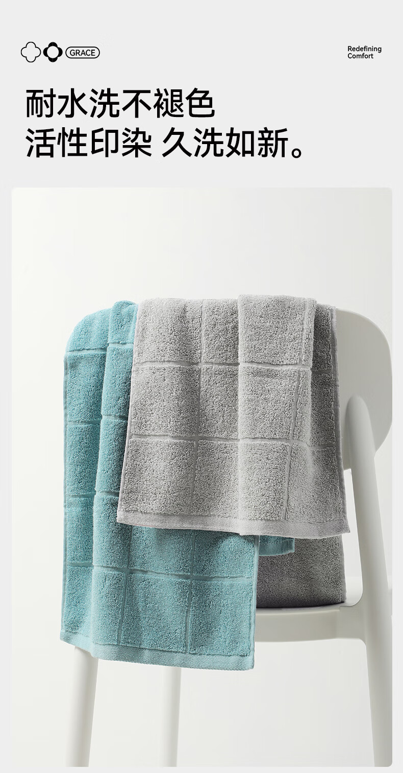 洁丽雅毛巾A类纯棉不掉毛 120克2条厚 新疆甄选棉洗澡洗脸柔软洗脸吸水