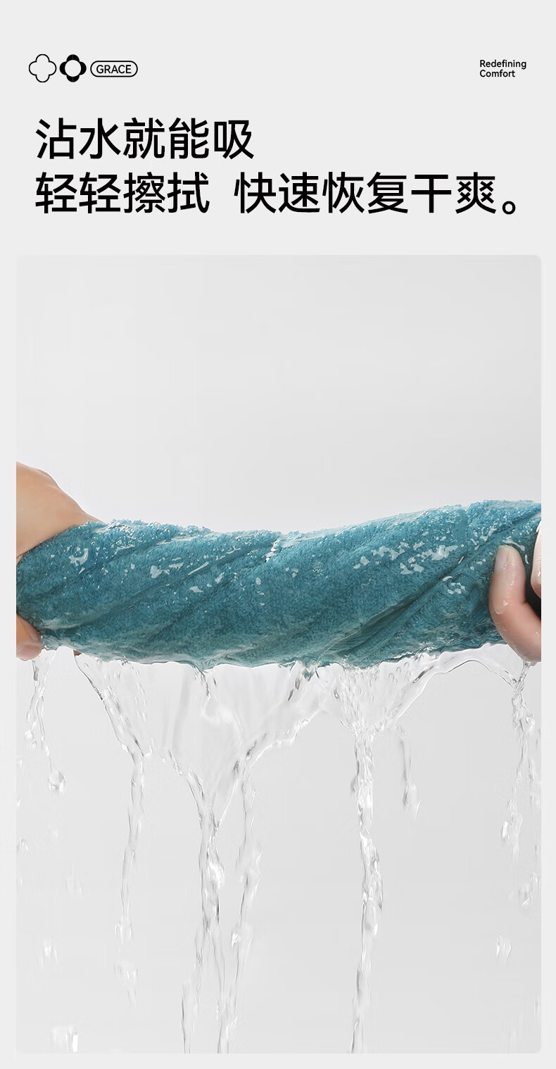 洁丽雅10A抗菌毛巾2条加大强力吸水亲肤透气速干柔软男女不易掉毛洗脸巾