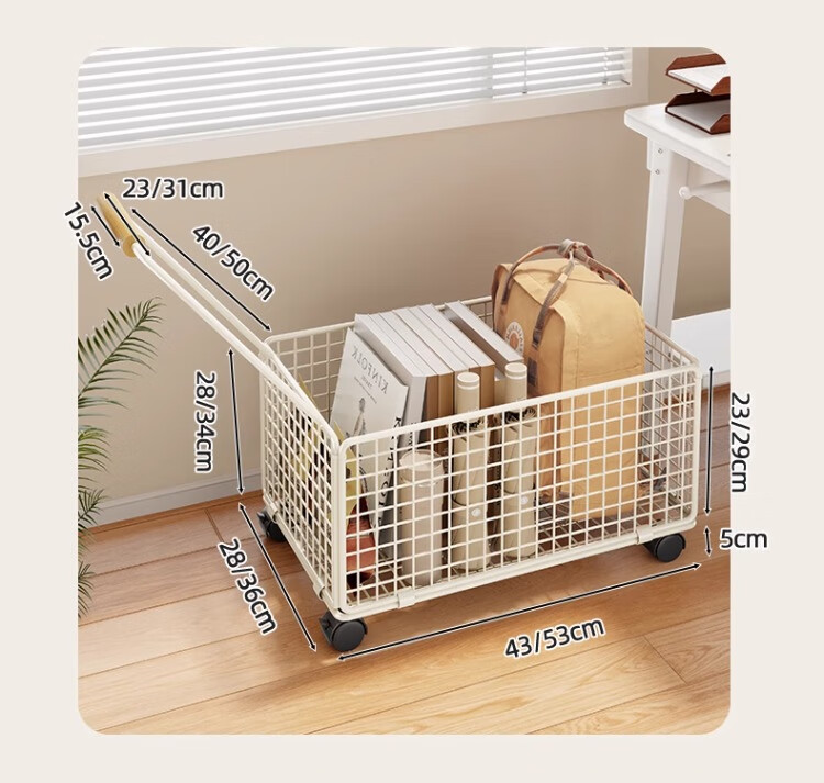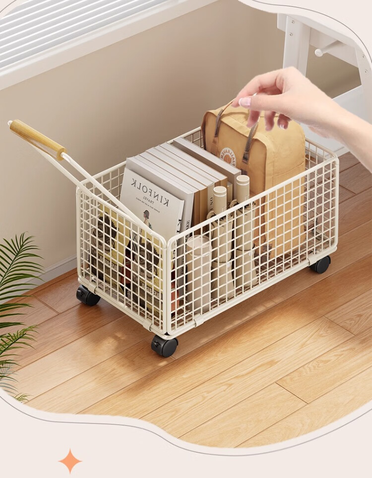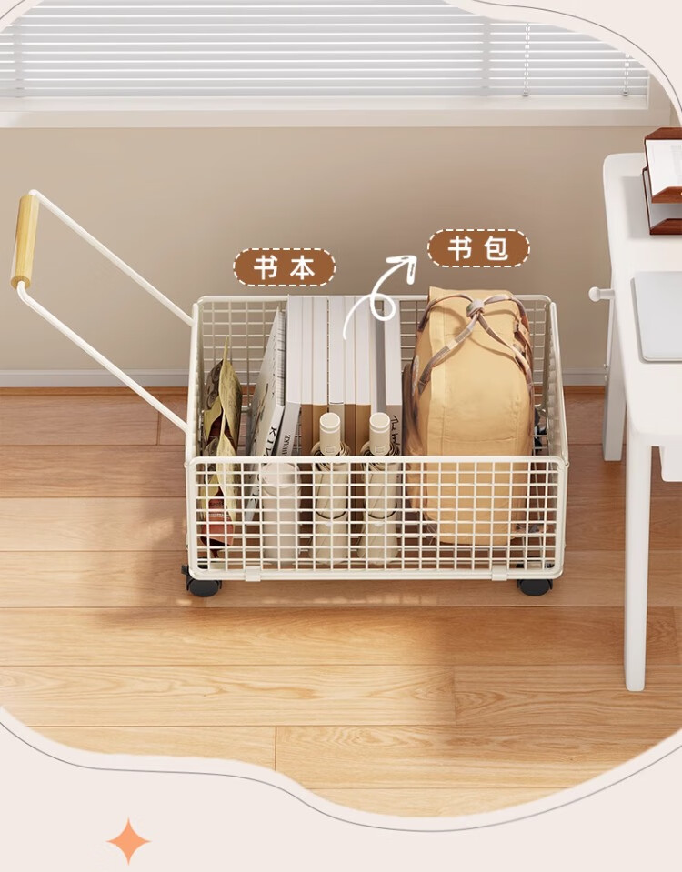 尔思家书本收纳箱书箱书立架高中生教室用装书箱带轮可移动书包置物架 白色-大号