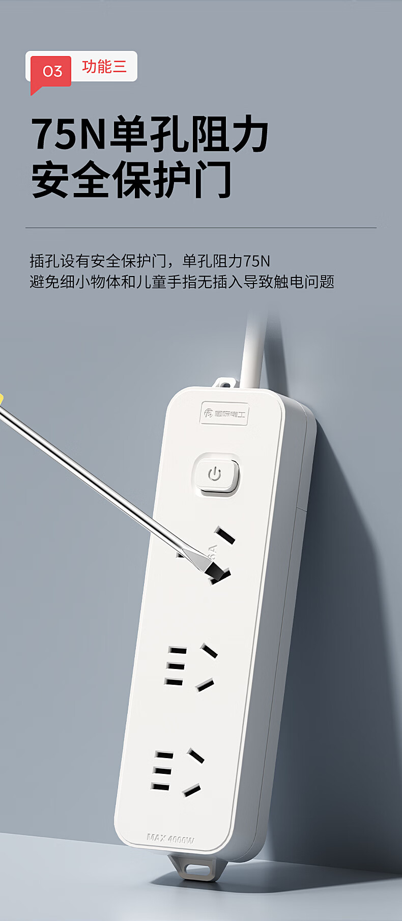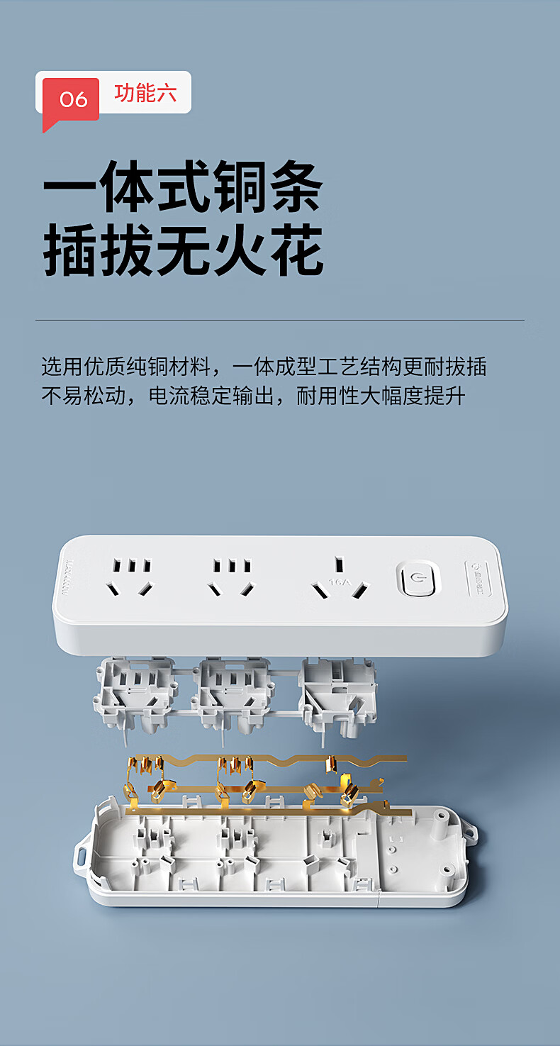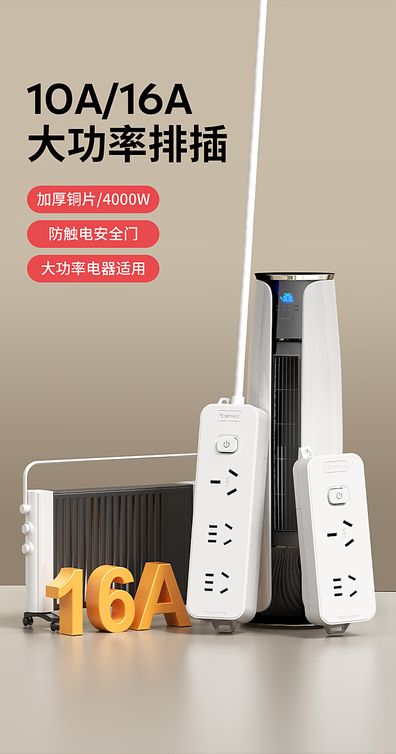 国际电工(FDD)大功率16A延长线插线板空调热水器家用带开关排插多孔插座接线板 一位16A五孔【一键总控】线长0.3米