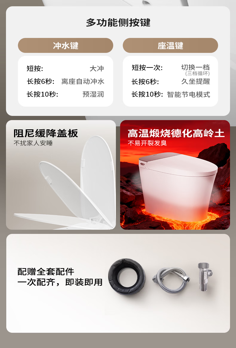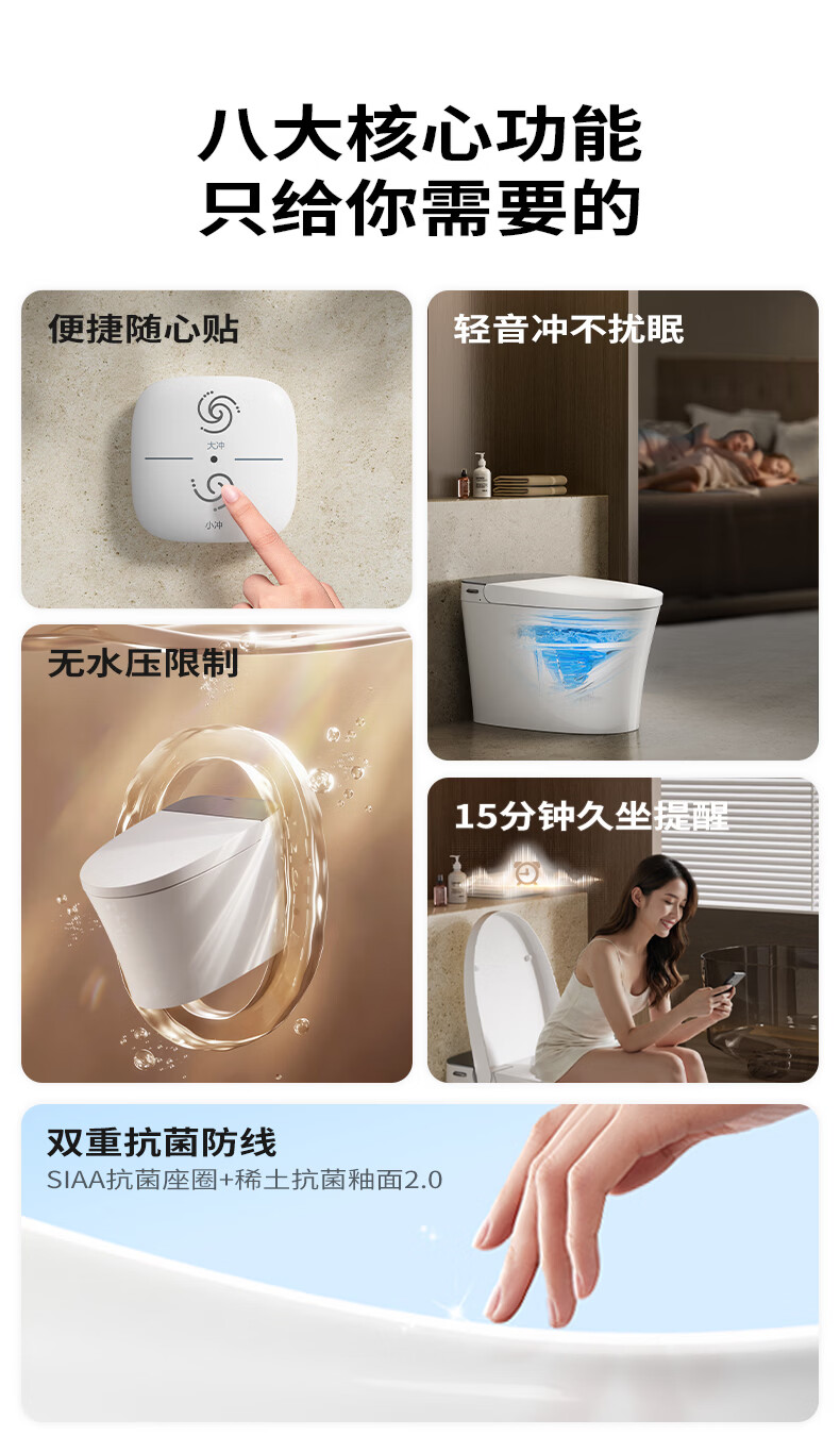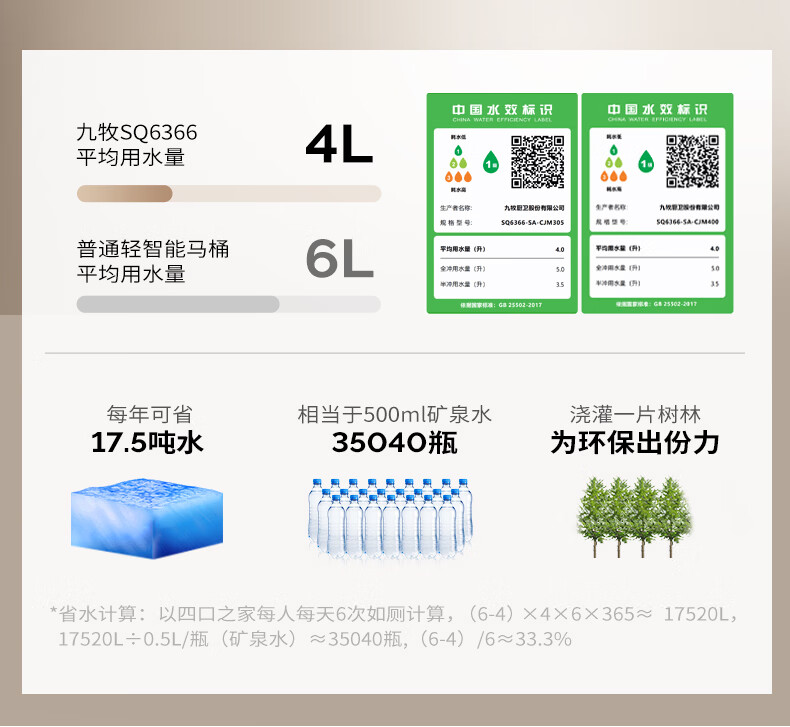 九牧(JOMOO)轻智能马桶静音冲无水压限制家用一体机虹吸坐便器一级水效 【离座大小冲+随心贴】26年新款SQ6366 305/300mm