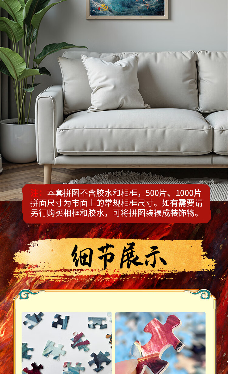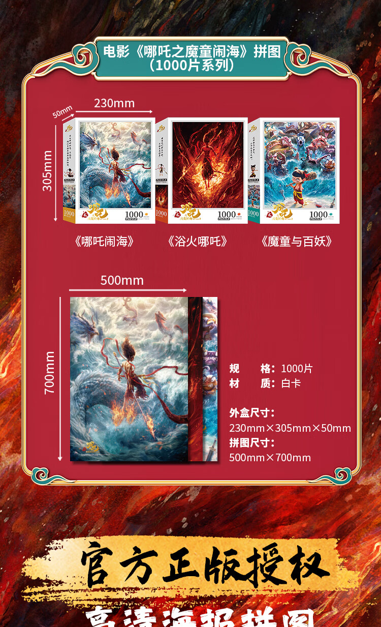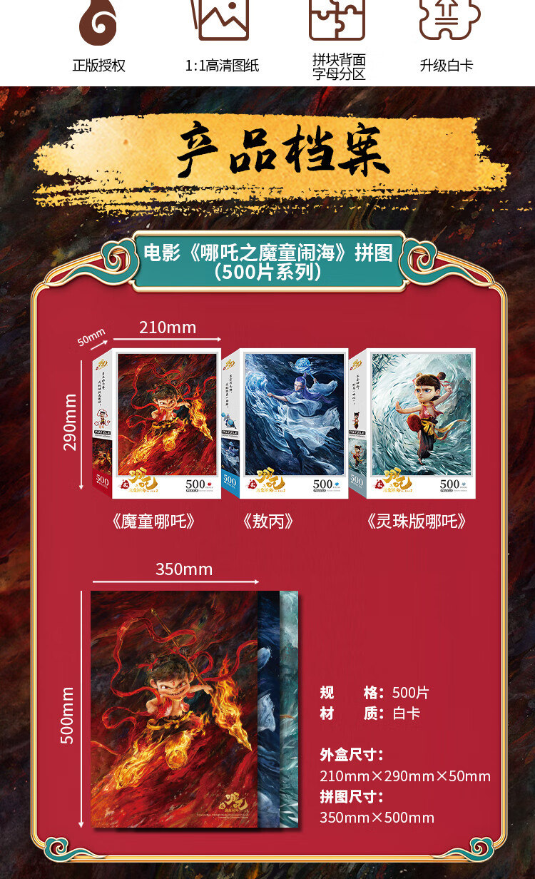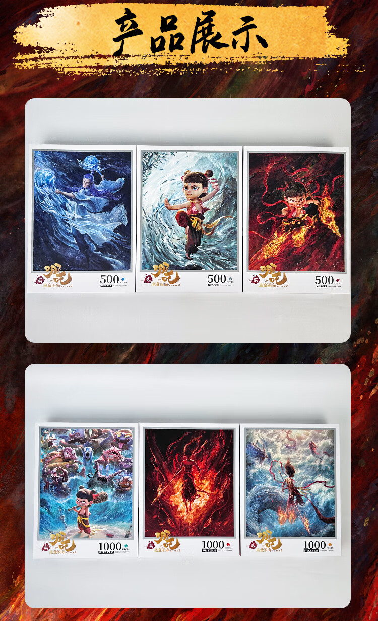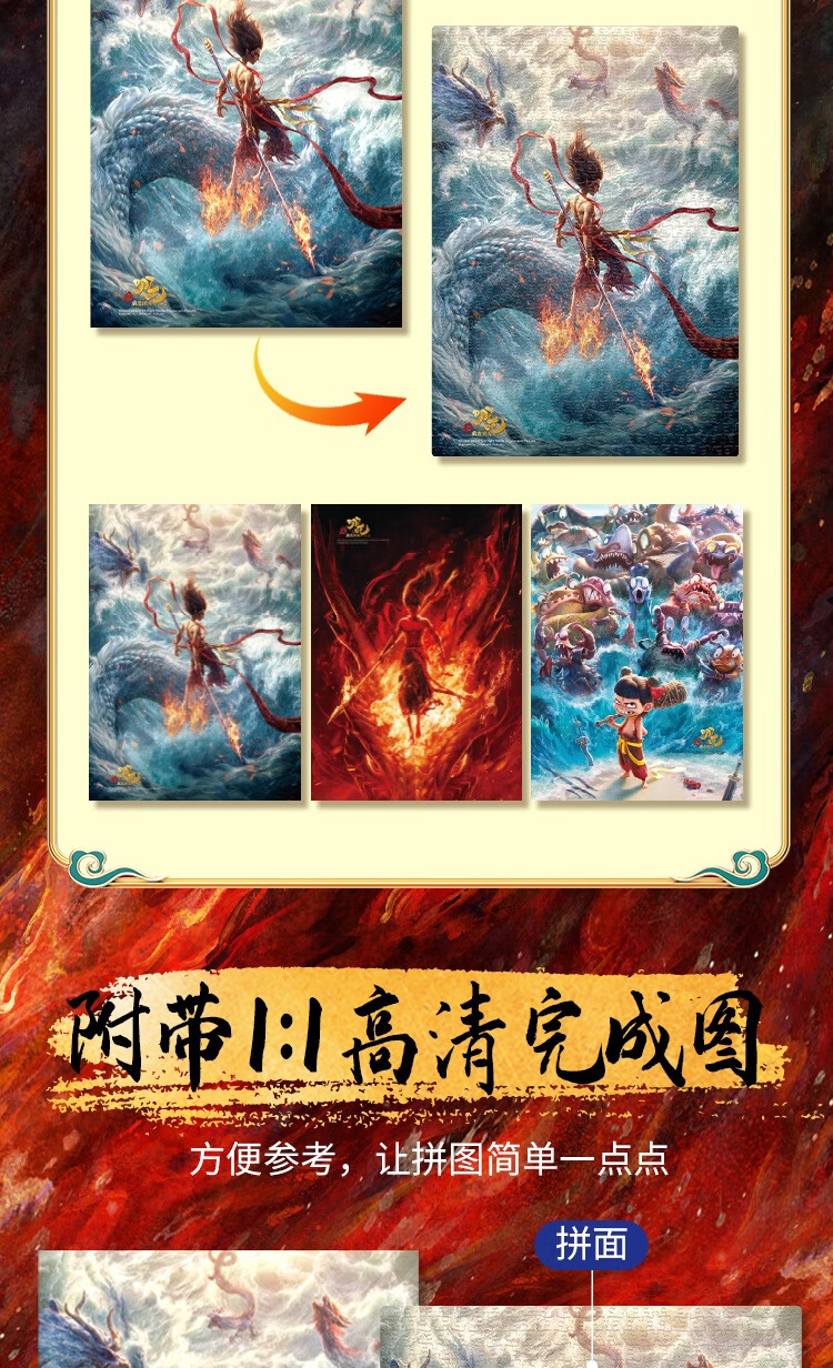 亿基美哪吒拼图500片儿童益智平图玩具男女孩生日礼物官方正版敖丙