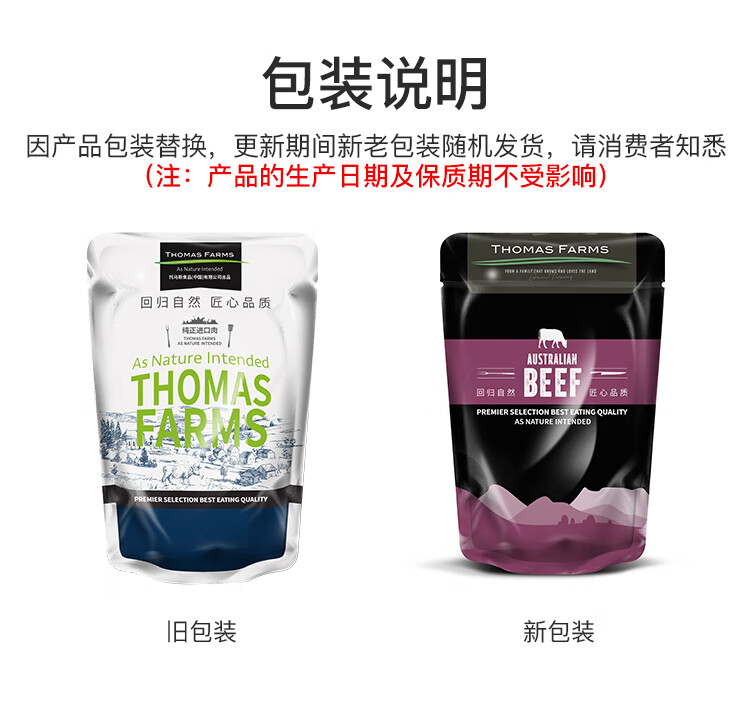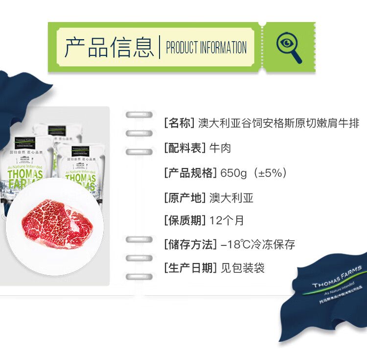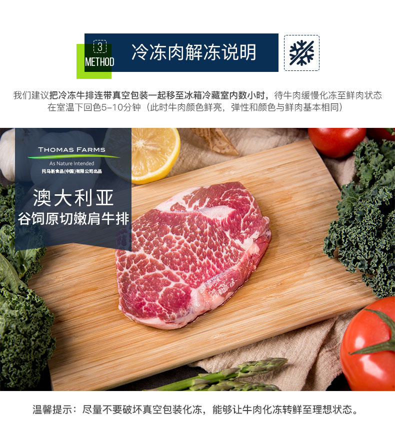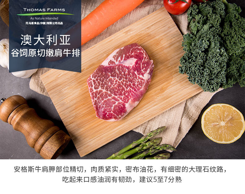 THOMAS FARMS 澳洲安格斯谷饲150天原切嫩肩牛排 650g/5-7片 烧烤健身