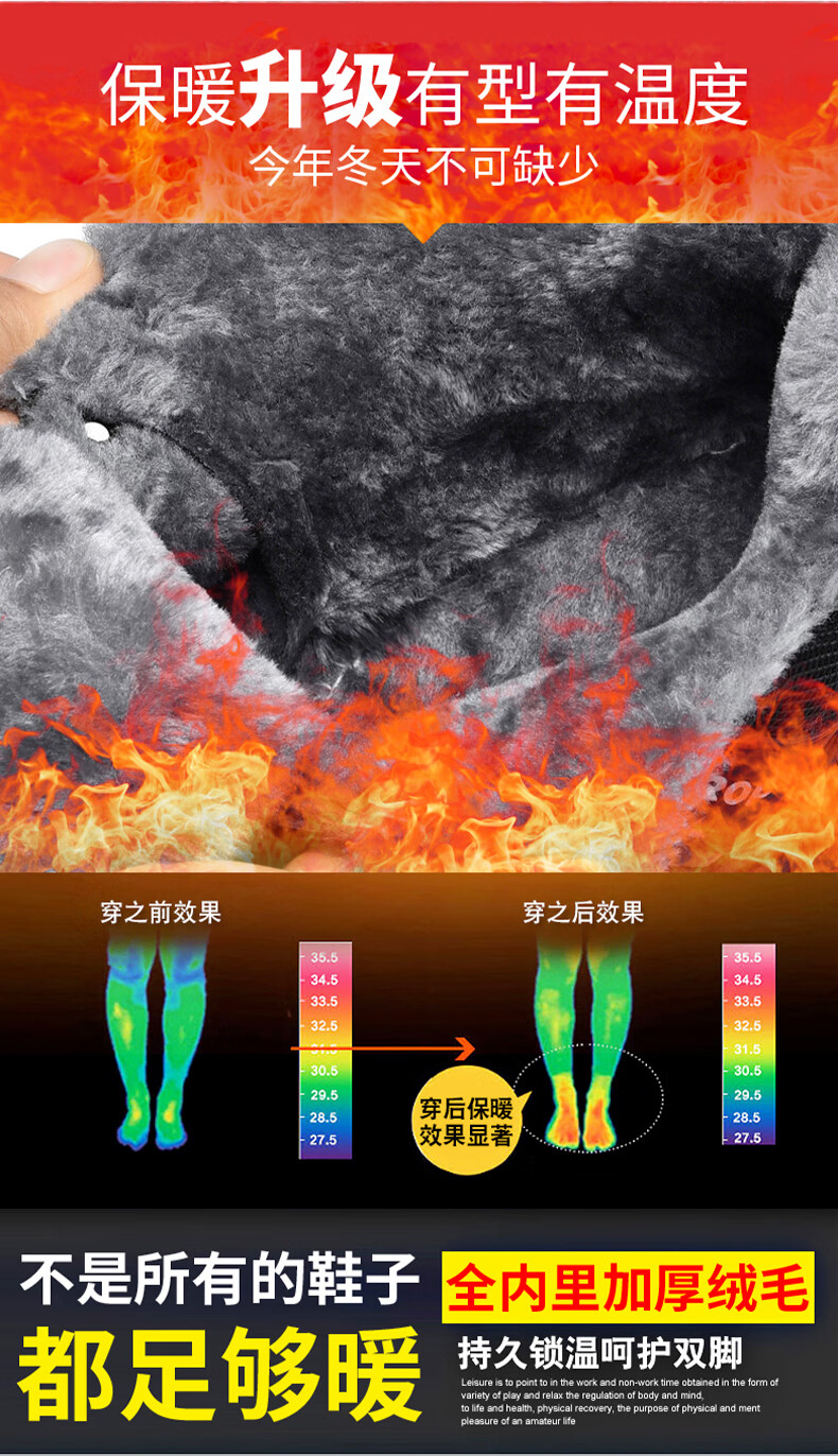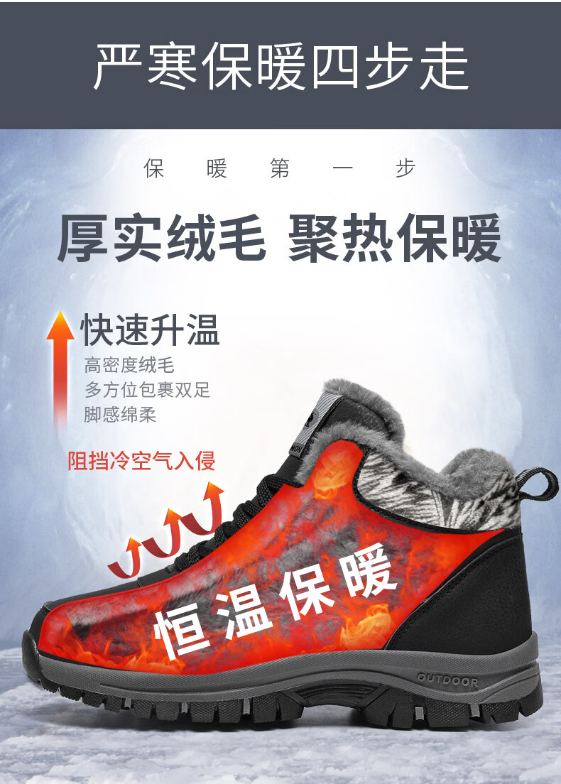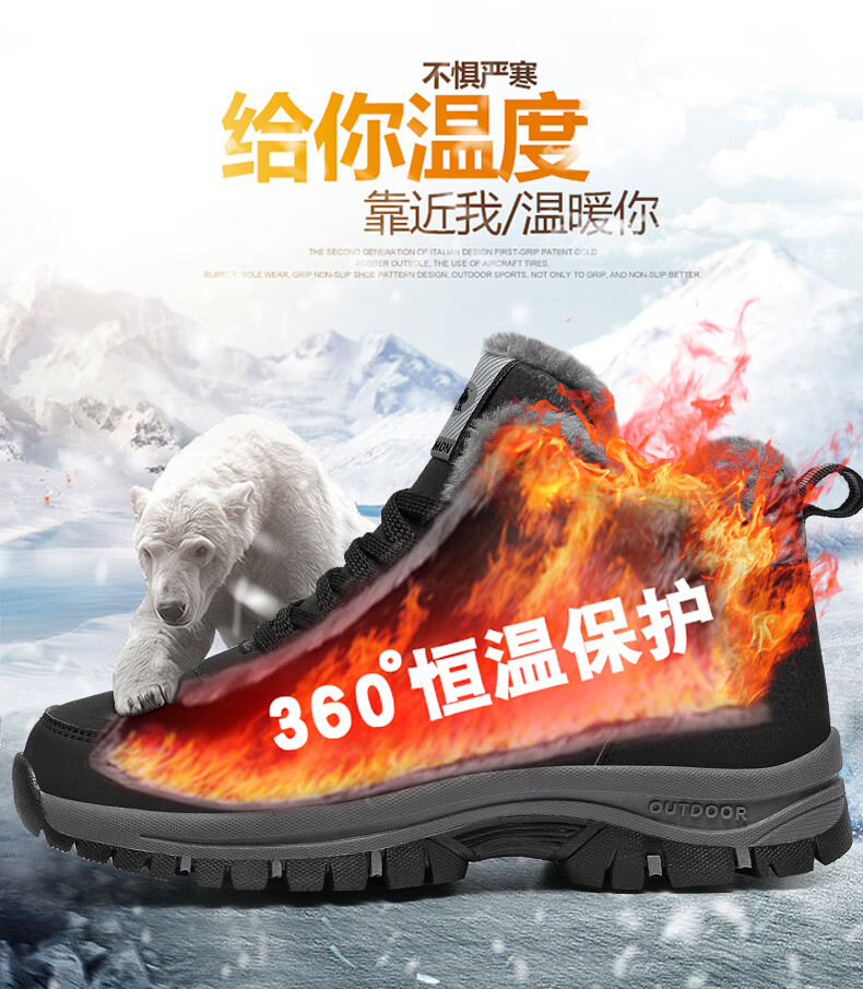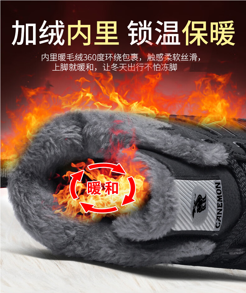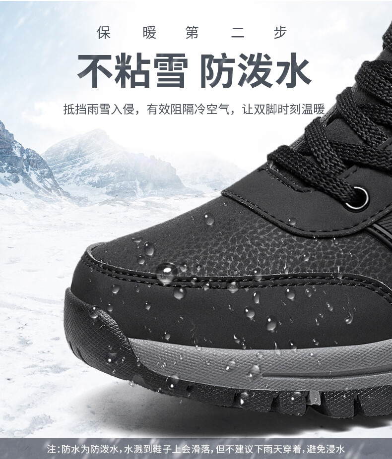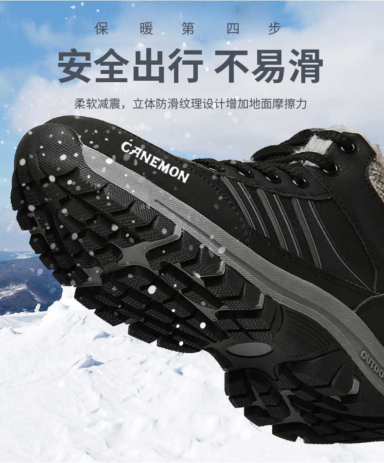 保罗骆驼保暖棉鞋 2026冬季新款加绒男女鞋 保暖防水防滑户外登山鞋 黑色男款 35 【标准运动鞋码】