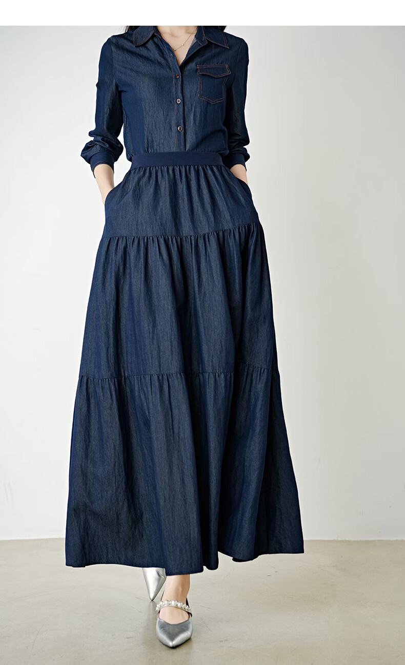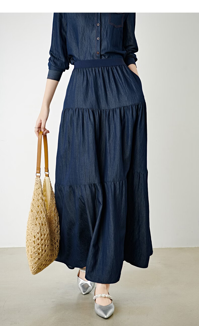 晚白【新品】2026年春款经典休闲牛仔色半裙松紧腰显瘦百搭大摆半身裙 丹宁兰 S