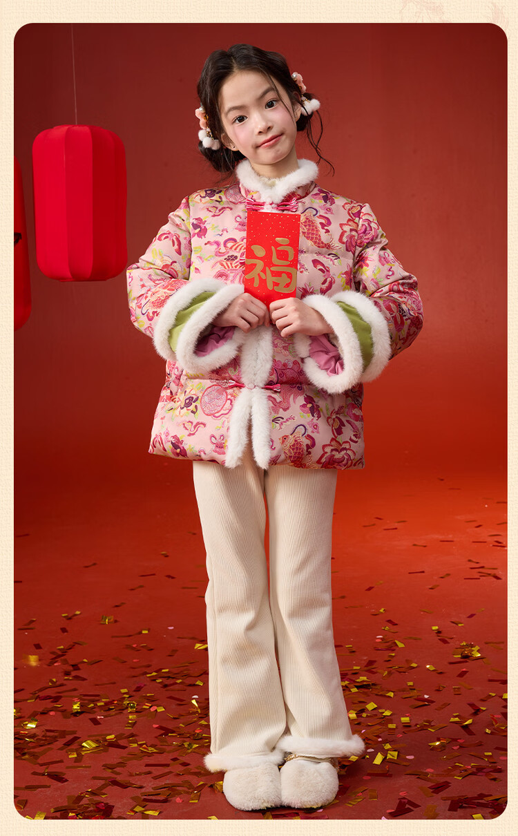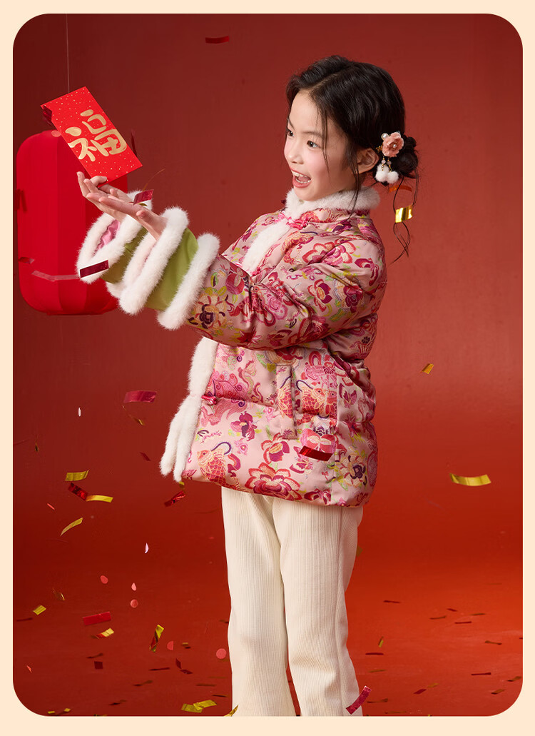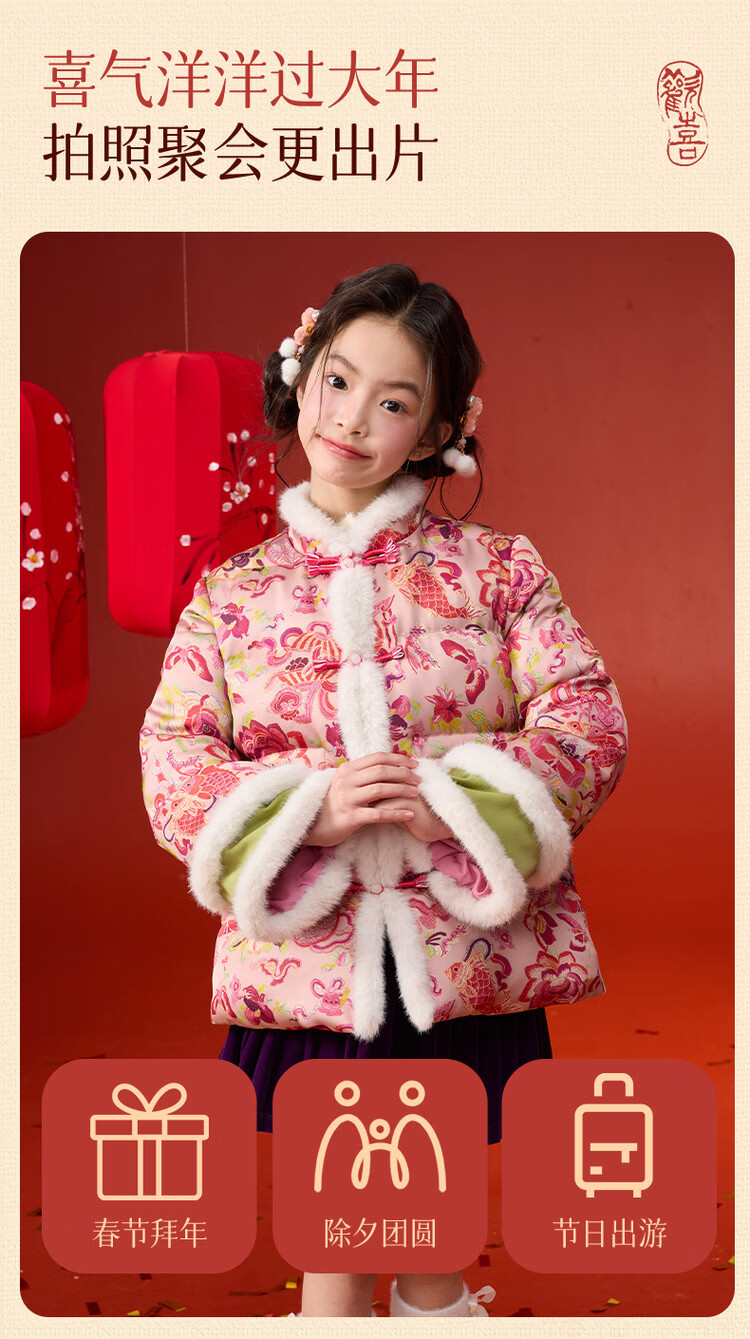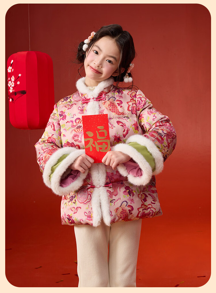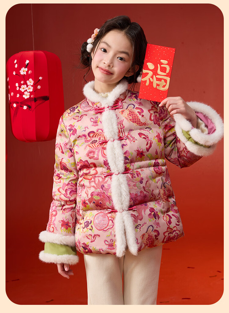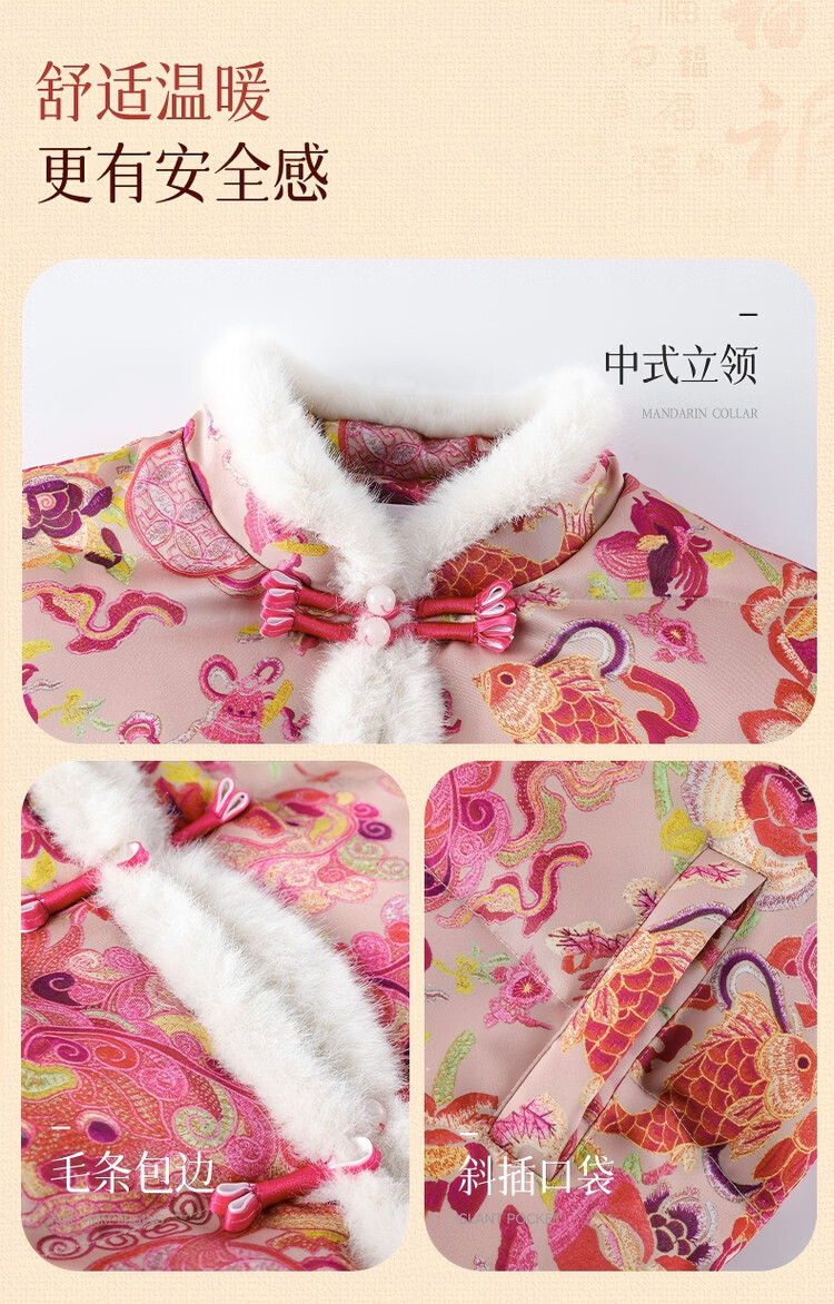 媛媛公主【国风拜年服】儿童棉服25冬新款女童夹棉加厚中大童福娃棉外套 花色 120