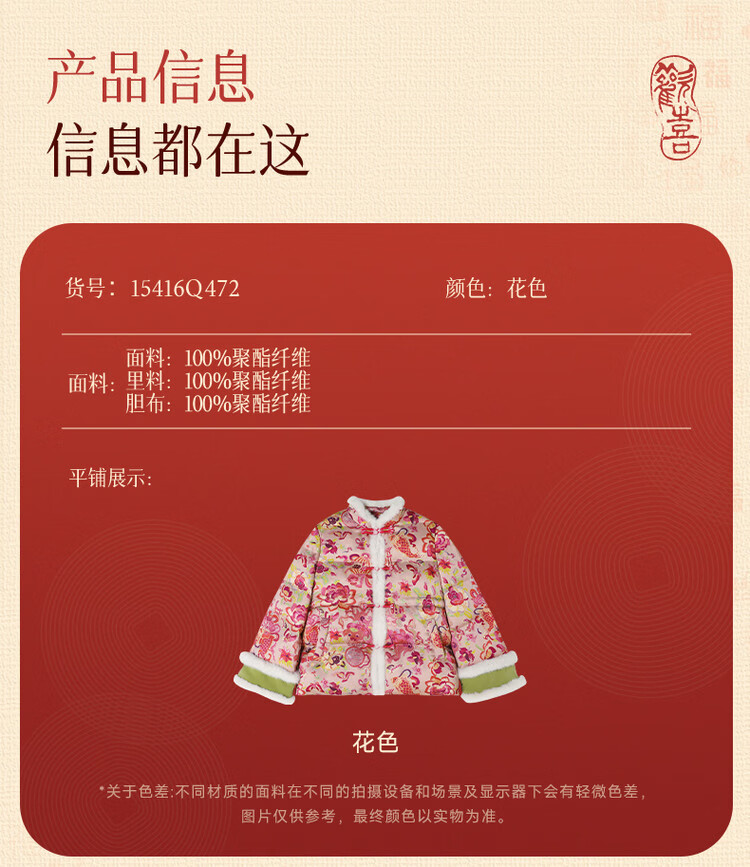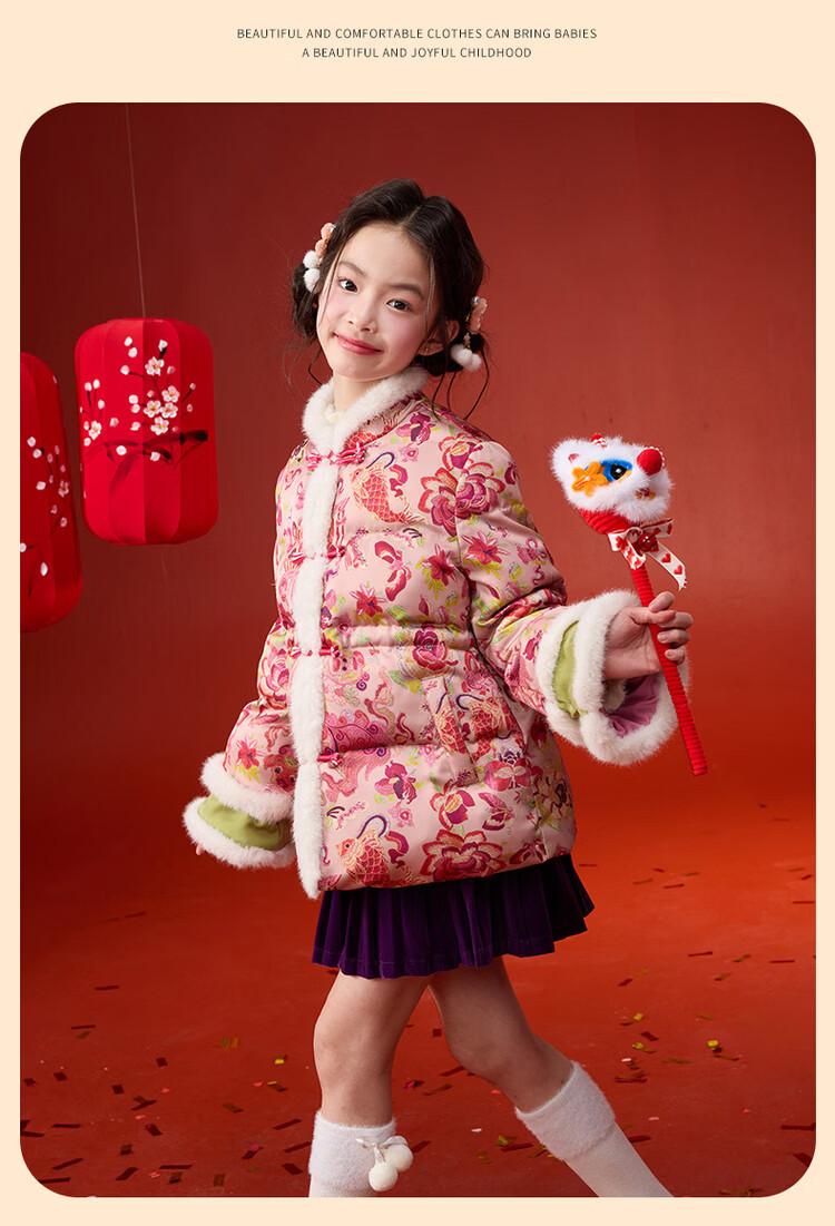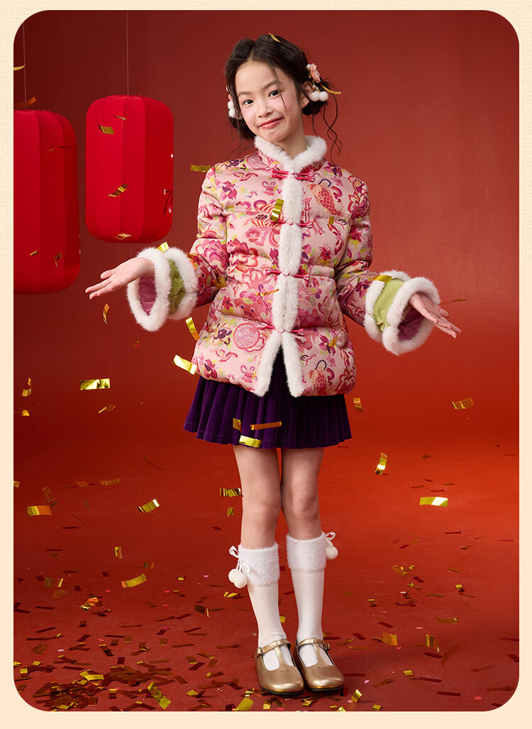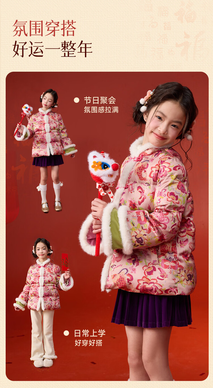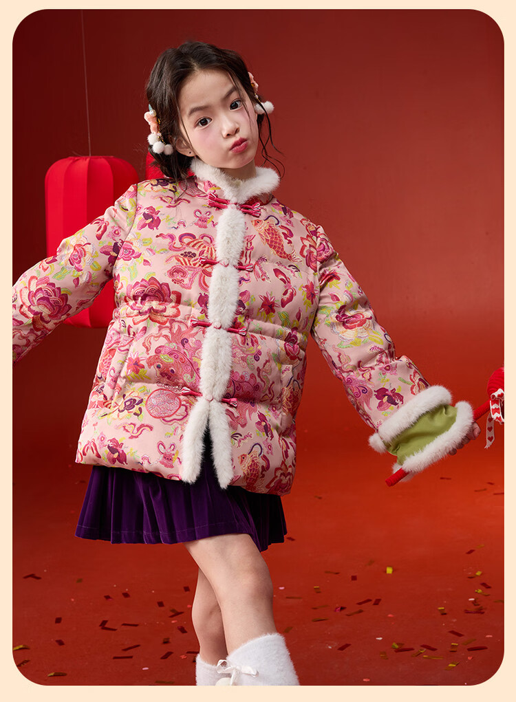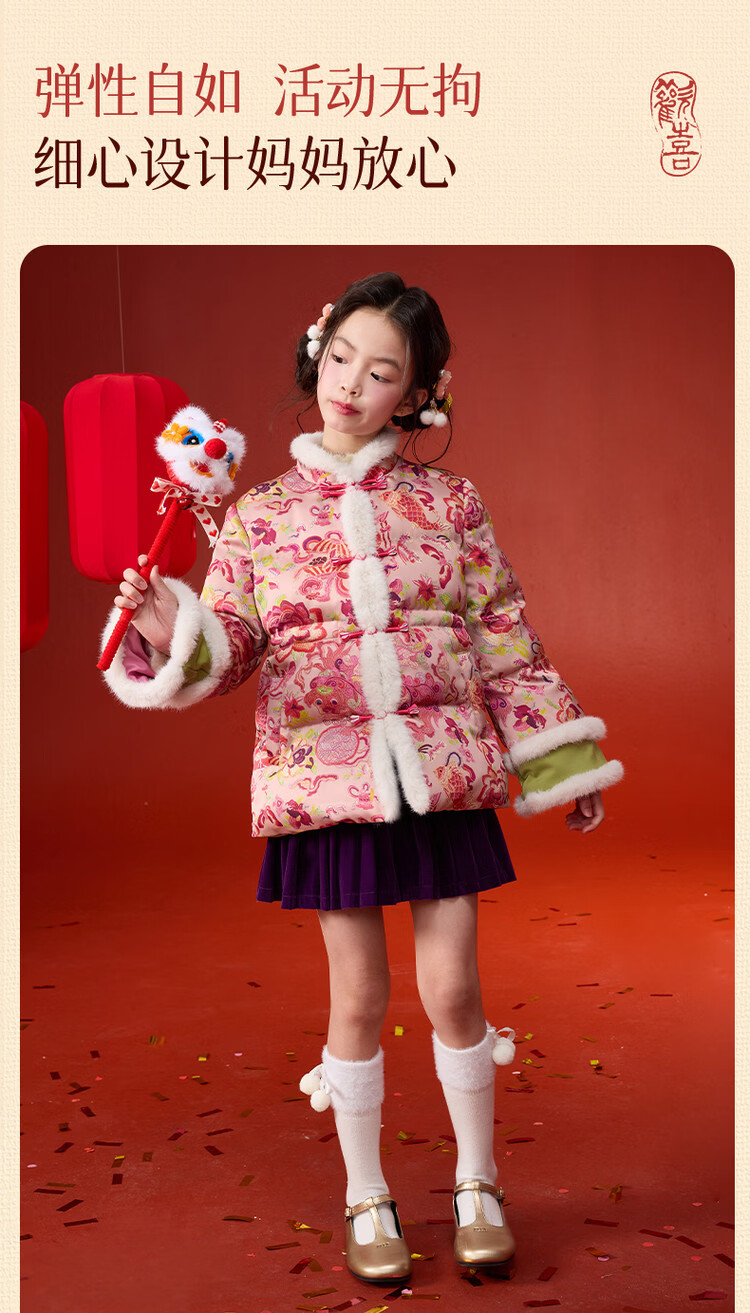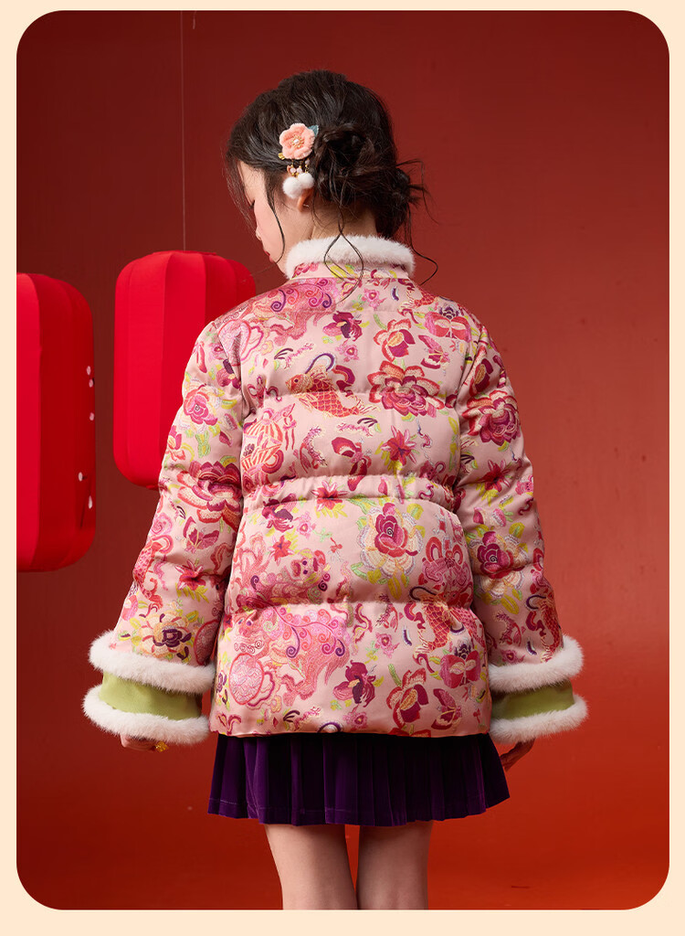 媛媛公主【国风拜年服】儿童棉服25冬新款女童夹棉加厚中大童福娃棉外套 花色 120