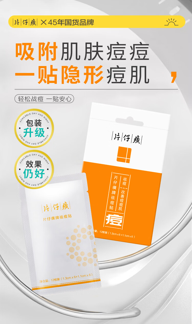 片仔癀祛痘贴日夜双效 痘痘贴吸浓去隐形痘印上妆贴痘坑痘疤方官 (实惠装)祛痘贴2包/24枚