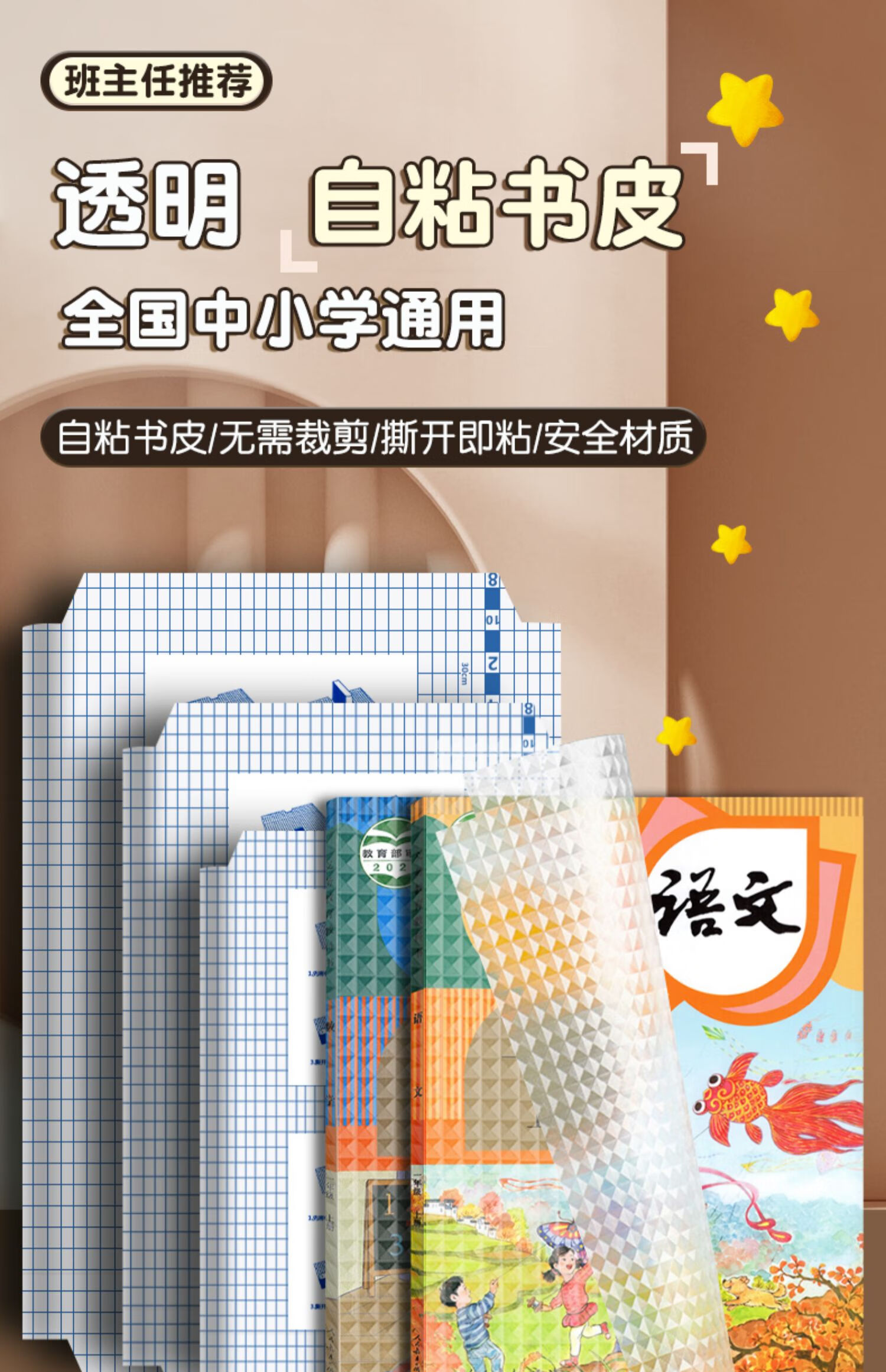 简菲自粘包书皮透明磨砂书皮纸课本包书膜小学生一二三四五年级上册书套a416k包装纸保护套书壳包书纸 【热销组合30张】小中大各10张