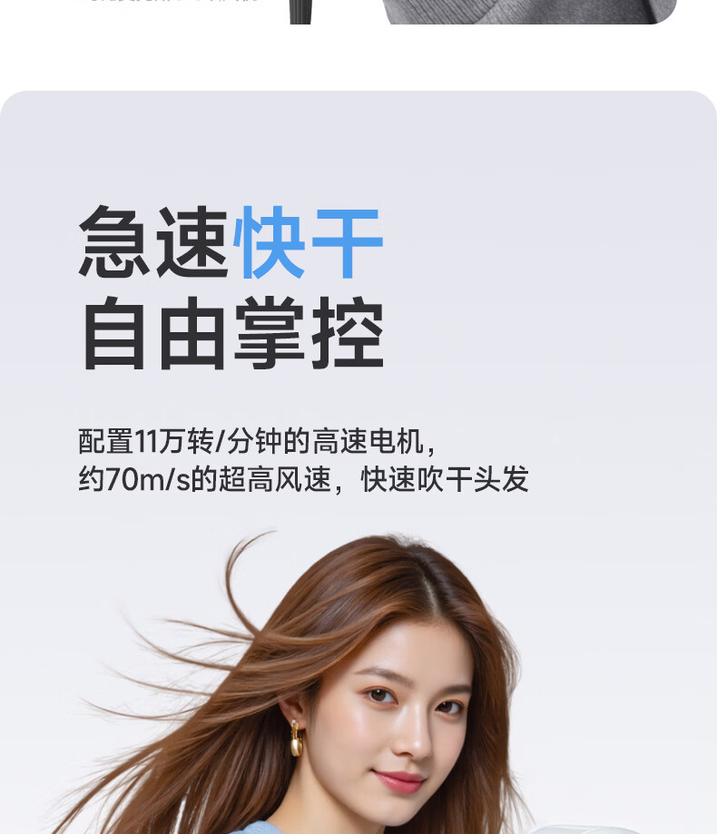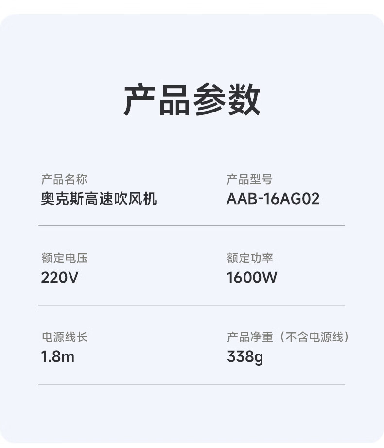 奥克斯(AUX)吹风机家用负离子大功率不伤发电吹风高速护发风筒男女士专用吹头发大风力吹风筒礼物 年会奖品
