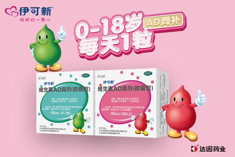 [伊可新]维生素AD滴剂 2000IU:700IU*60粒 2盒装 一岁以上-实发150粒