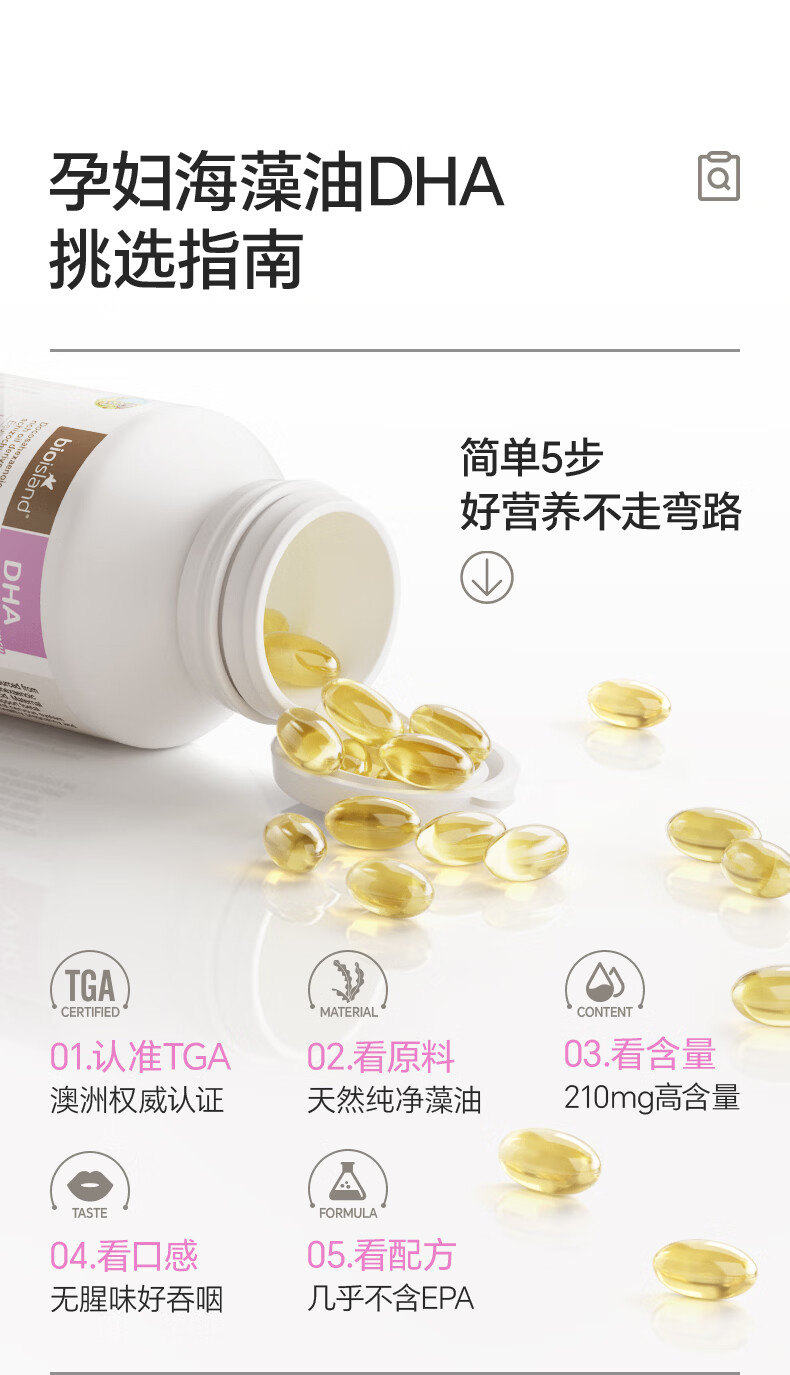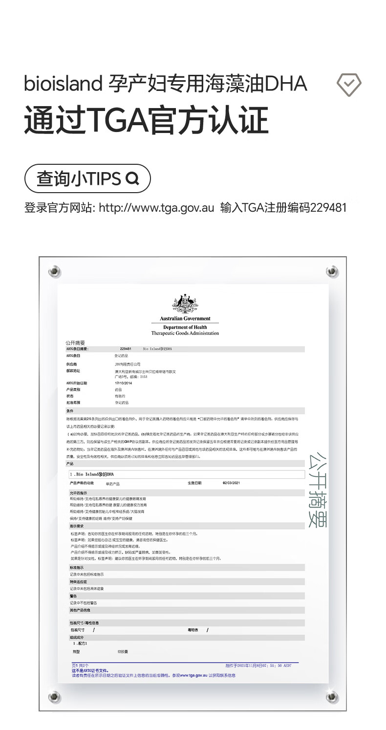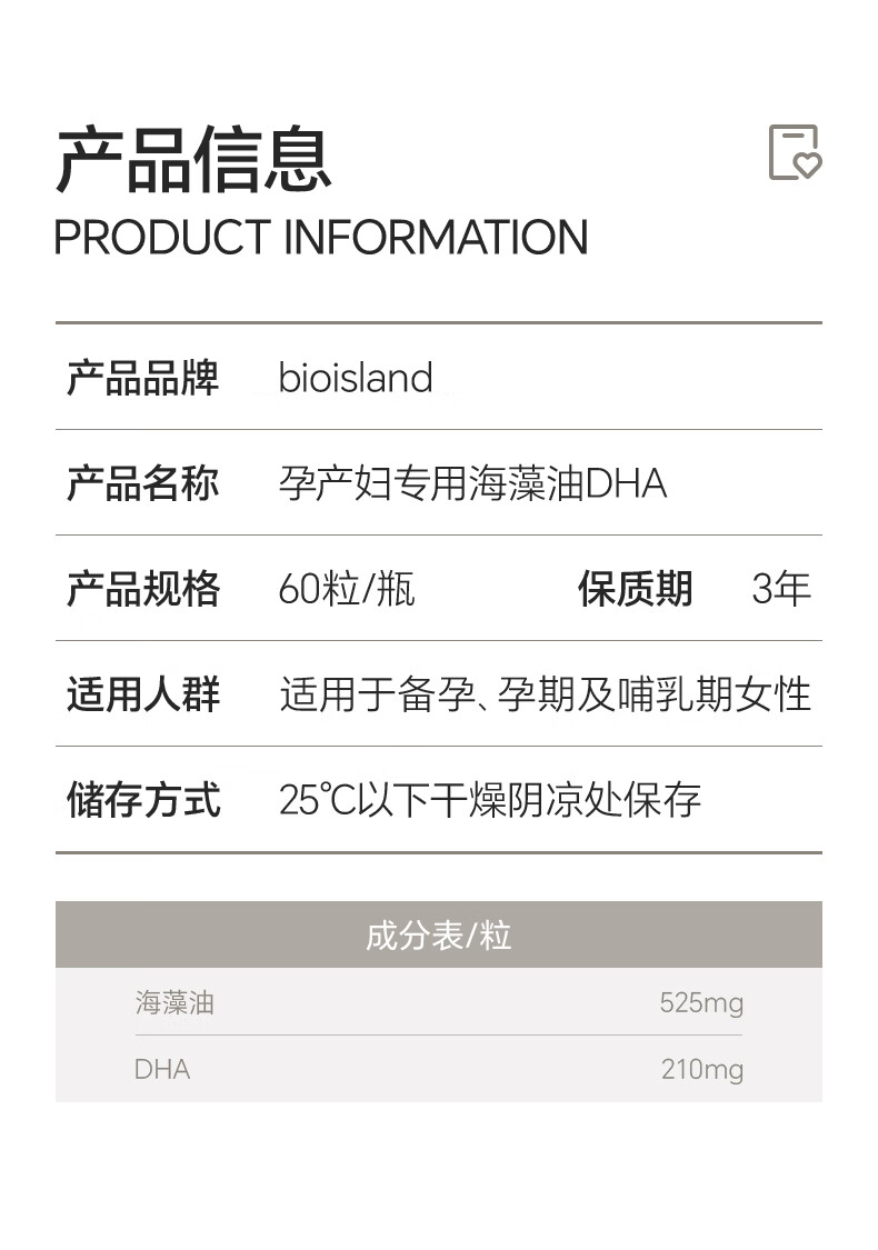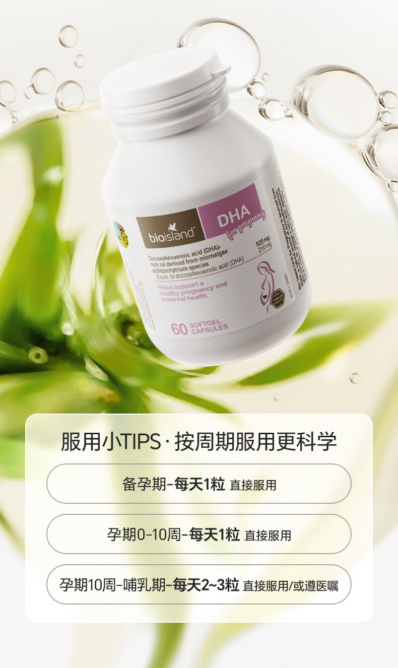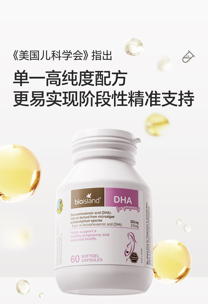 Bio Island佰澳朗德 孕妇DHA海藻油备孕孕期哺乳期软胶囊 60粒/瓶 澳洲进口