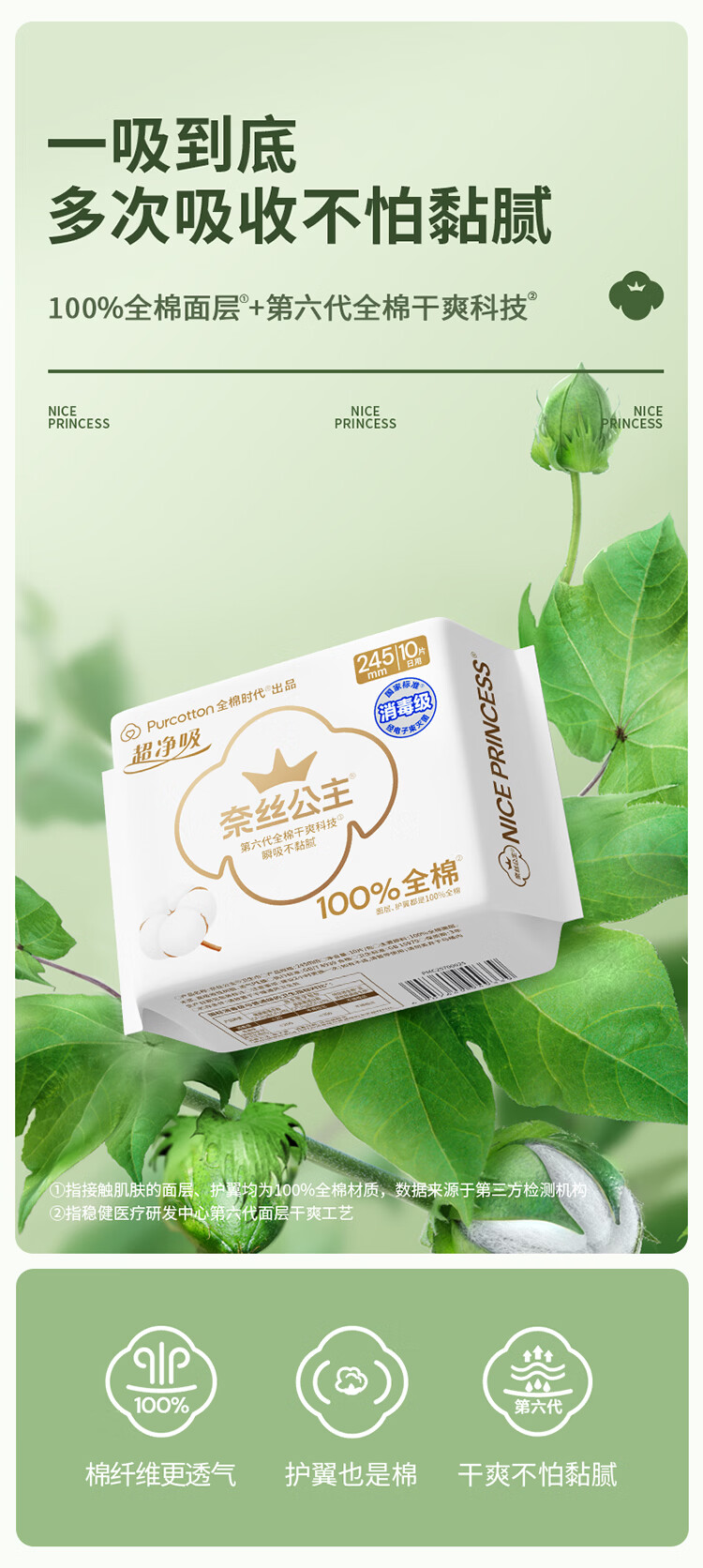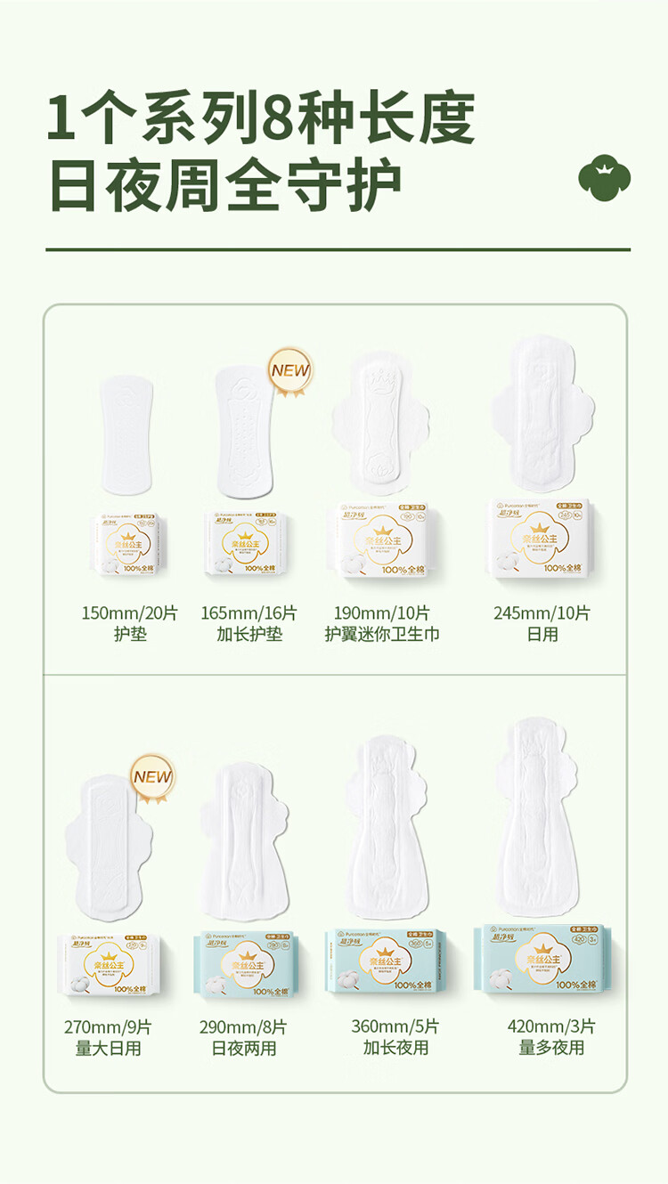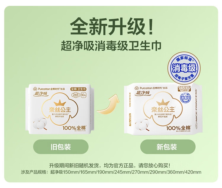 全棉时代【囤货特惠】超净吸卫生巾2月装64片(245*50p+290*8p+420*6p)