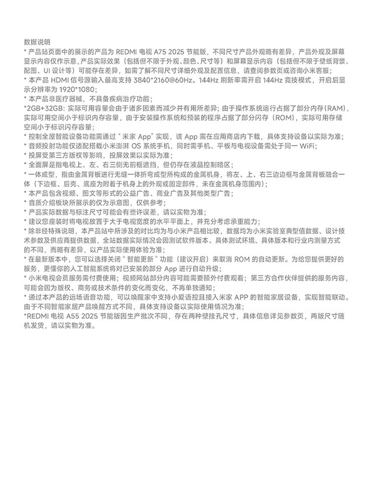 小米电视70英寸REDMI A70 2025节能版一级能效144Hz高刷2GB+32GB大存储液晶平板L70RB-RAE 70英寸 REDMI A70 2025节能版