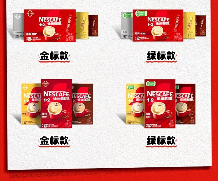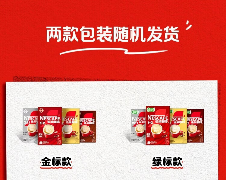 雀巢(Nestle)咖啡1+2速溶咖啡 三合一咖啡粉 【樊振东同款】100条【原味(24+6)*3盒+奶香10条散装】