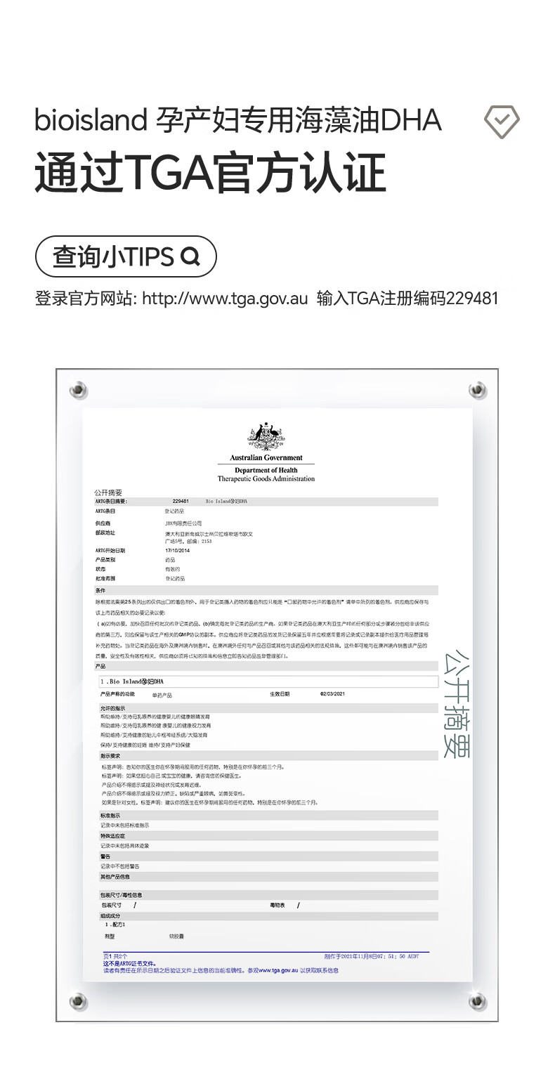 Bio Island佰澳朗德 孕妇DHA海藻油备孕孕期哺乳期软胶囊 60粒/瓶 澳洲进口
