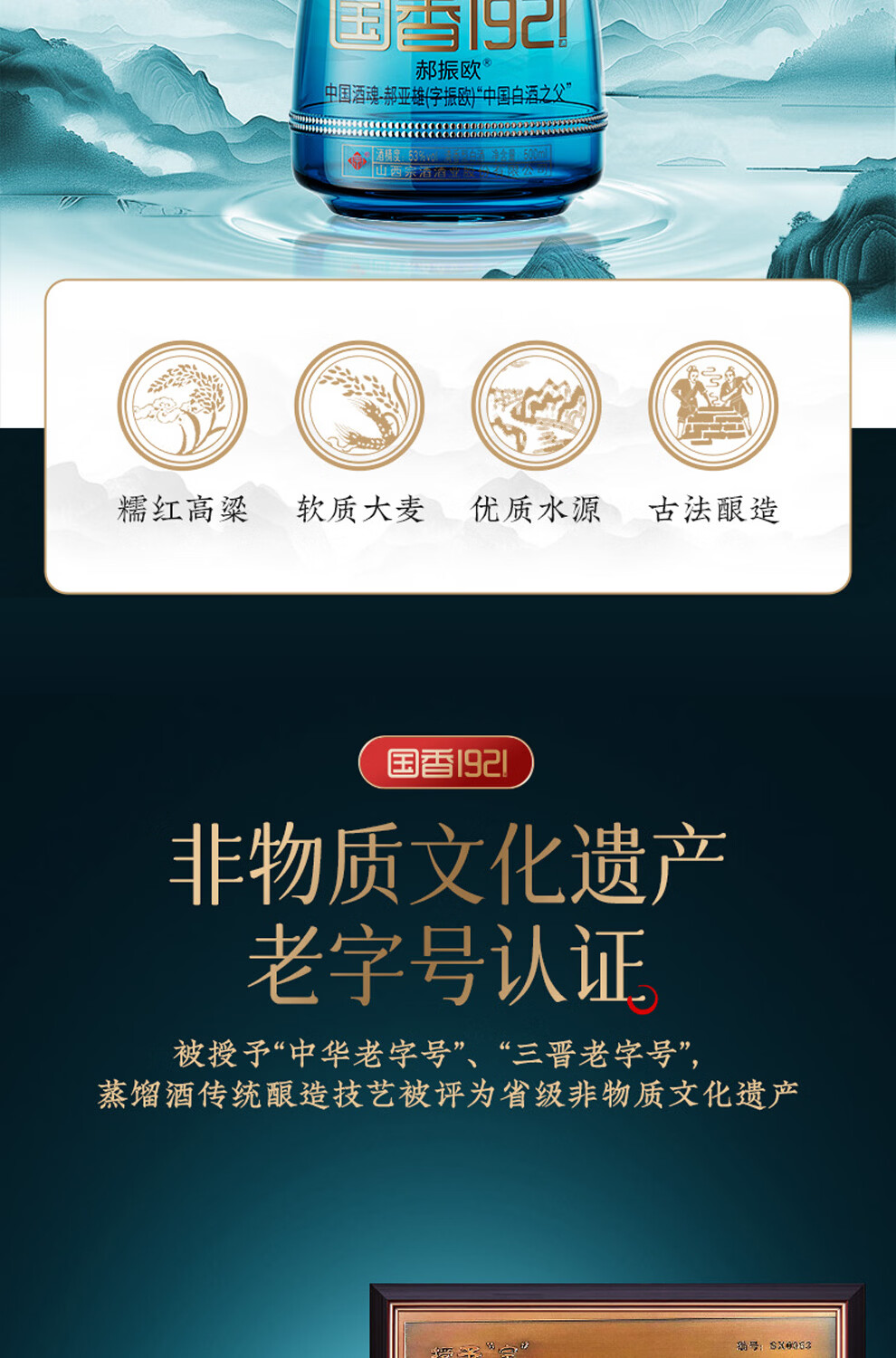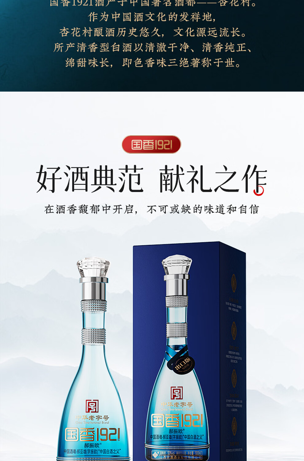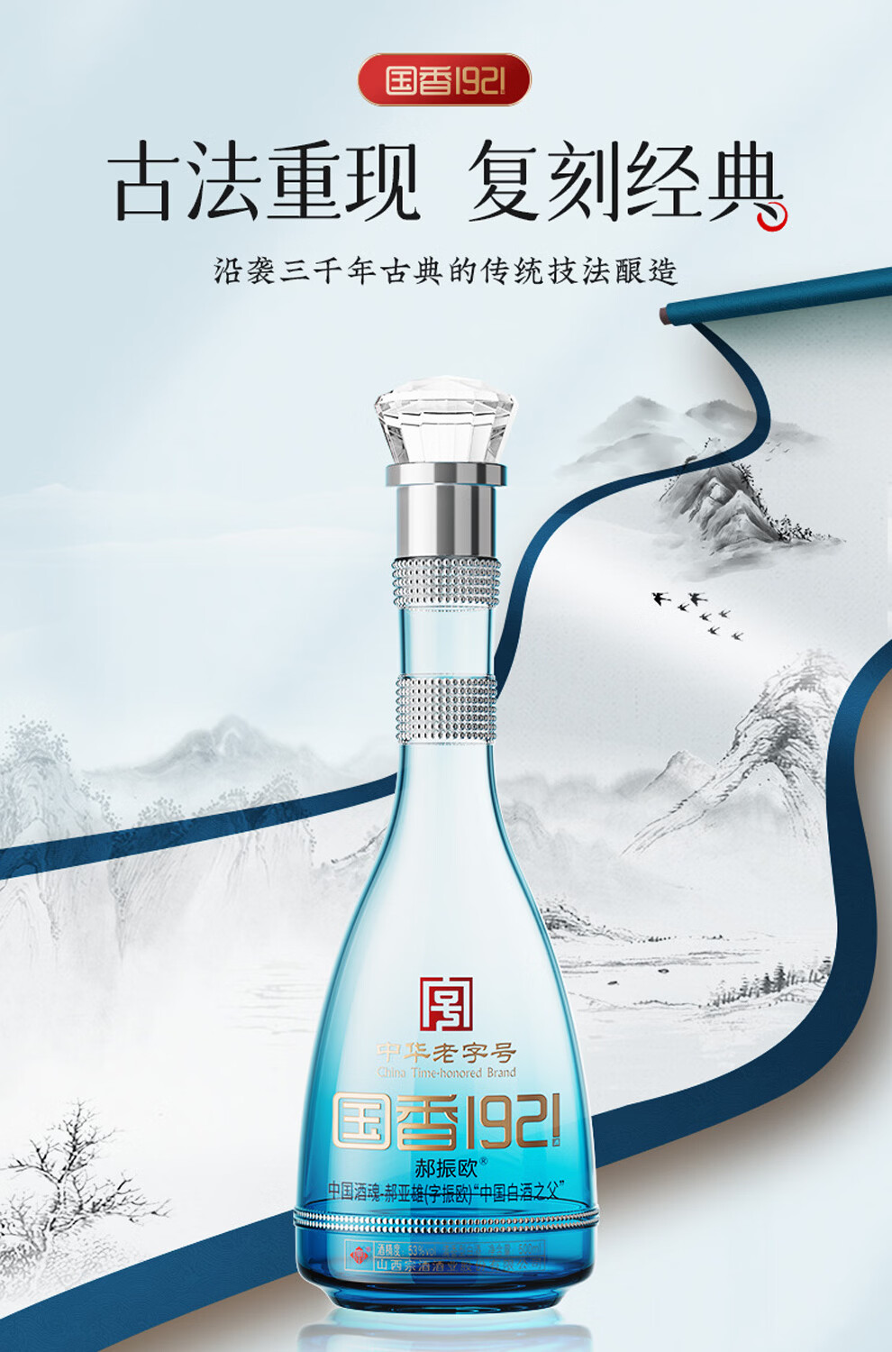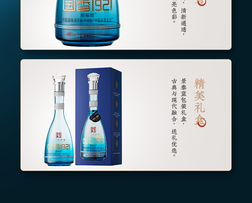 郝振欧国香1921 白金出口版 景泰蓝礼盒 清香型白酒 荣获非物质文化遗产 53%vol 500mL 2瓶