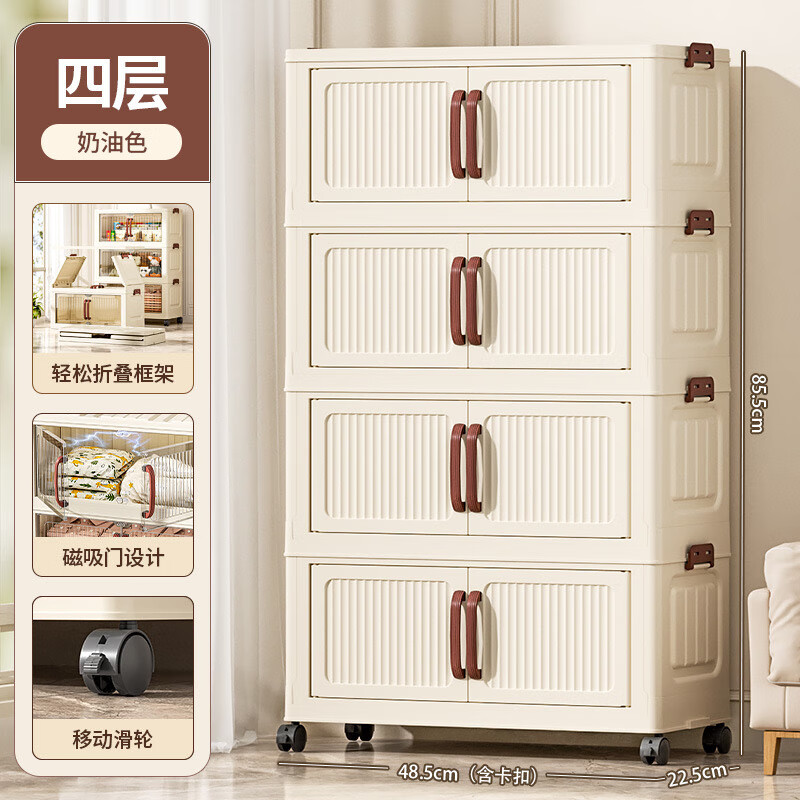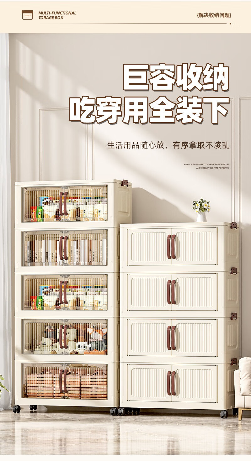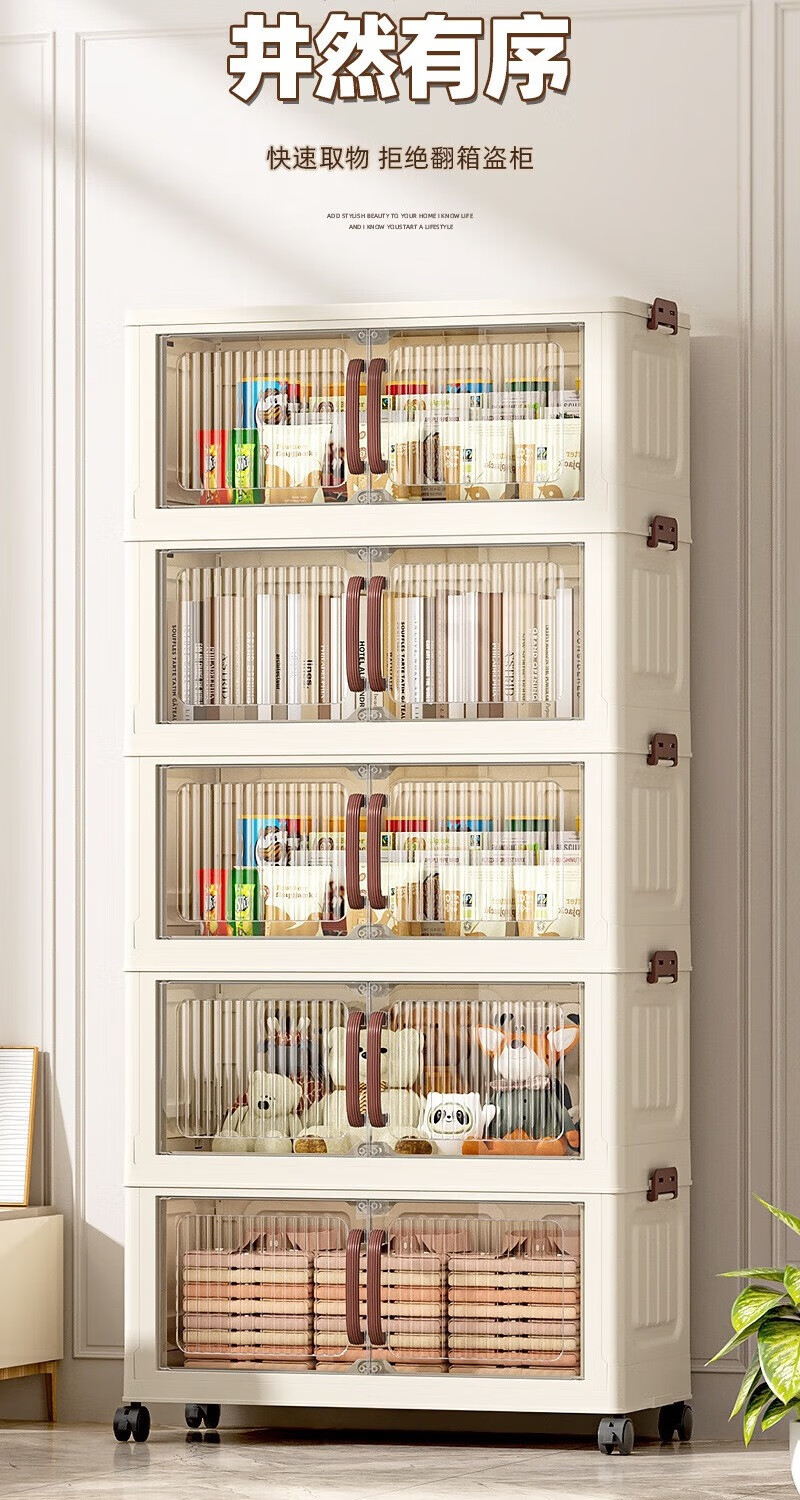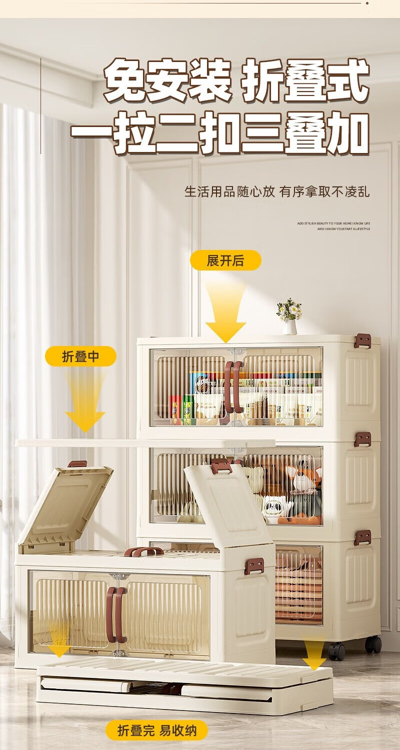 免安装折叠收纳柜衣柜多层储物柜零食柜箱塑料整理柜 颜色随机款48CM面宽-1层无轮